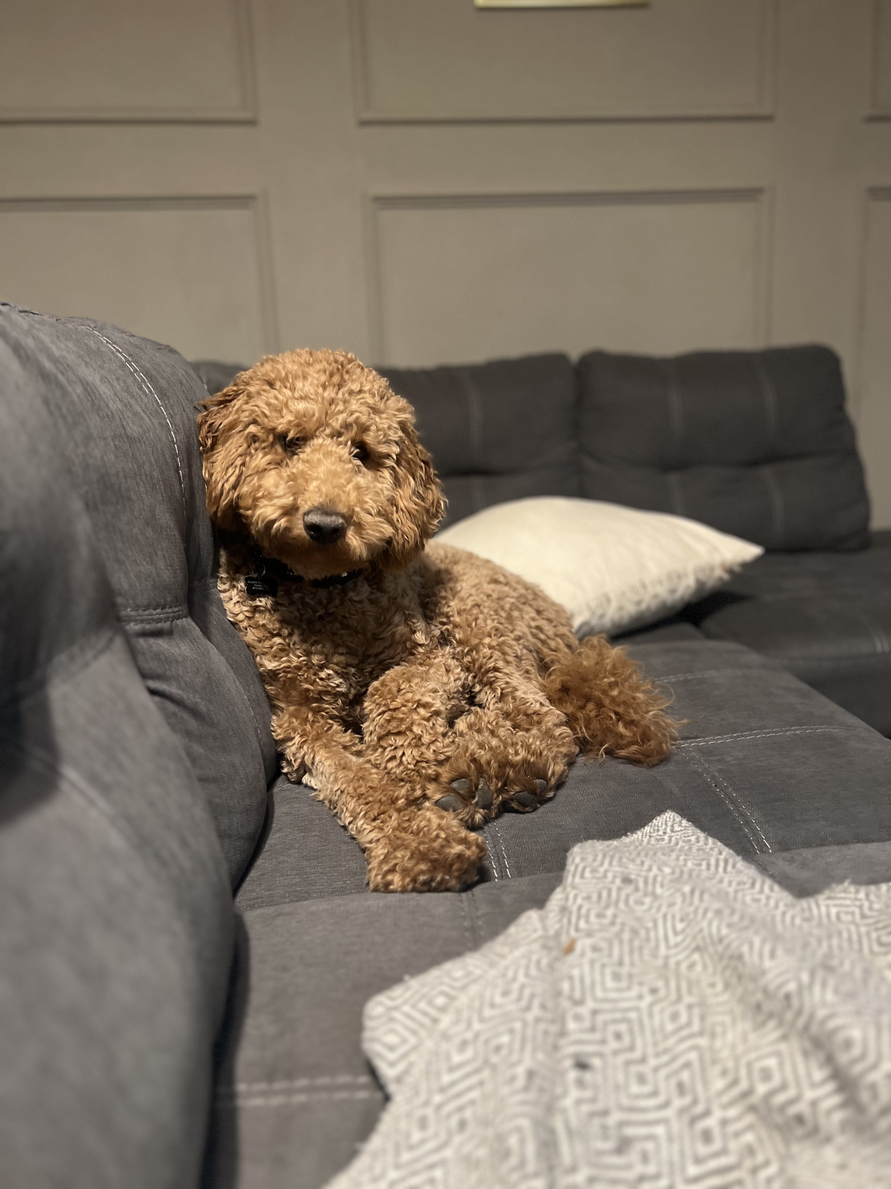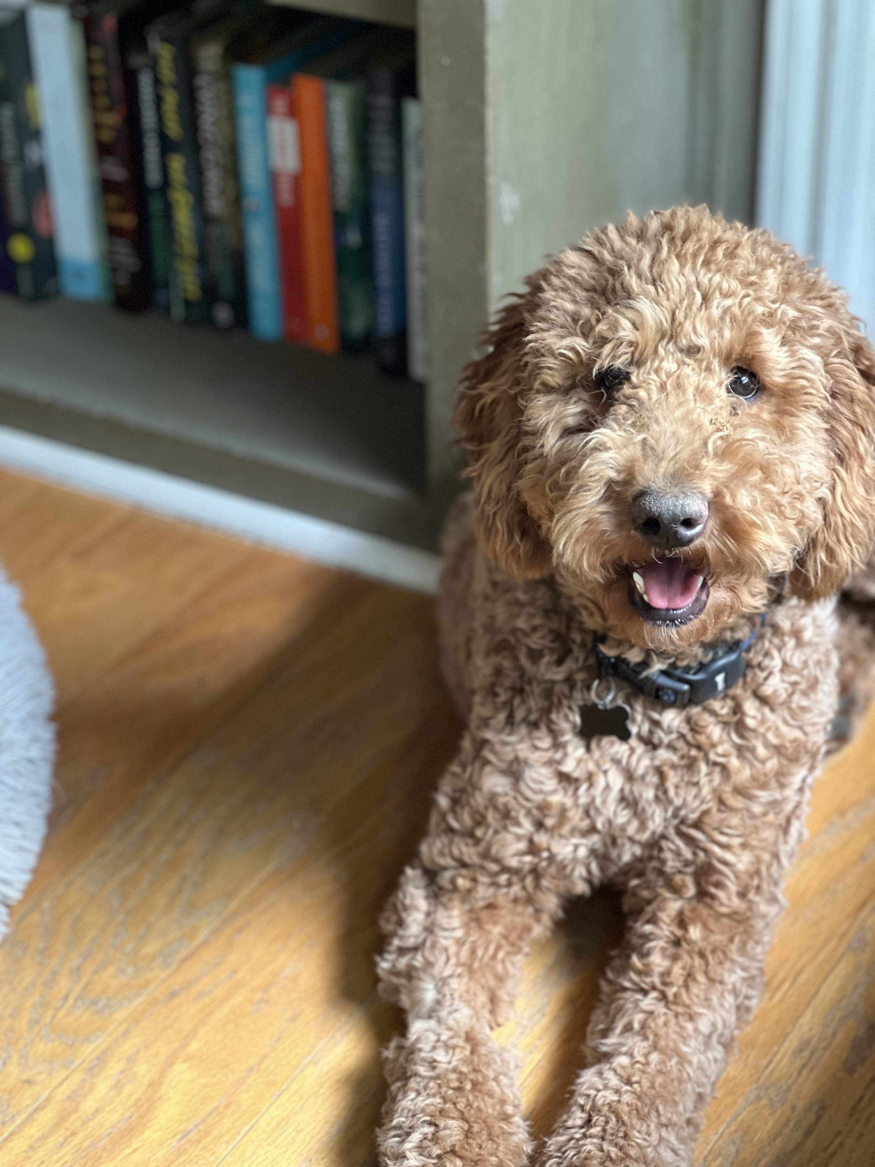 Hi! My name is Margot. I turned 1 on March 25th! I am a Female Goldendoodle and at my last check up I weighed 38lbs. I do not shed and my coat is so soft.