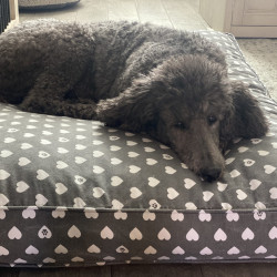 Hi, my name is Annie. I'm a spunky non-shedding, senior lady, with the heart of a pup. I'm an 8 year old female standard poodle and weigh 50lbs, but I'm nimble and can jump very high!