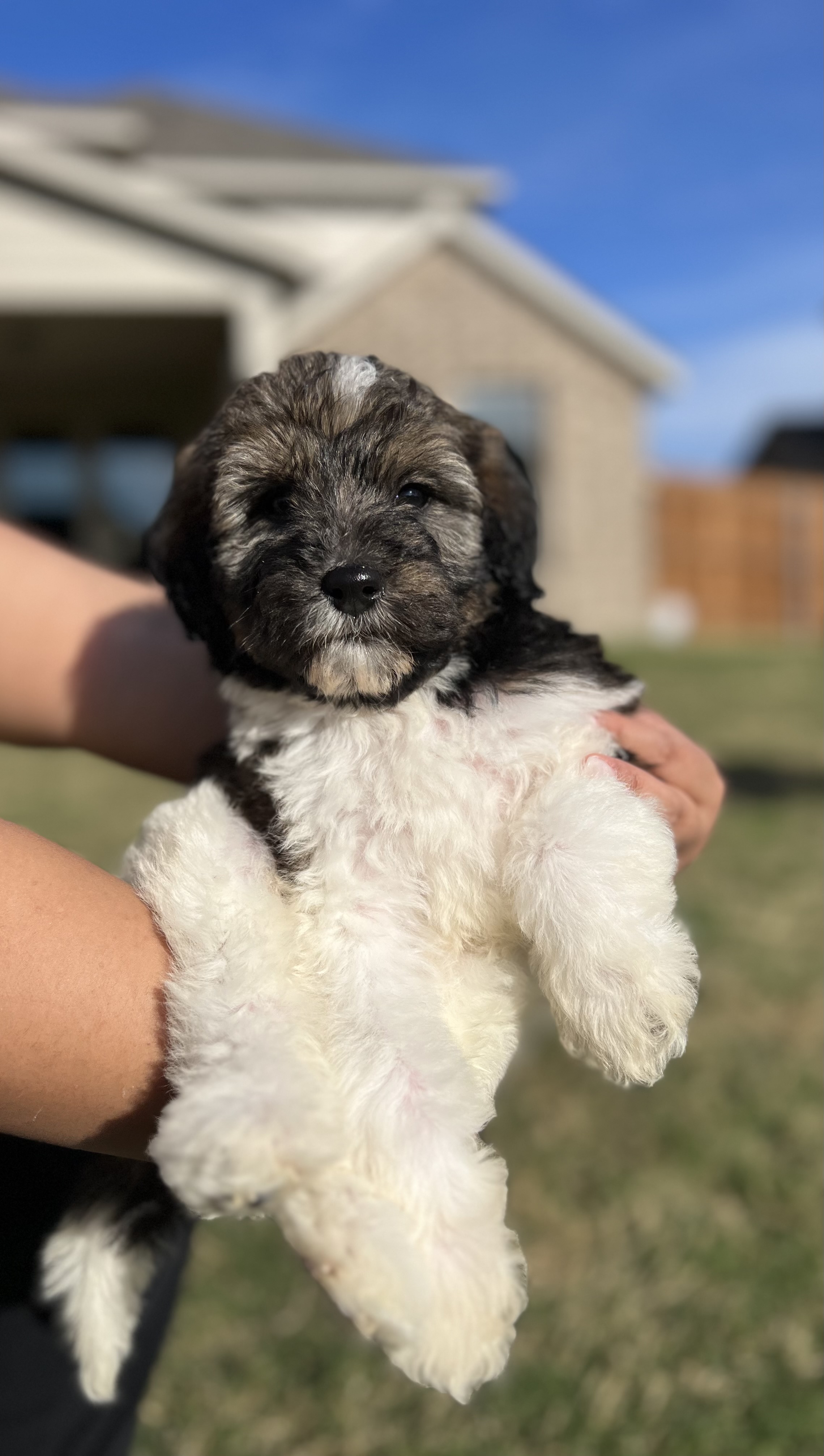 Hi! My name is Aphrodite, but my foster parents have been calling me Emmy. I am a sweet 12 week old Female Bernedoodle.