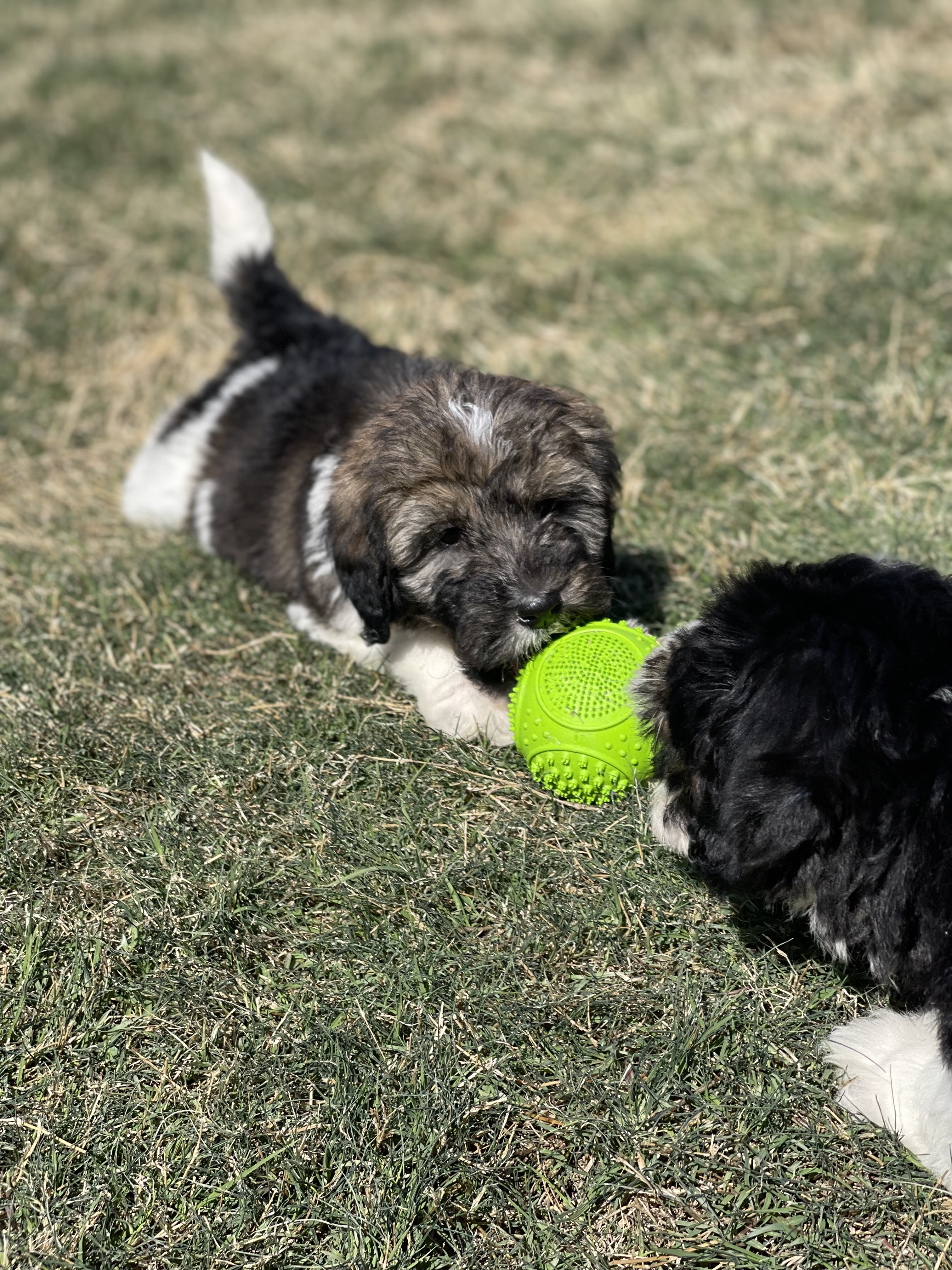 My foster parents tell me I am the sweetest little girl. I currently weigh 9lbs, but getting bigger each day. I love to play and wrestle with my brother Benito. Even though he is almost twice my size I can keep up with wrestling him. My foster parents have three other doodles, who are older and bigger than me but I get along great with all of them and enjoy roaming around and exploring the yard with them. I love to be held and snuggle and get my belly rubbed. My foster parents tell me I am very sweet and easy going. If I’m not playing in the yard then I love laying on the back patio and relaxing.