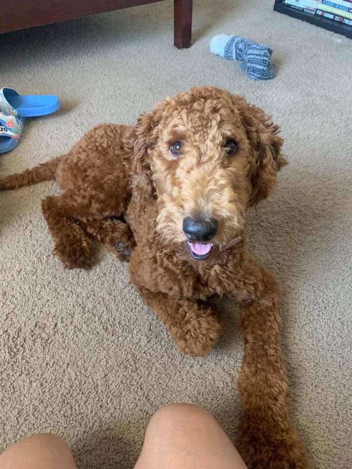 Hi! My name’s Arlo, and I’m a 7-month-old female goldendoodle. I weigh just 31 lbs, but don’t let that fool you. I’m a tiny ball of energy!!