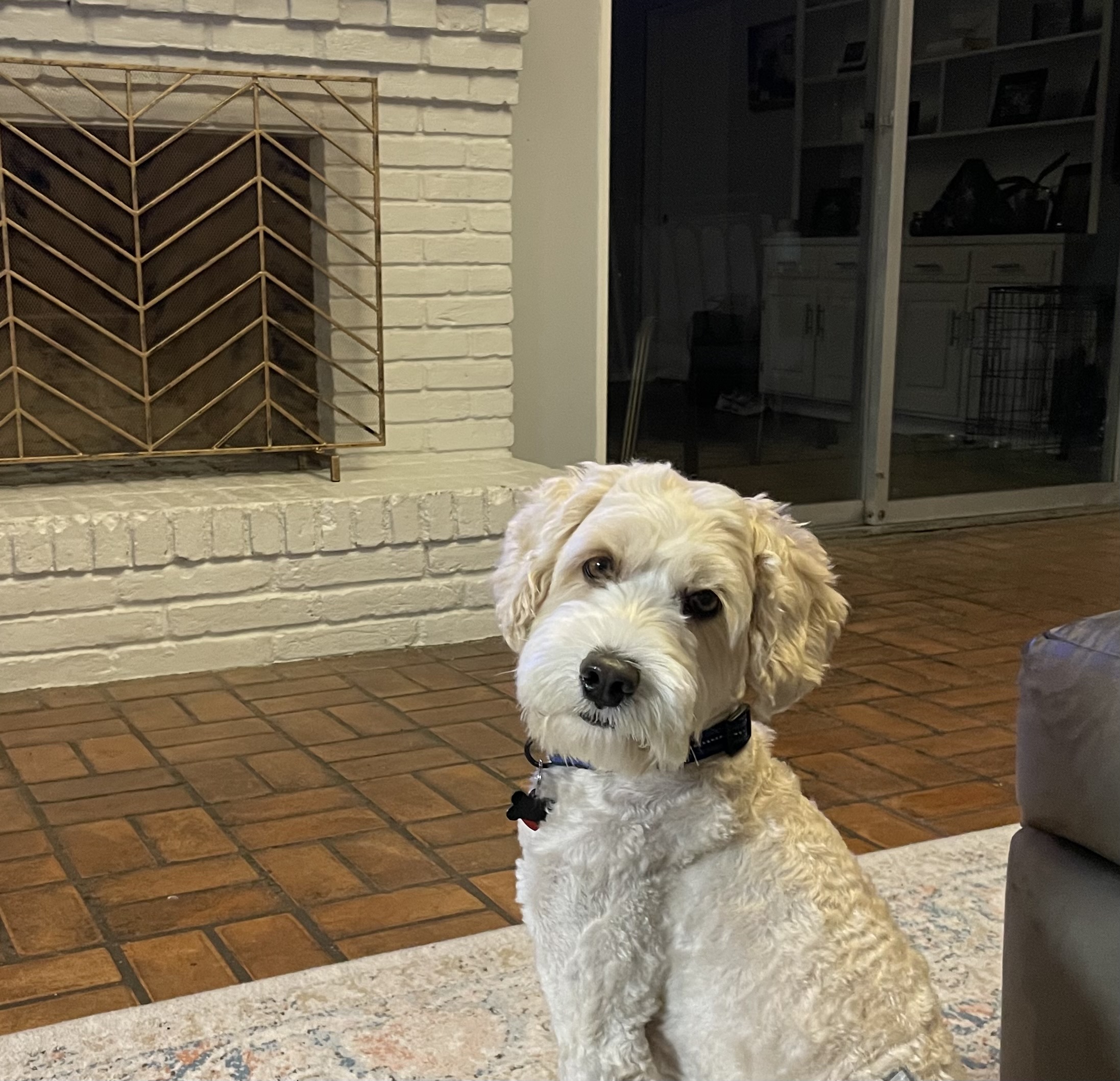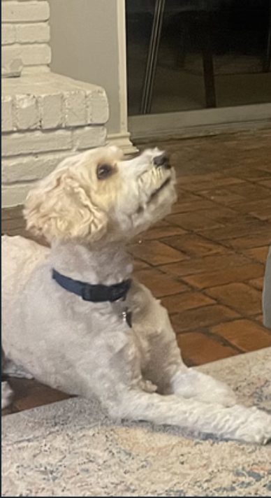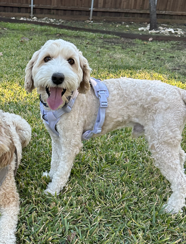 I’m doing great with basic commands – I know sit, stay, down, paw (shake), and load up (for my crate). I’m still working on "off," but I’m getting better every day! Sometimes I play with my buddy Rouxster, a former Doodle Rock dog, and we have the best time together.