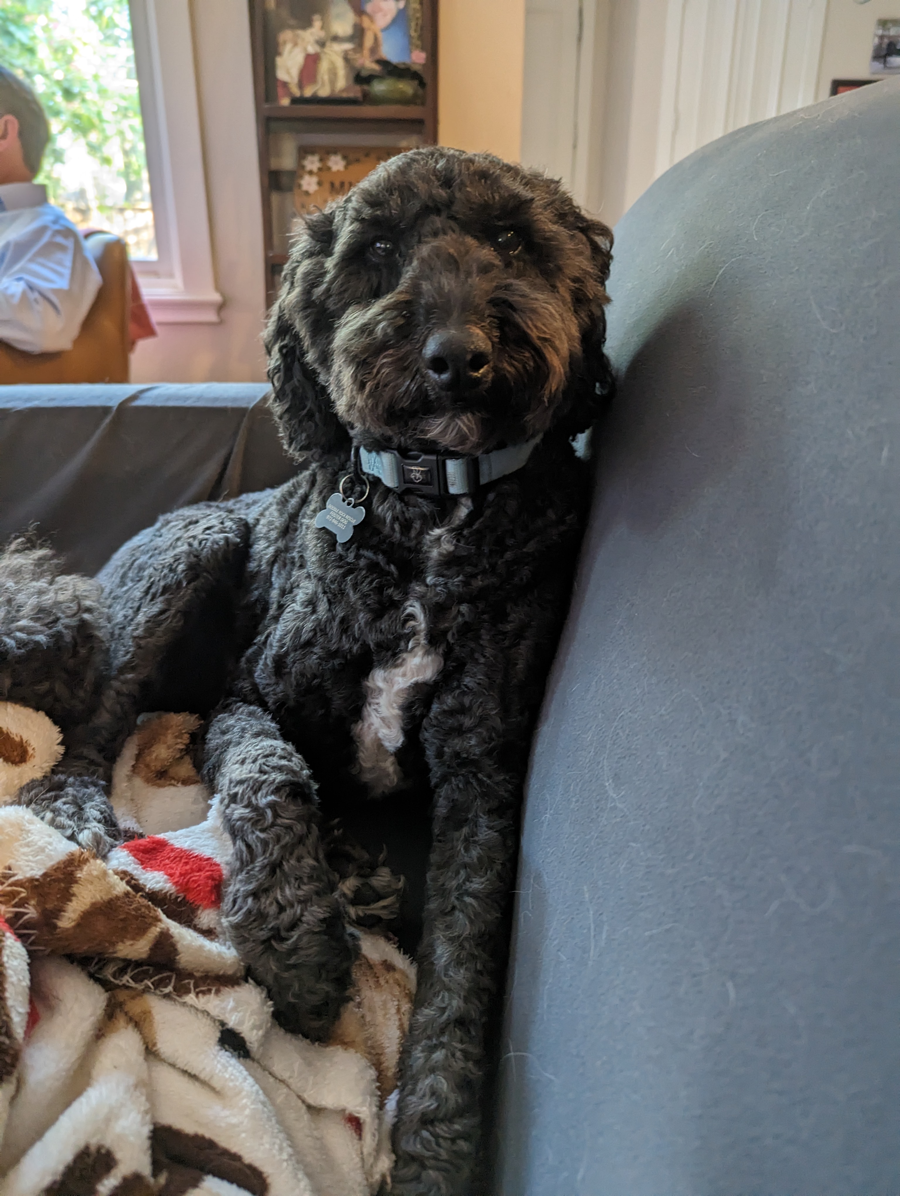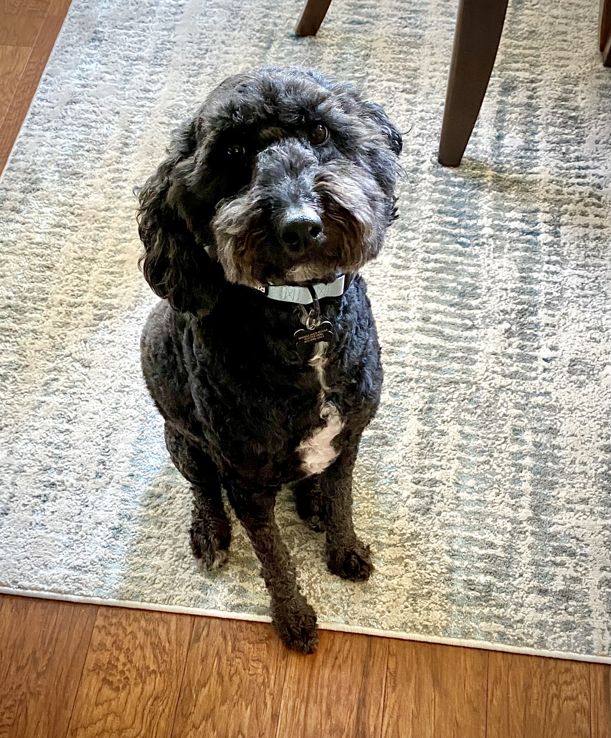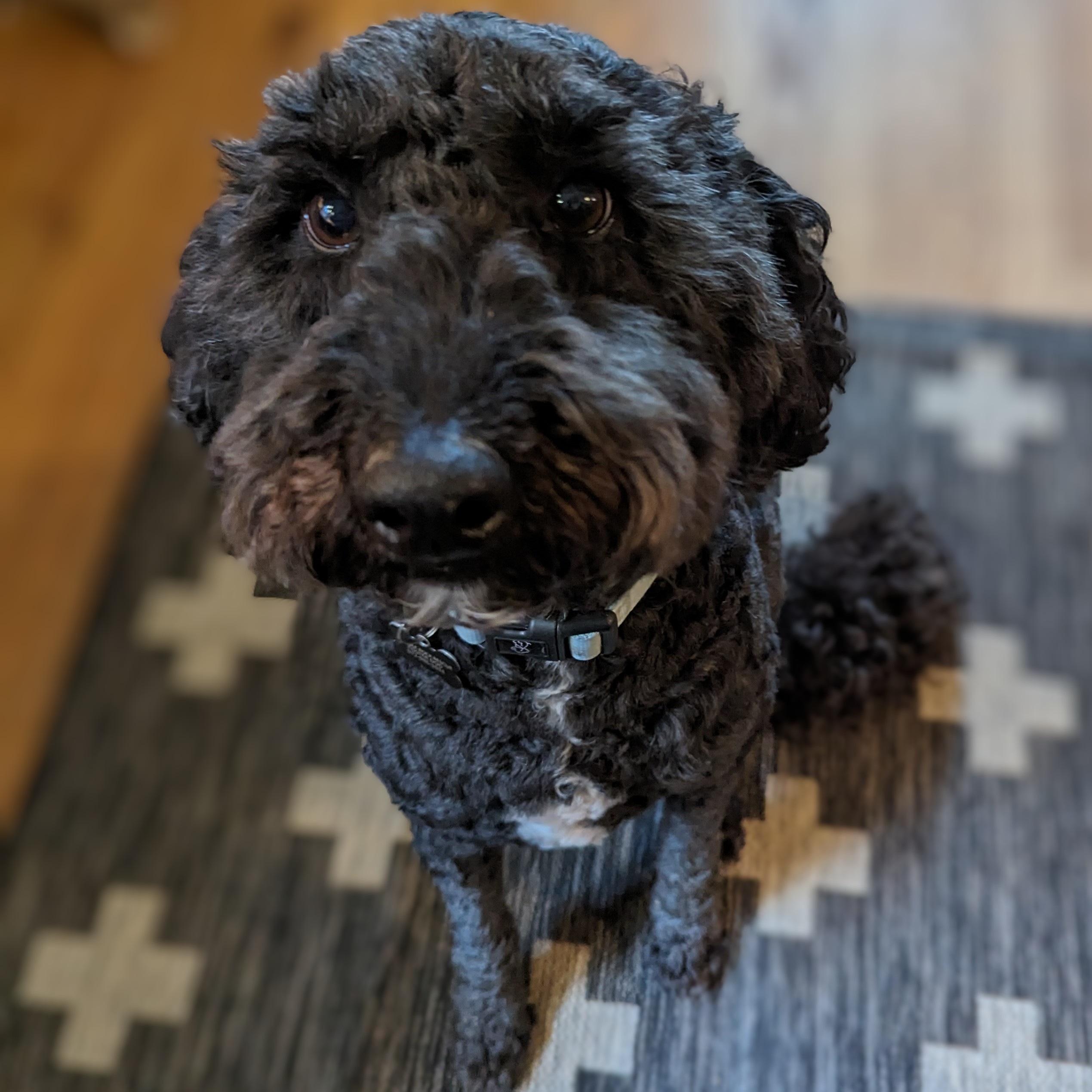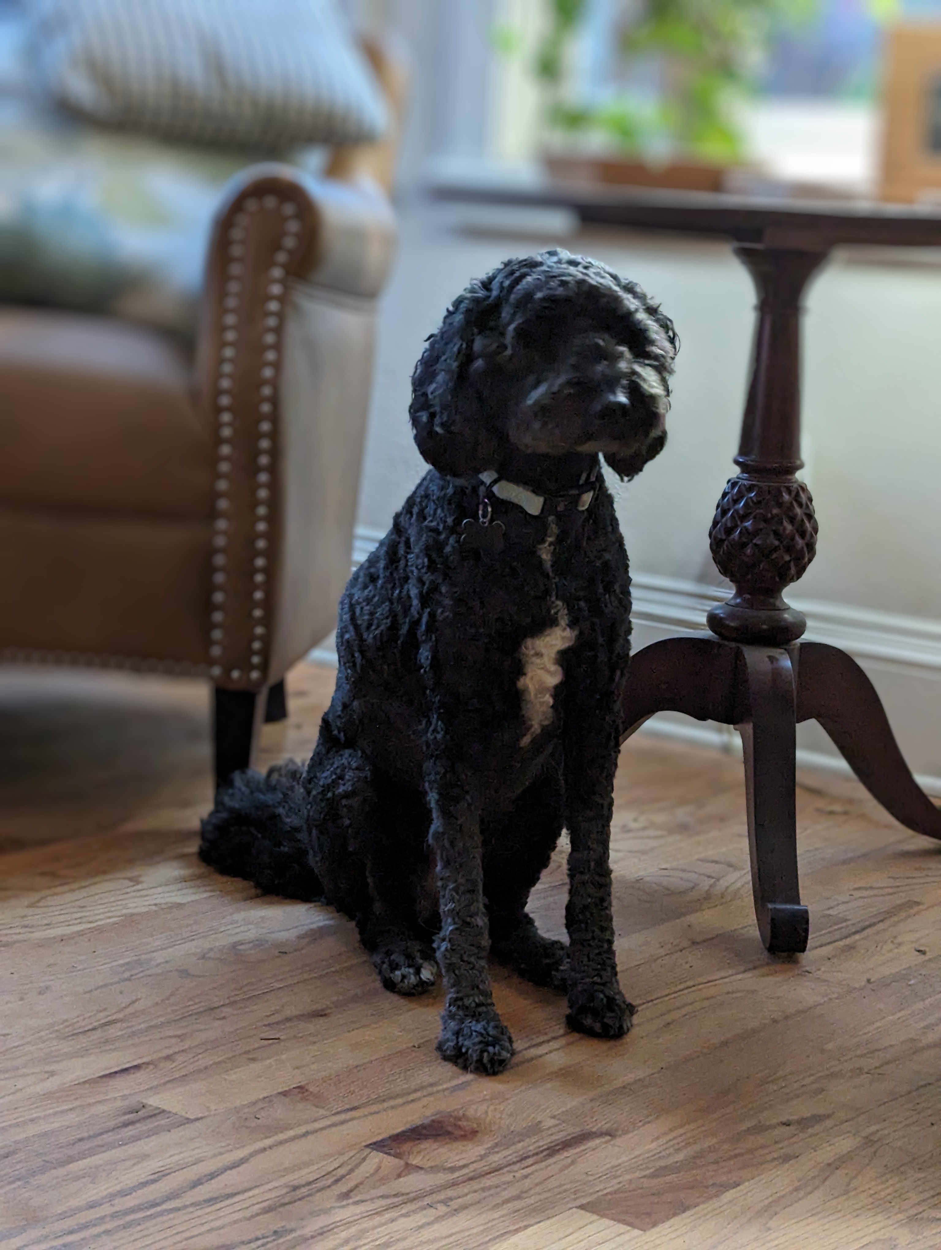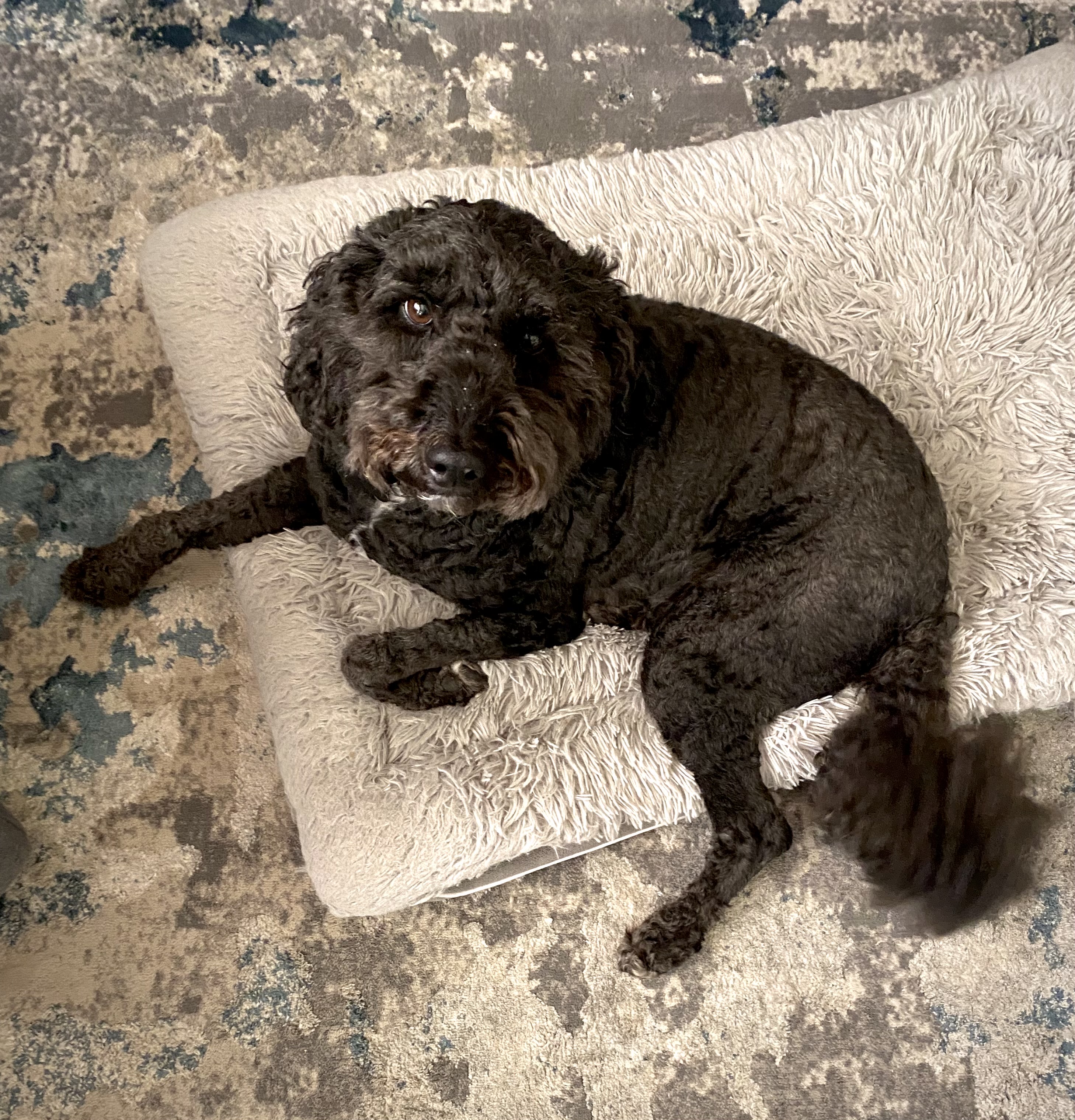 Ciao! I'm Bella, the original supermodel, described by the tabloids as a 5 year old, 40 pound goldendoodle with thick curly black fur, non shedding .