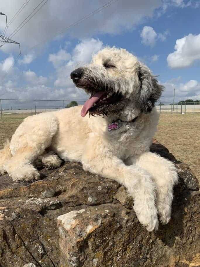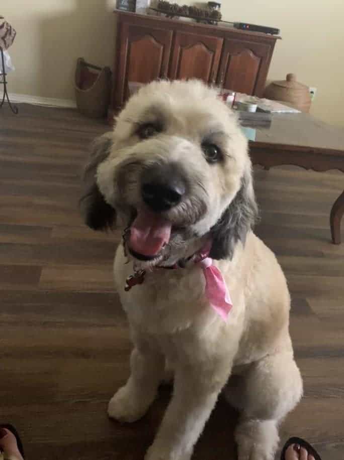 Hello my name is Bella I’m 3-years-old Whoodle. Although girls don’t really talk about their weight I’m 55 pounds. Since I’ve been with my foster parents I have learned so much. I don’t mind my crate and love to hang out in the living room with my parents.