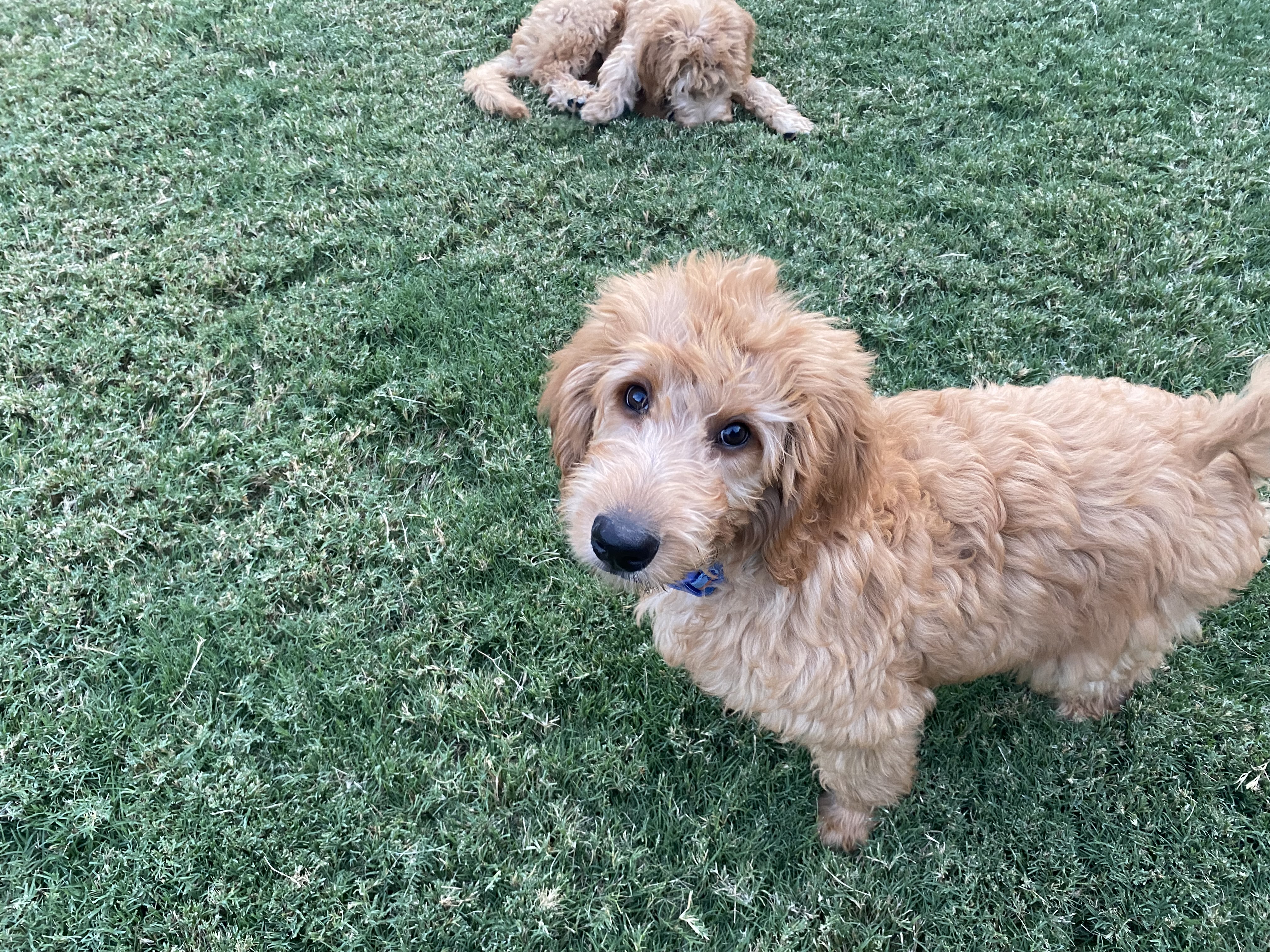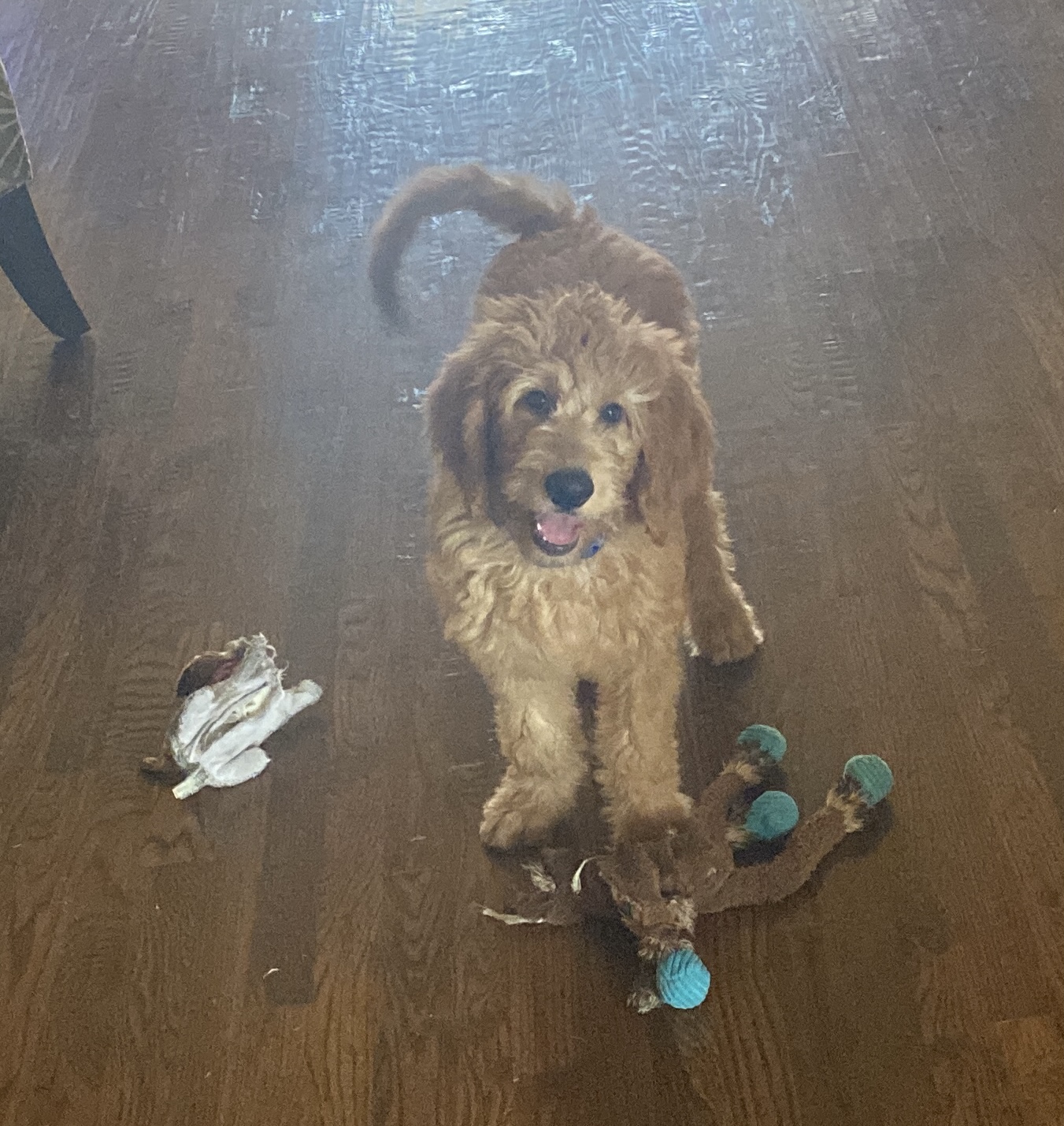 Hi, my name is Ben and I’m a Male Goldendoodle! I’m about 12-weeks old, 17lbs, and still growing.