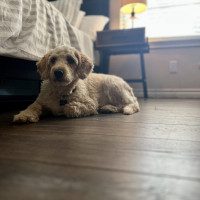 My name is Birdie! I am a 3 year old 23lb Female Labradoodle. I am still learning what the good life is! I’m a sweet girl who loves to play with toys. Once I get to know you, I do not leave your side. I will be wherever you are. I am timid around new people and loud noises, but I am coming around. I prefer to be with my humans or foster sisters I do not like being alone.