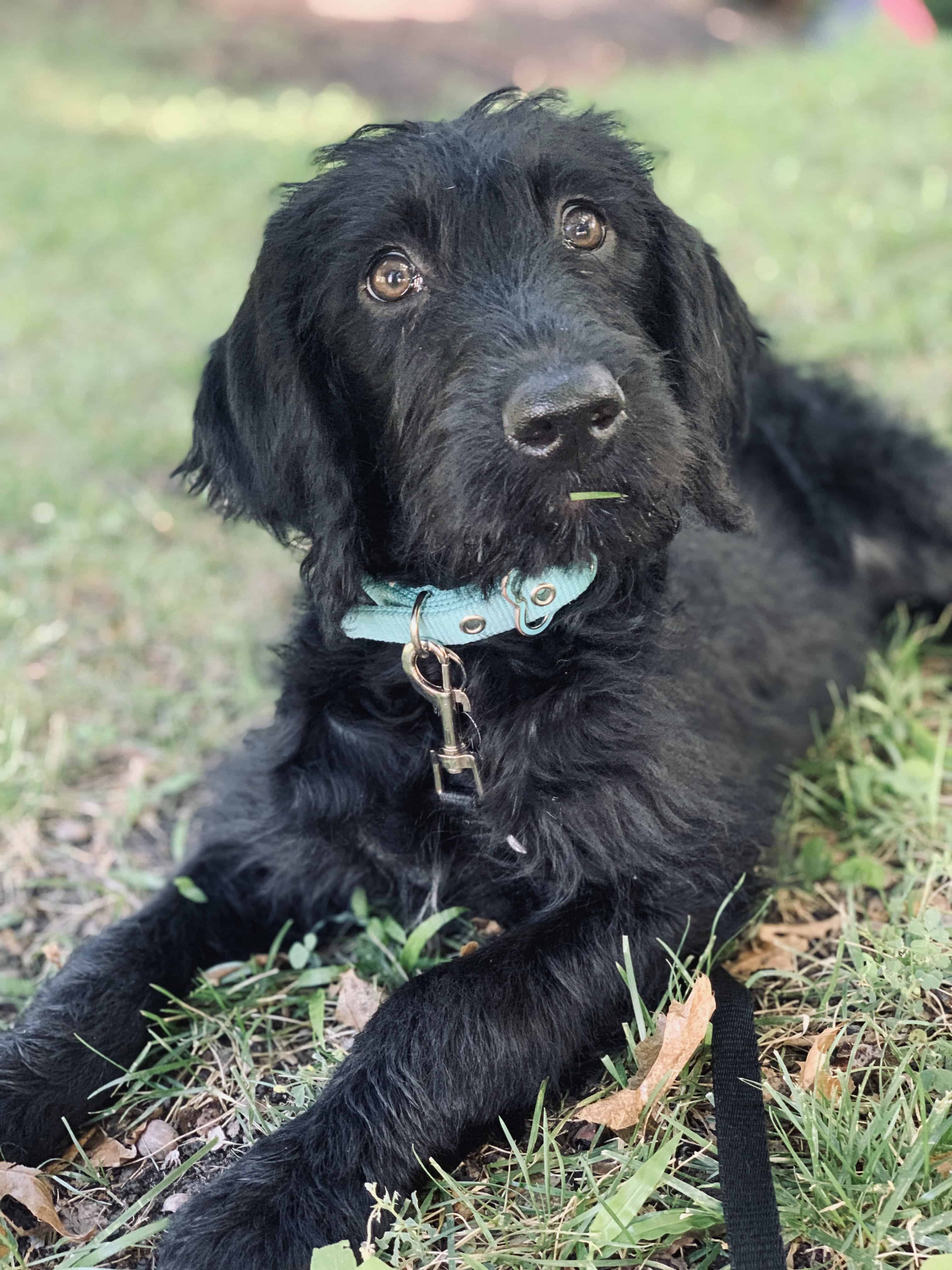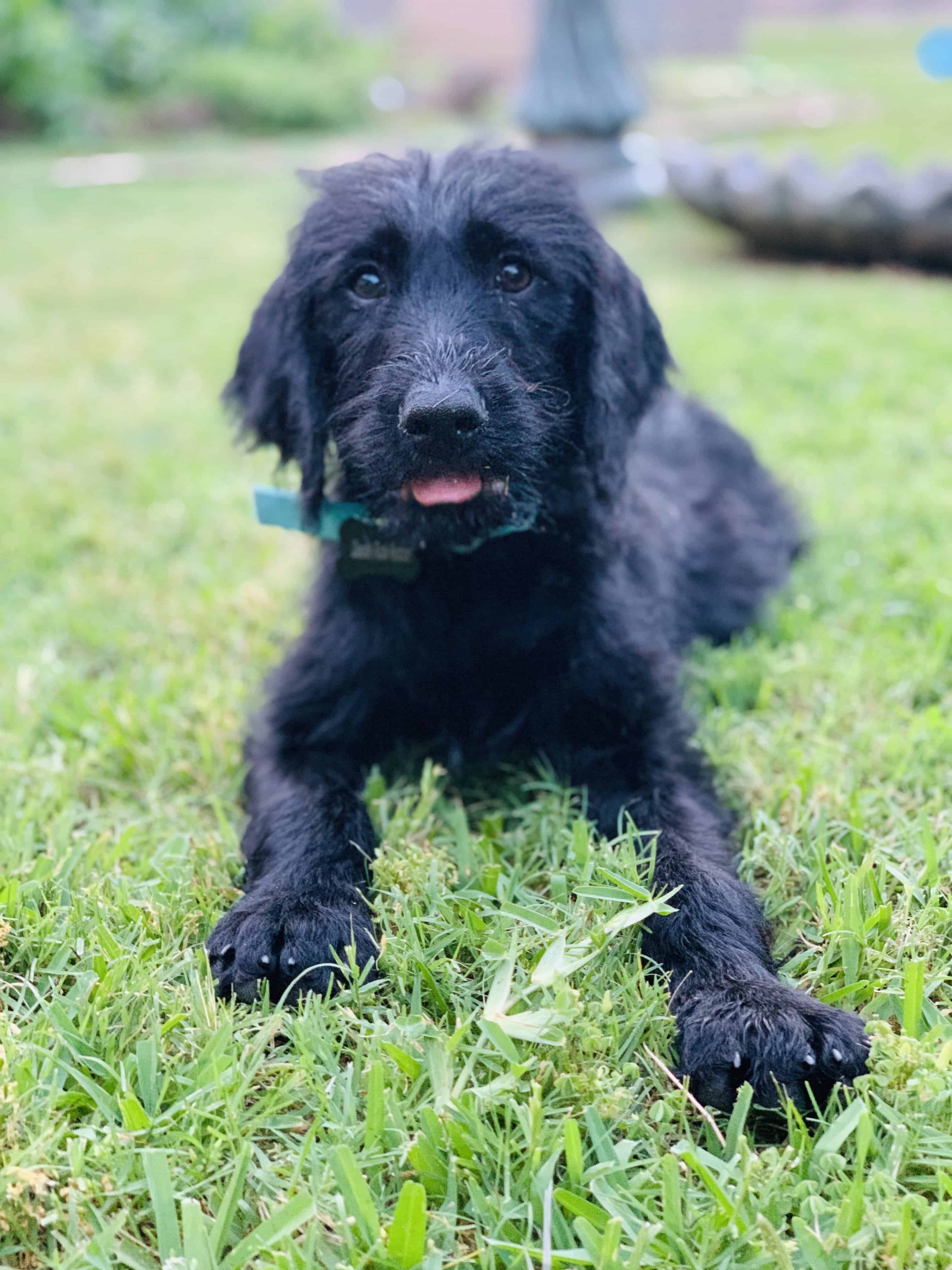 Hi, my name is Blaze and I am the happiest (and smartest!) Labradoodle that you will ever meet! I am 5-months-old and about 20 pounds. I currently live with 2 greyhounds and 2 human boys (whom I love VERY much). My foster home has a dog door which I figured out in about 3 minutes. If a dog door is available I will go out on my own. I am almost totally potty trained, but I still need to be watched a little. I have a pretty sweet routine right now. My foster mom is the first one up in the morning, when she lets me out of my kennel we go straight out to the backyard so I can do my business and then I come back in for breakfast. I LOVE my food so my foster siblings get their food first so they have more time to eat. I follow mom while she feeds them and then I run to the kitchen and sit while she gets my food ready! After breakfast we go outside one more time because I usually like to potty again after I eat. I play with my toys (my favorite is the bouncy, squeaky ball and the blue dog with the giant squeakers in all 4 legs!) while the humans eat breakfast and get ready for the day. Then, the whole pack takes me for a walk around the park and back home. By this time, I am ready for a nap and will find someone sitting still to sleep next to or go to one of my favorite corners. I also like to lay next to the water bowl because you never know when you might need a drink!
