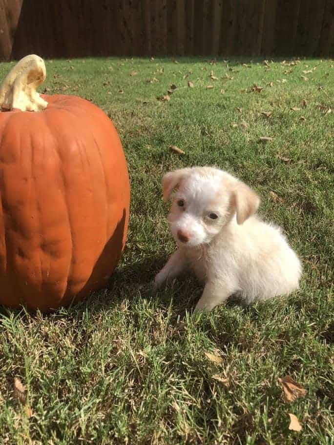 I may be small but I have a big personality! If I was a flavor of bluebell ice cream I would be spiced pumpkin because I’m sweet like pumpkin pie with just a hint of spice! I love playing with my siblings but I would probably do best in a home where I can be the queen. Other dogs are okay as long as they know I’m the boss lady and let me snuggle them. I am a very smart girl, I love watching my humans while my silly siblings are busy chasing their tails. I get so excited when I meet someone new. Just pick me up and I will shower you in kisses!! My favorite spot is laying on you while showing off my pretty eyes. I’m an expert at this whole “puppy dog eyes” thing with my big green eyes. My ears are tan and my cute little head has a beautiful white and tan pattern. I can be very silly! Sometimes I like to sleep on my back and my ears get stuck pointed up in the air. I’m still figuring out this whole training thing but I’m excellent at sitting and am rocking potty training. I will even potty outside in the rain! I go to the door or do a little dance to let you know when I need to go out. I have a cute little bark that I use when I’m playing. I’ve never been alone but I think I could get used to being the center of attention! I love I am the smallest of my litter but I have a lot of catching up to do so don’t underestimate me. I’m growing girl looking for my forever home!