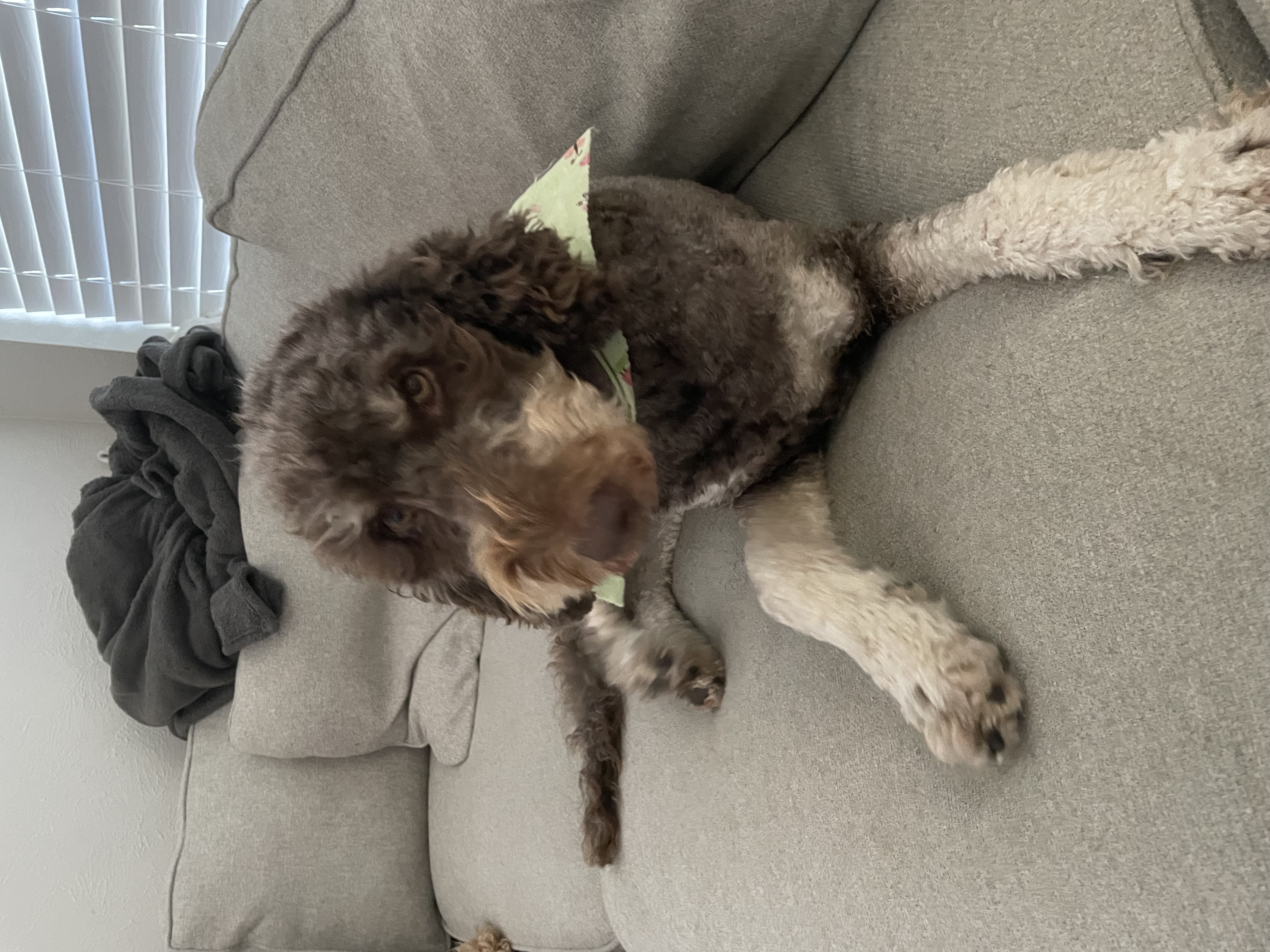 I’m a great sleeper and stay in my crate overnight until my foster parents wake me up. I don’t bark or have any issues lounging until they come get me. My foster mom says I have an iron bladder cause I can hold it for a long time and I’m fully house trained and haven’t ever had an accident inside. I start my day following around the humans getting scratches when I can. I like to snack on my breakfast for a while and then always need a good nap after that. I love going on walks cause I want to stay with my foster family as much as possible. When they do have to leave, they leave me in a pen and I just cuddle up for a snooze.