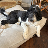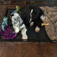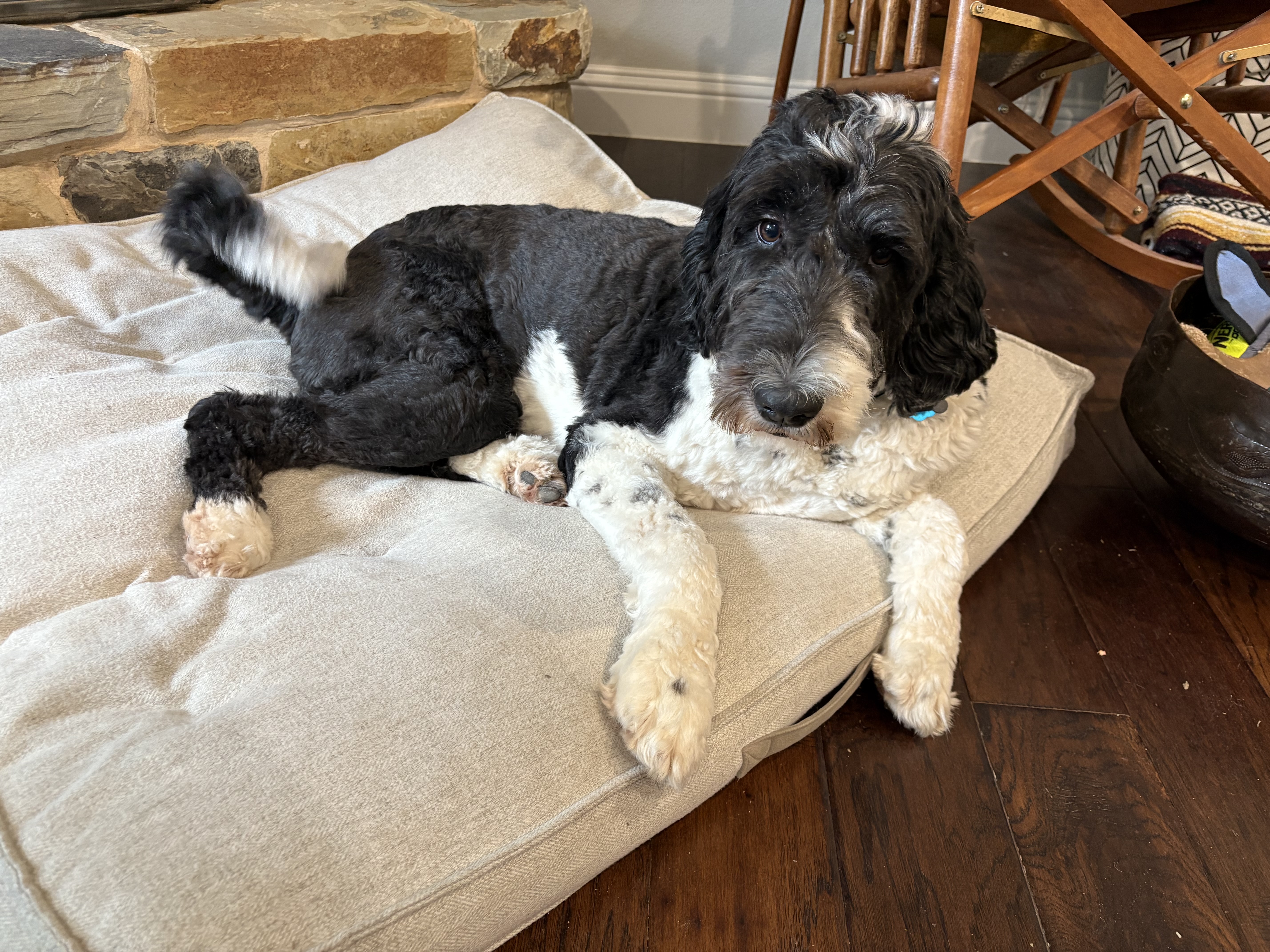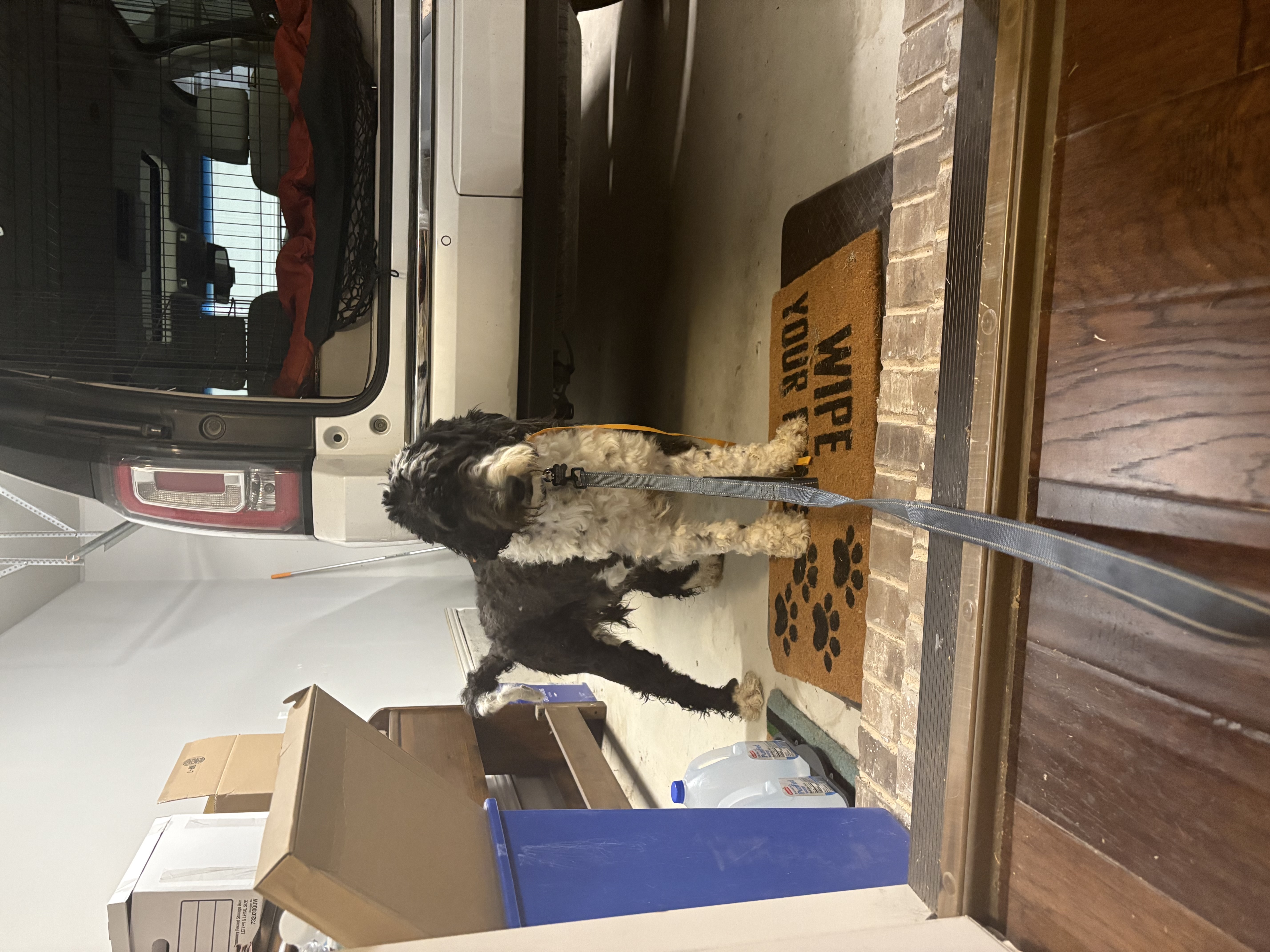 Hey there, I’m Bowtie — but my friends call me Bowie. 🎩✨ I’m a dashing 63lb black-and-white doodle rocking a permanent tux. At about 18 months old, I’m still a pup at heart, but I’ve got a chill, gentle vibe. I’m smart, sensitive, and eager to learn with patience and praise.