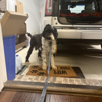 This whole “safe home” thing is new to me, but I’m catching on fast. I’ve got friendly eyes, a soft, shed-free wavy coat, and a laid-back energy that puts people at ease. I take my time warming up, but once I do, my sweet and silly side shines through.
