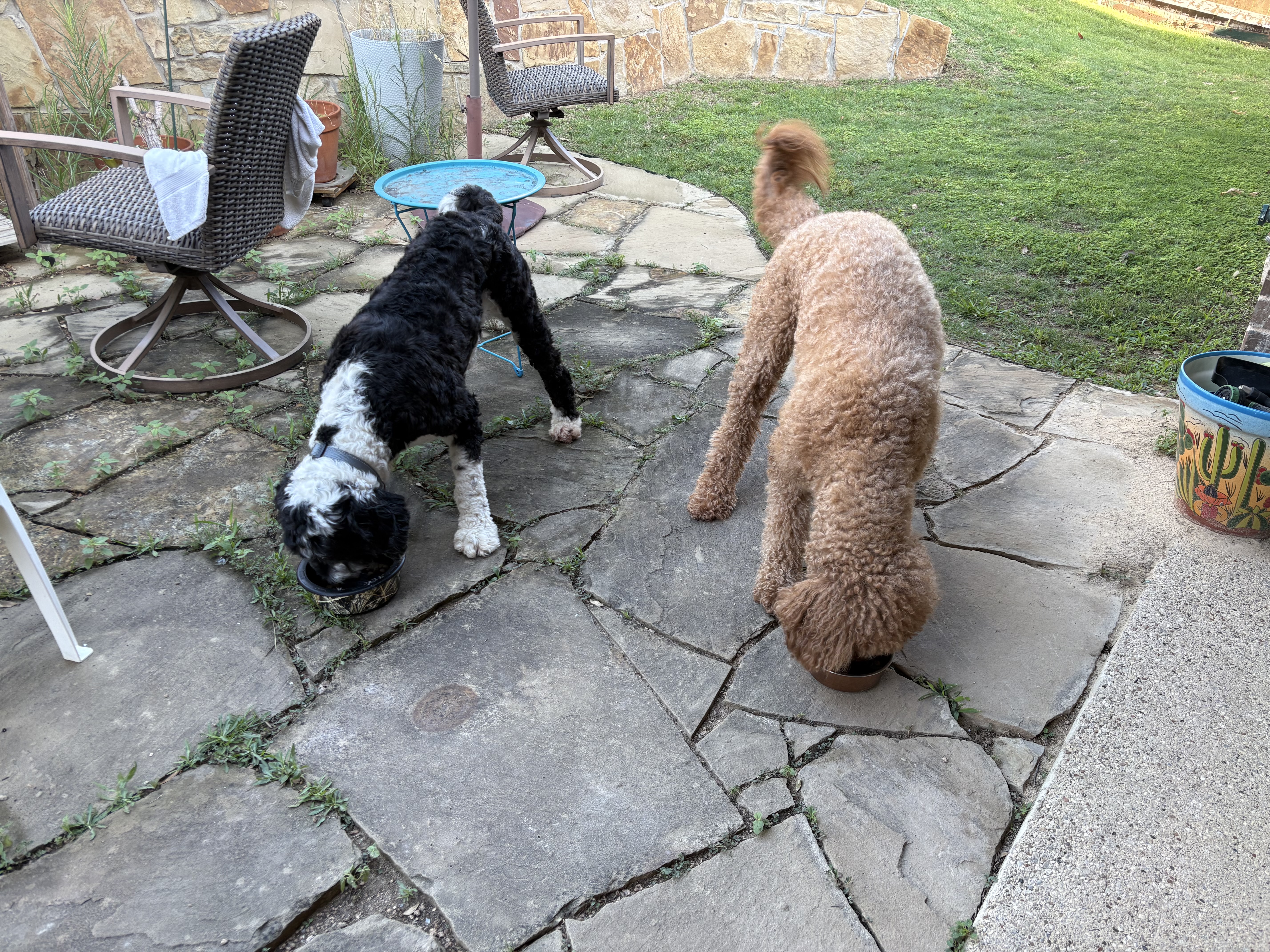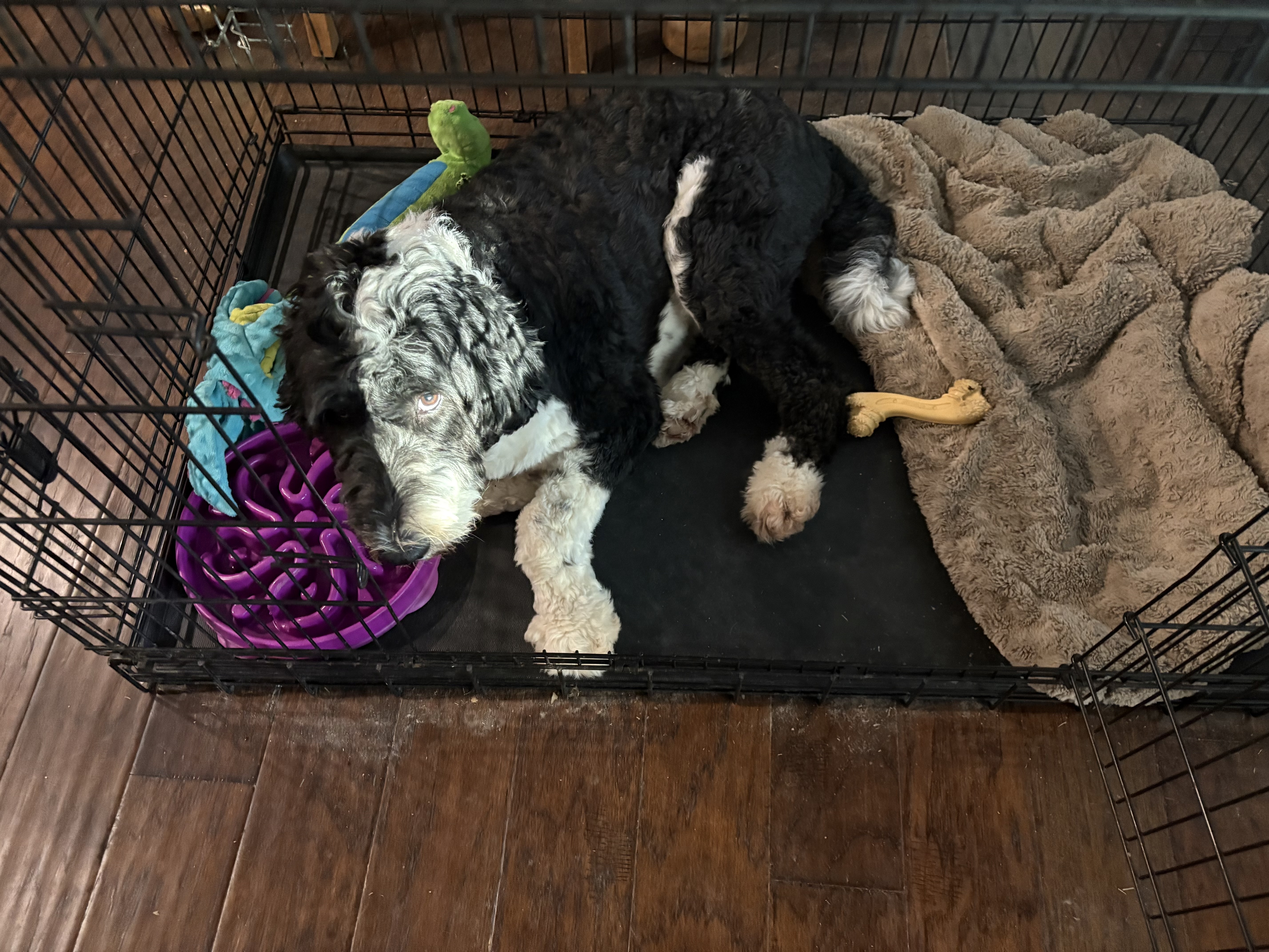 My days start with early potty breaks and breakfast al fresco with my foster bro, followed by morning naps. I signal when I need to go out and enjoy playtime, though I’m still figuring out roughhousing. I love stuffies and benebones—especially hoarding them in my crate—but I share nicely.