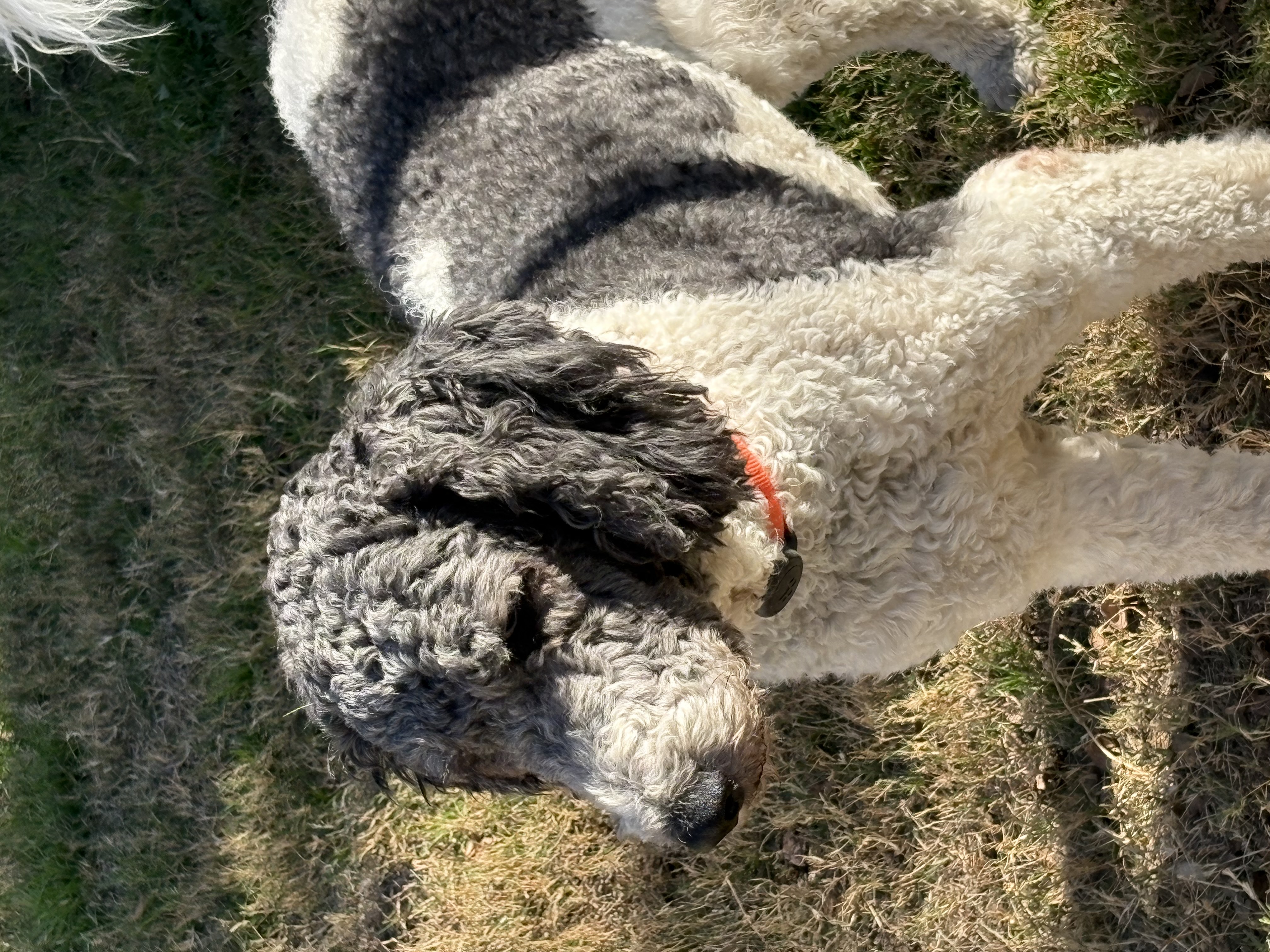 Hi, I’m Briar. I’m a 4-year-old Sheepdoodle, about 65 pounds, and I’ve got a pretty solid handle on the basics of being a dog. I’m neutered, vaccinated, potty trained, and I know how to use a dog door. I’m still learning the rest as I go—progress over perfection is kind of my motto.