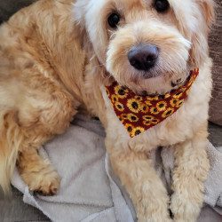 Hi, I am Bridget, a 6 year old Female Goldendoodle, but you wouldn’t know my age when you meet me. I still feel like a younger dog! I’m full of smiles and love. I weigh 42lbs and my super soft coat doesn’t shed.