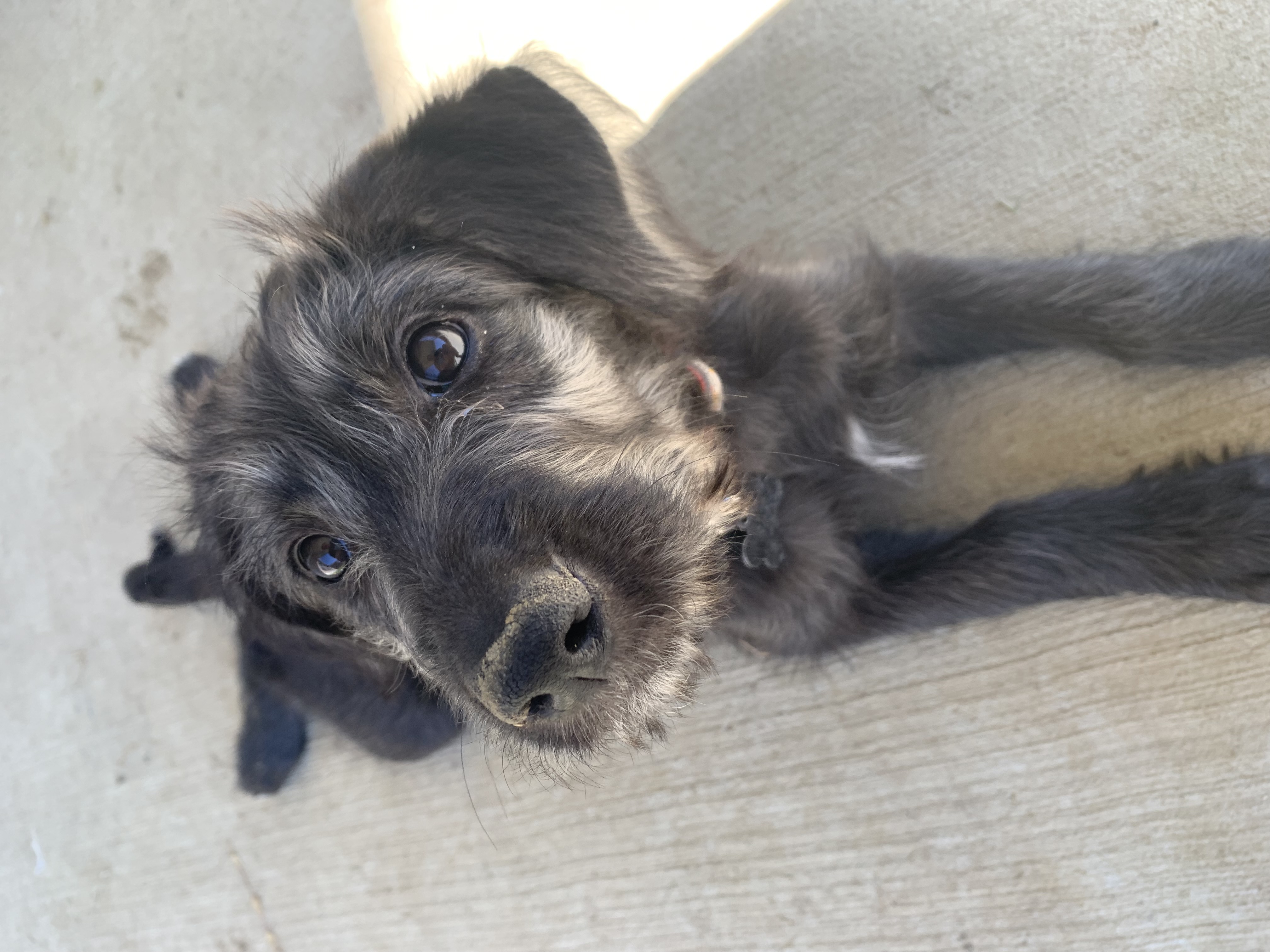 Hello, I’m Brisket, but my foster family calls me Skully because of the marking I have around my eyes! I’m an 11 week old female poodle mix and weigh 12 pounds. My favorite things include playing with my sister, chewing on toys, and sunbathing with my foster fur brother! I don’t shed and I’m so sweet! I can take myself out to go potty all by myself as long as there’s a dog door.