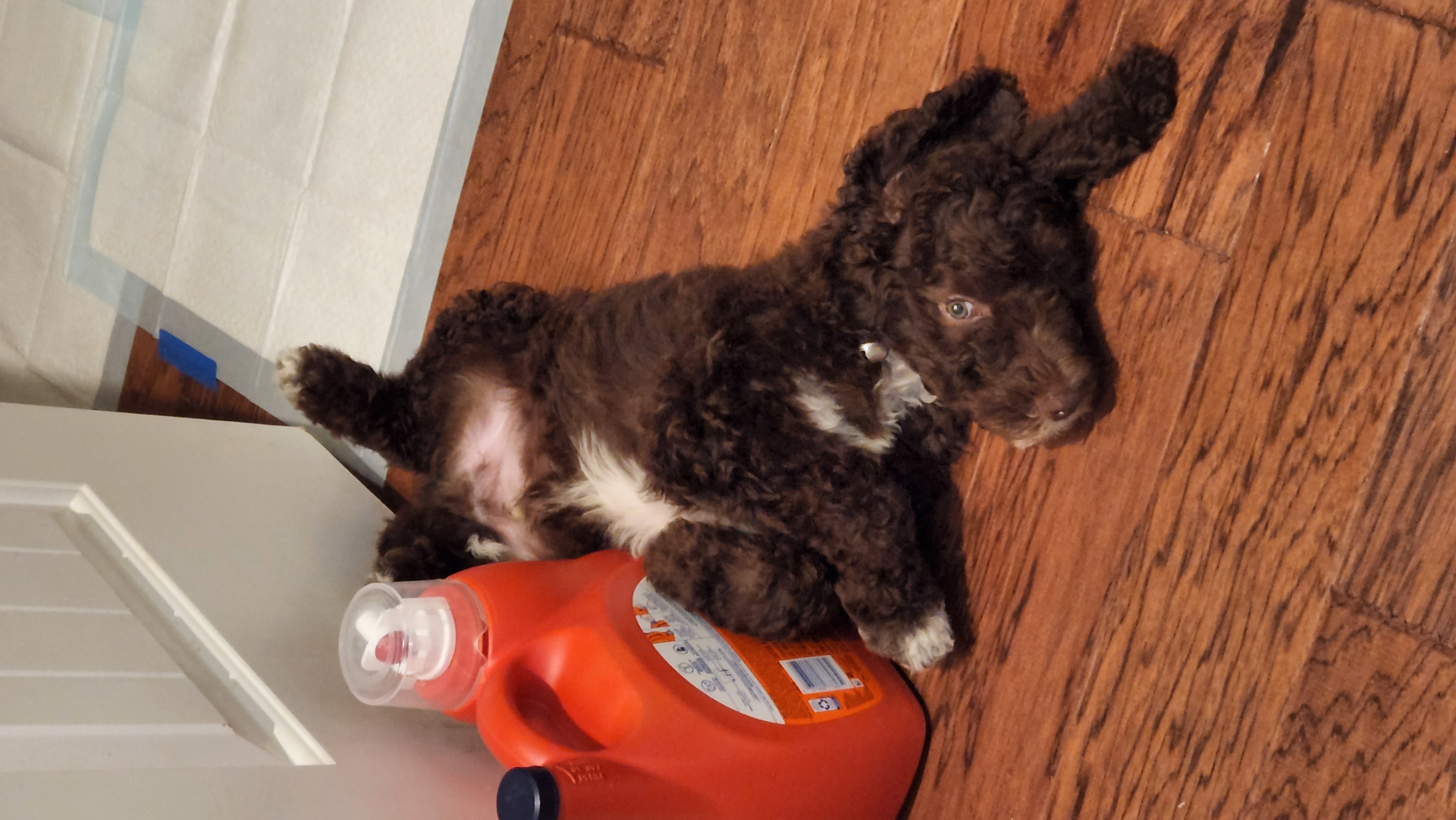 My name is Brownie and I am about 8 weeks old and just over 14 lbs and still growing. They tell me I am a Sheepadoodle so I might be big!