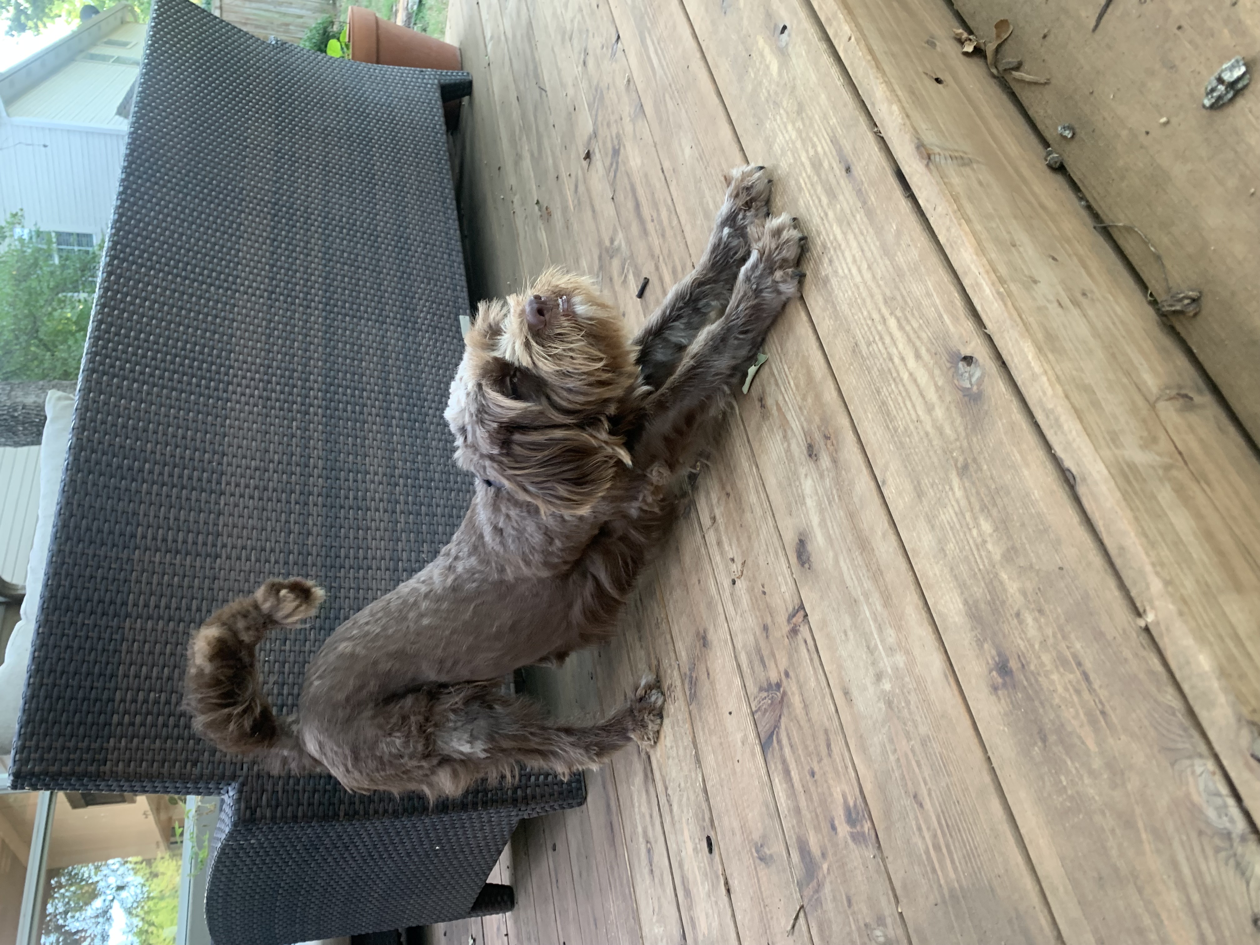 In the mornings, I like to get up bright and early and go potty outside. You never know what adventures await, so I need to make sure to sniff and check out the entire yard before I head back in. I don't like to go to the bathroom by myself, so my mom usually goes out with me. When I come back in, I eat my snack, get a drink and start rummaging around the house to see what I can do for the day. Playing with toys is the best, so I would love a house with lots and lots of toys! I don't really differentiate between your shoes, knick knacks, and my toys, so you might want to keep those things away if you'd rather I didn't eat them. I like to hang out with my people the rest of the day, and I hate being apart. I'm a rather sly friend, and I have a talent for unlocking and opening doors! If you're not with me, I will find away to get to you. Doodle Rock bought me a special crate, because I can open crates too. I'm quite the character, and there won't be a dull moment when I'm around! At night, I like to play before bed and run around the house. I also like to eat dinner. At bedtime, I like to snuggle up and share the pillow. Always Together is my motto!