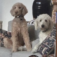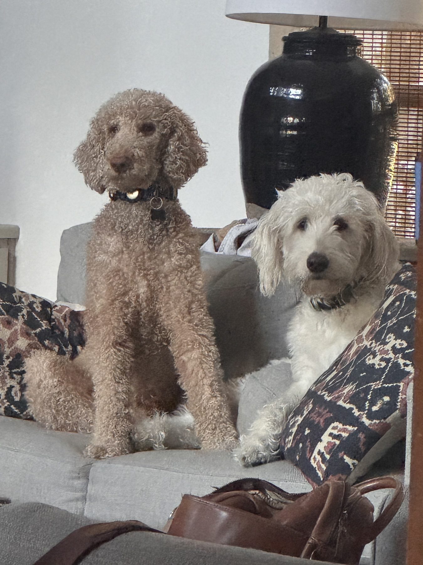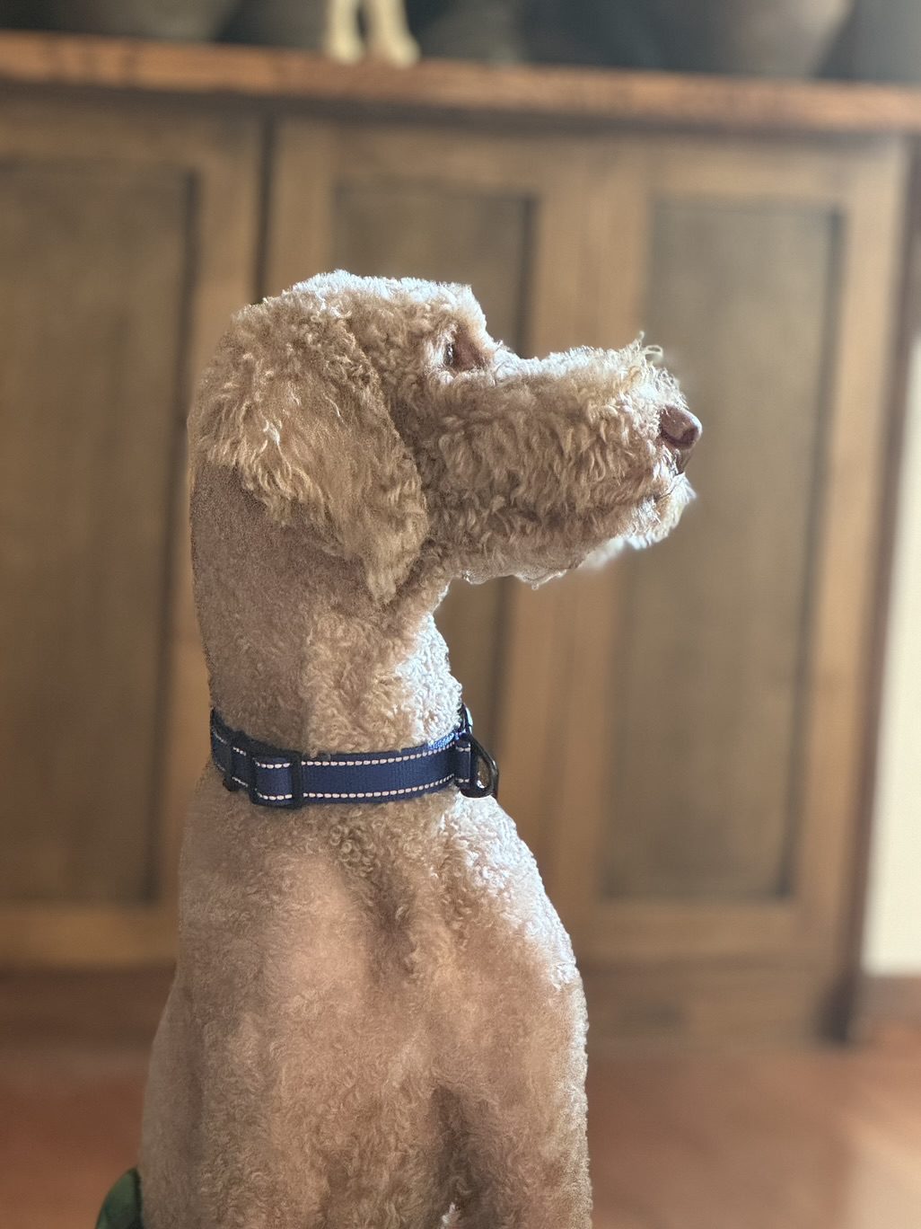 I’m still working on my manners, especially when it comes to listening to everyone’s commands. I can sit and stay… at least for a moment, but sometimes my excitement gets the best of me and I pop right back up. I may bark when someone comes to the door, and in true poodle fashion, I might stand up to greet you with a hug. I’m not trying to be naughty—I just love being involved and I’m always ready to welcome the world with enthusiasm.