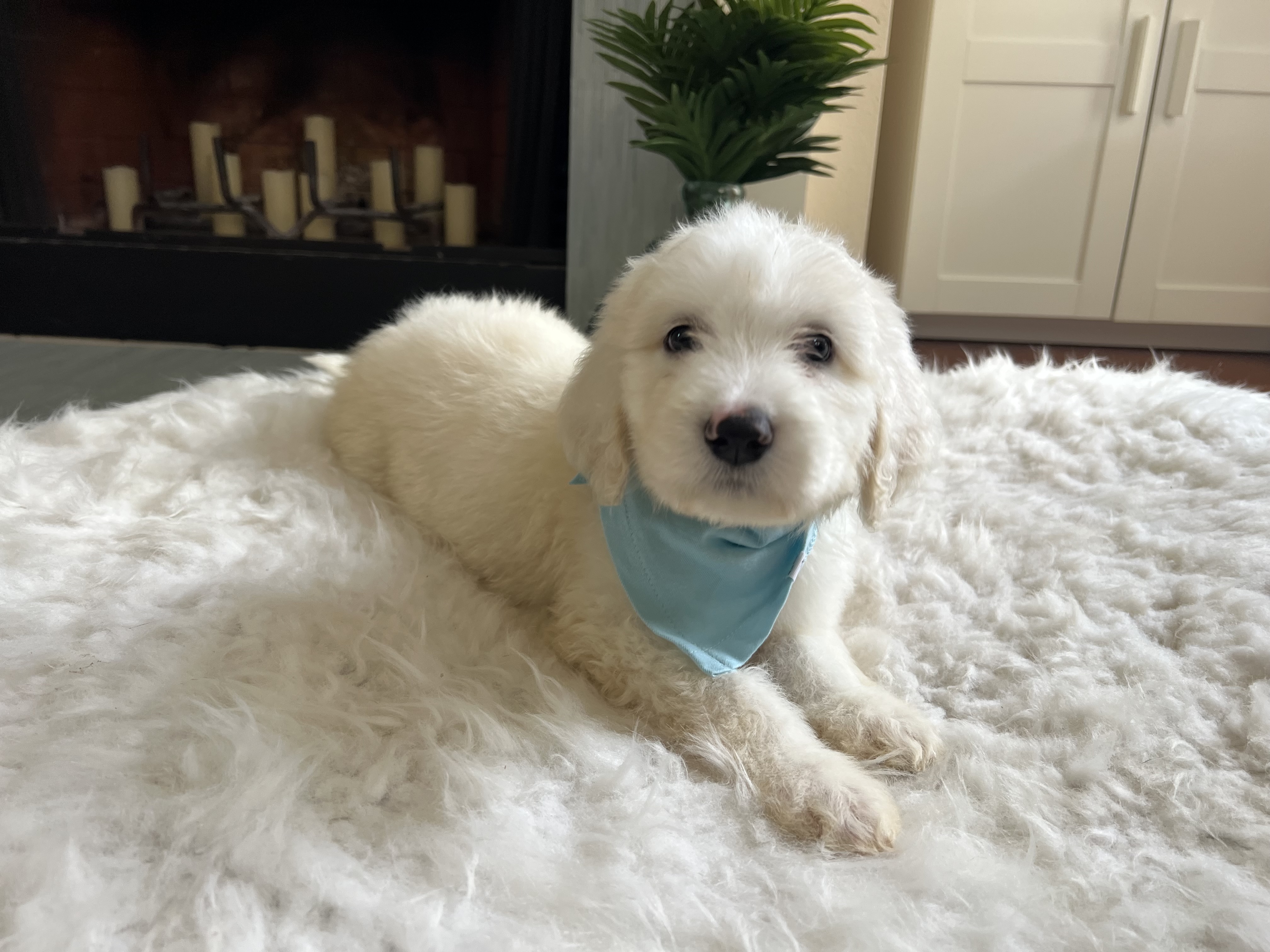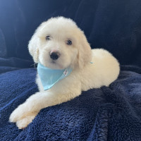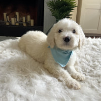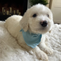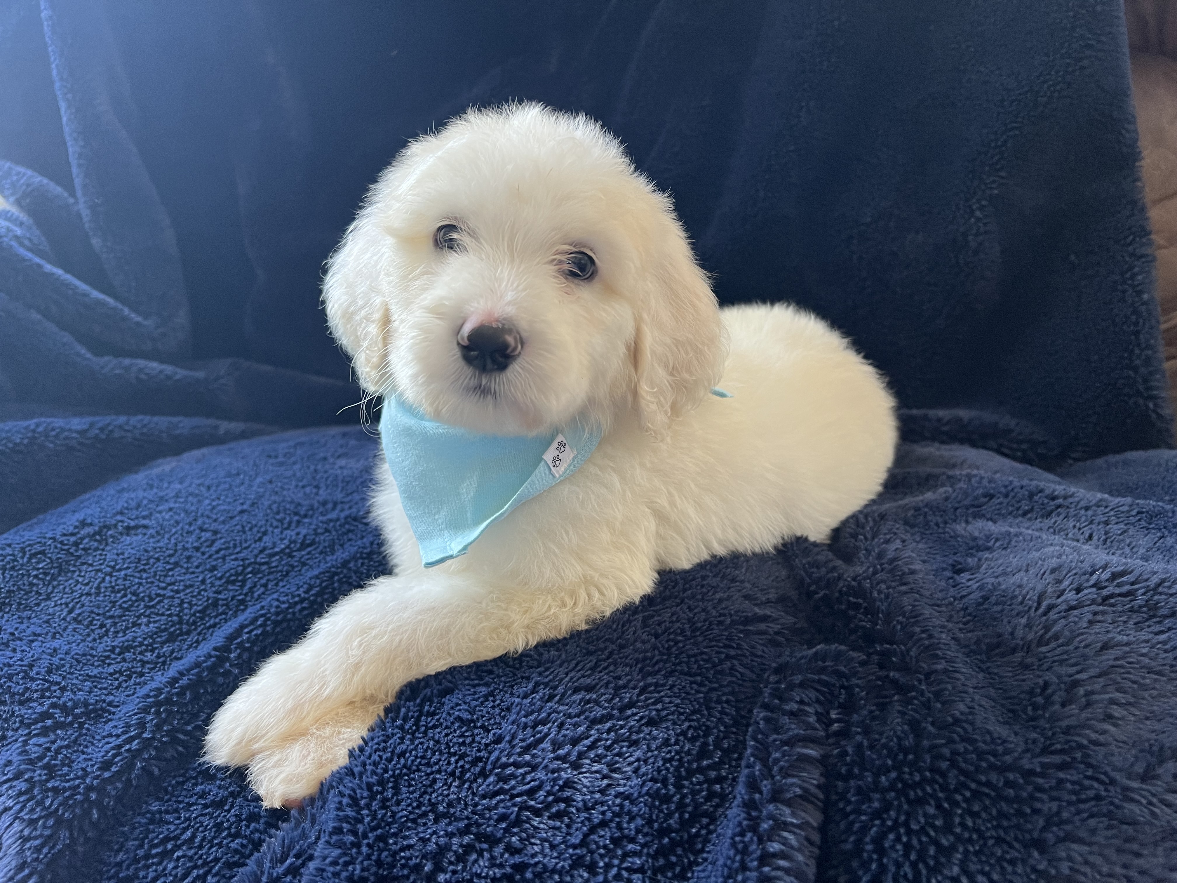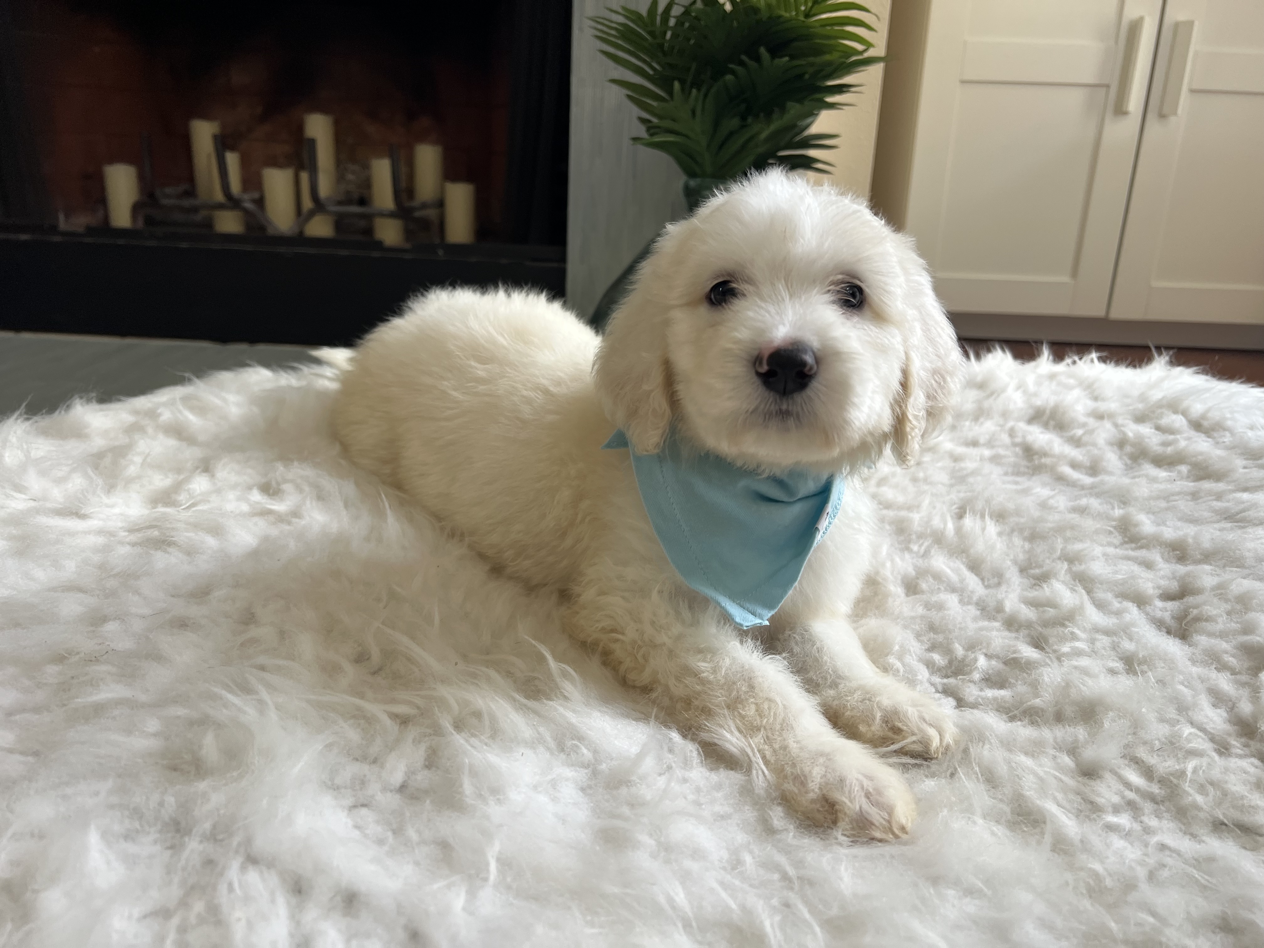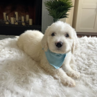 Hi there! I’m Bubba — an 8-week-old, 5-pound poodle mix with a name fit for the fairway and a heart full of charm. I may be little, but I’m full of big personality and even bigger dreams. I’m also rocking a unique look — I was born with two missing toes on my left foot (don’t worry, I don’t even notice), and my cream-colored coat is one-of-a-kind in my litter, shared only with one of my brothers!