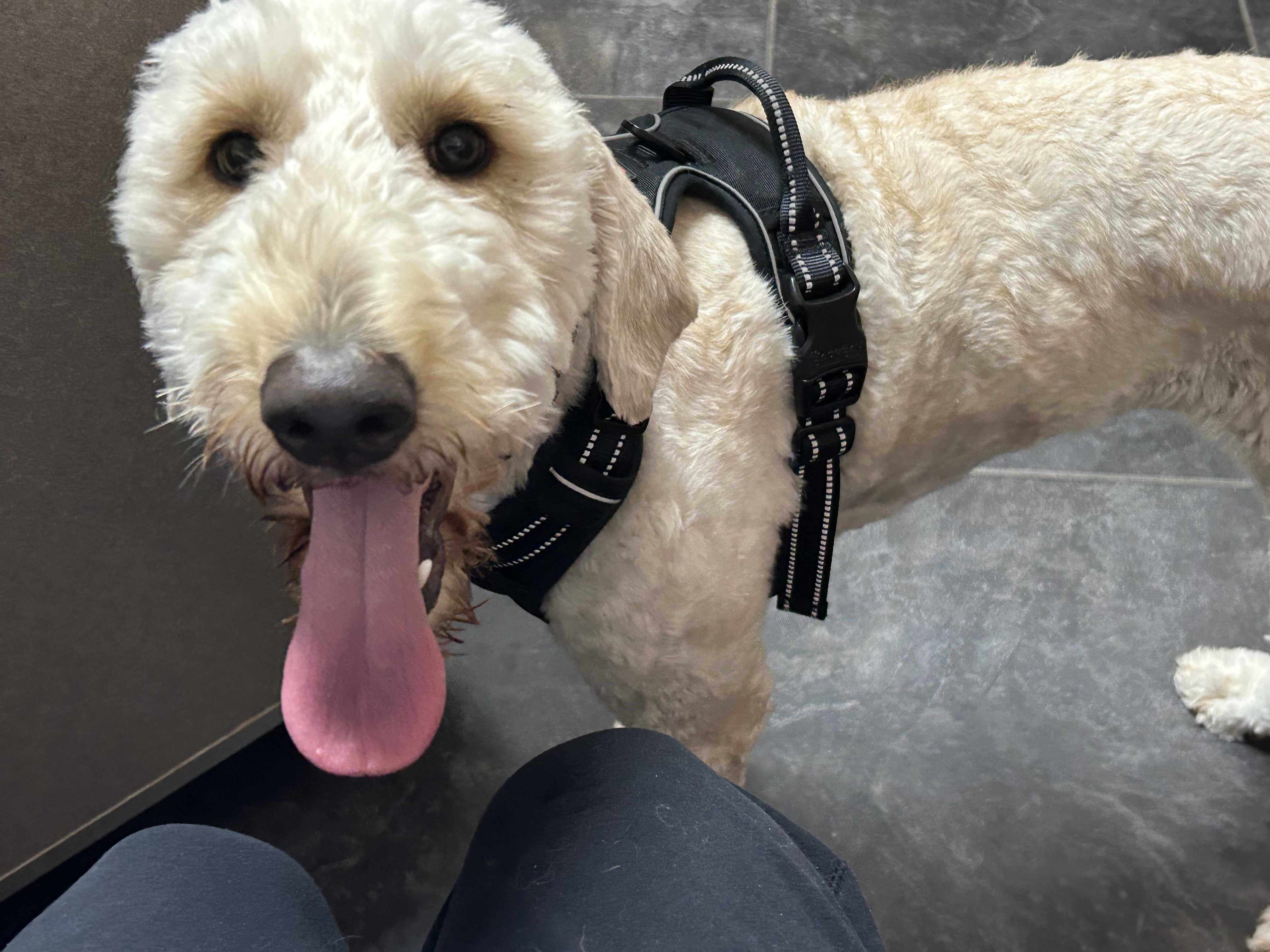 As soon as I see you in the morning, I’ll want to greet you good morning with lots of excitement and energy. When I get super excited, I may gently jump up on you and make funny clicking noises with my mouth and teeth. I’ll head outside to do my business and then I’m ready for breakfast! I like to play and/or go on walks 2-3 times per day, then another meal when you have dinner. I’ll cuddle with you during movies or work time if you invite me to join you!