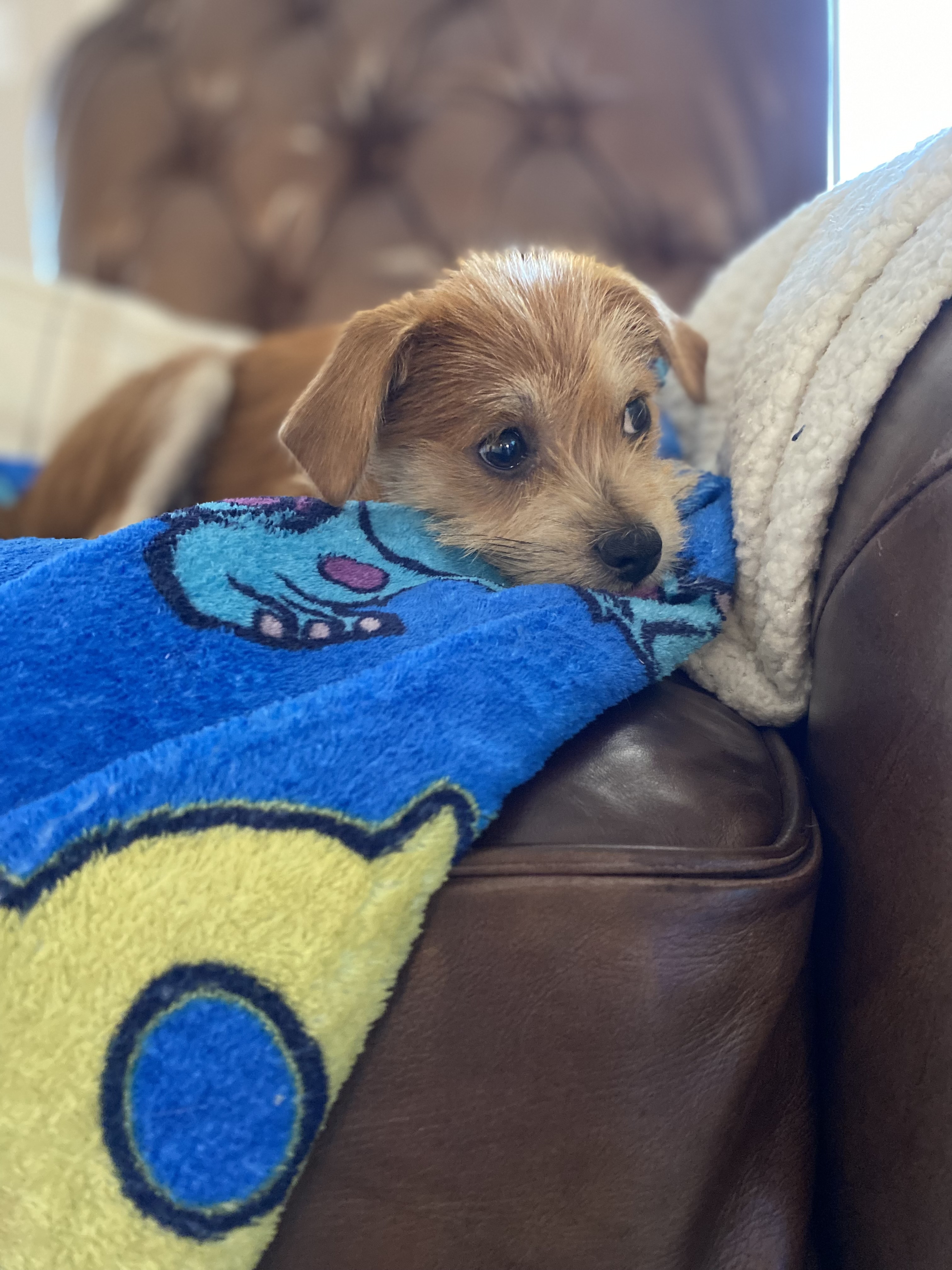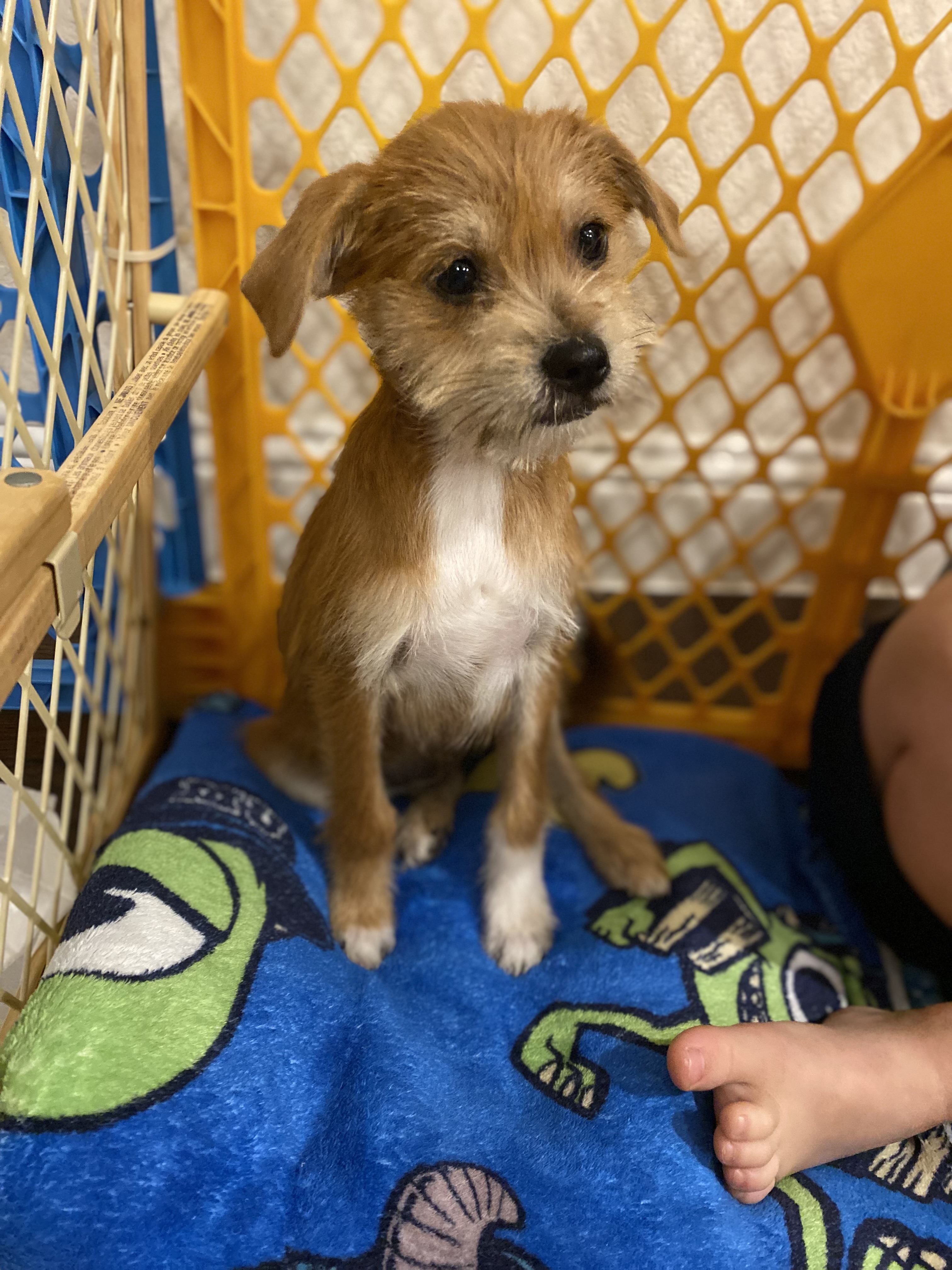 Hi! My humans call me Burrito. I’m a Male Terrier Mix and still a baby at only 4-months-old. My reddish brown hair is super stylish and low maintenance. I shed very little! They say I’m all wrapped in to one. I am a sweet, smart, fun 8-pound cuddly boy!