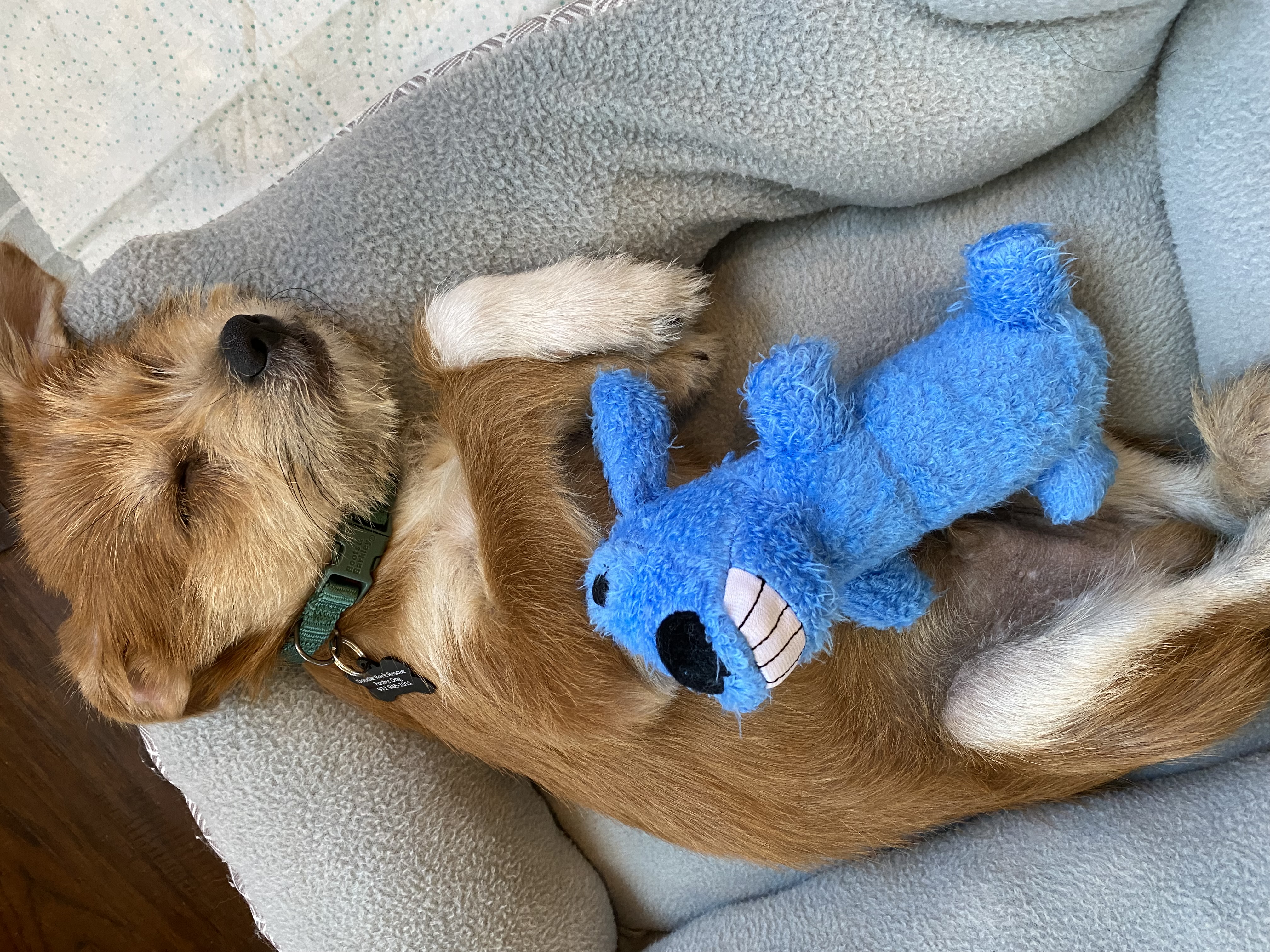 I’m ready to rock and roll in the mornings and will let you know around 6 that it’s time to potty. My foster mom will let me out of my crate and take me outside. Then I get to go lay in her bed for a few minutes! I get so excited for my car rides to drop off and pick up my little humans from school. I normally eat breakfast once we’re back at home around 8am and then play and nap for most of the day. Bed time is usually around 8 or 9 where I snuggle in my crate with another puppy just like me. It’s really cozy in my crate because we have beds and blankets that we curl up in.