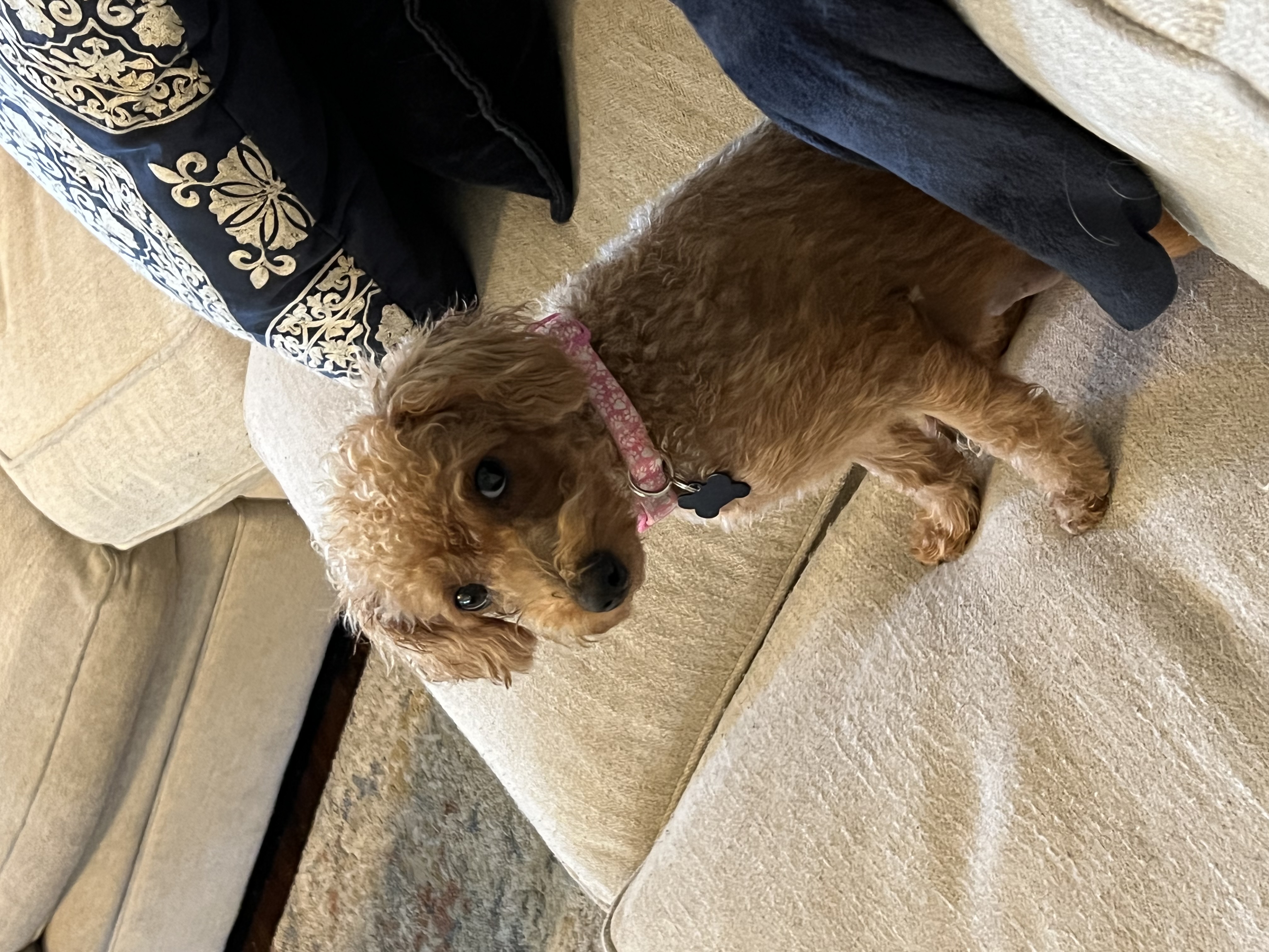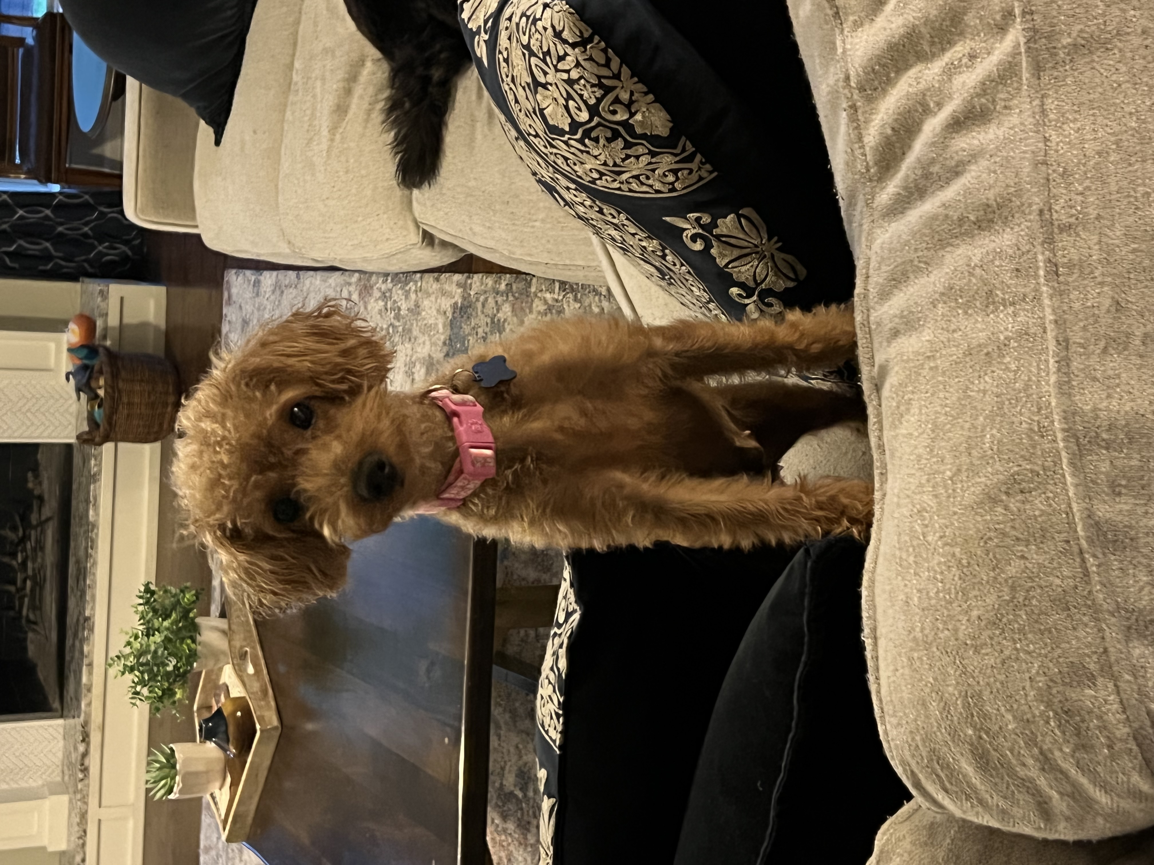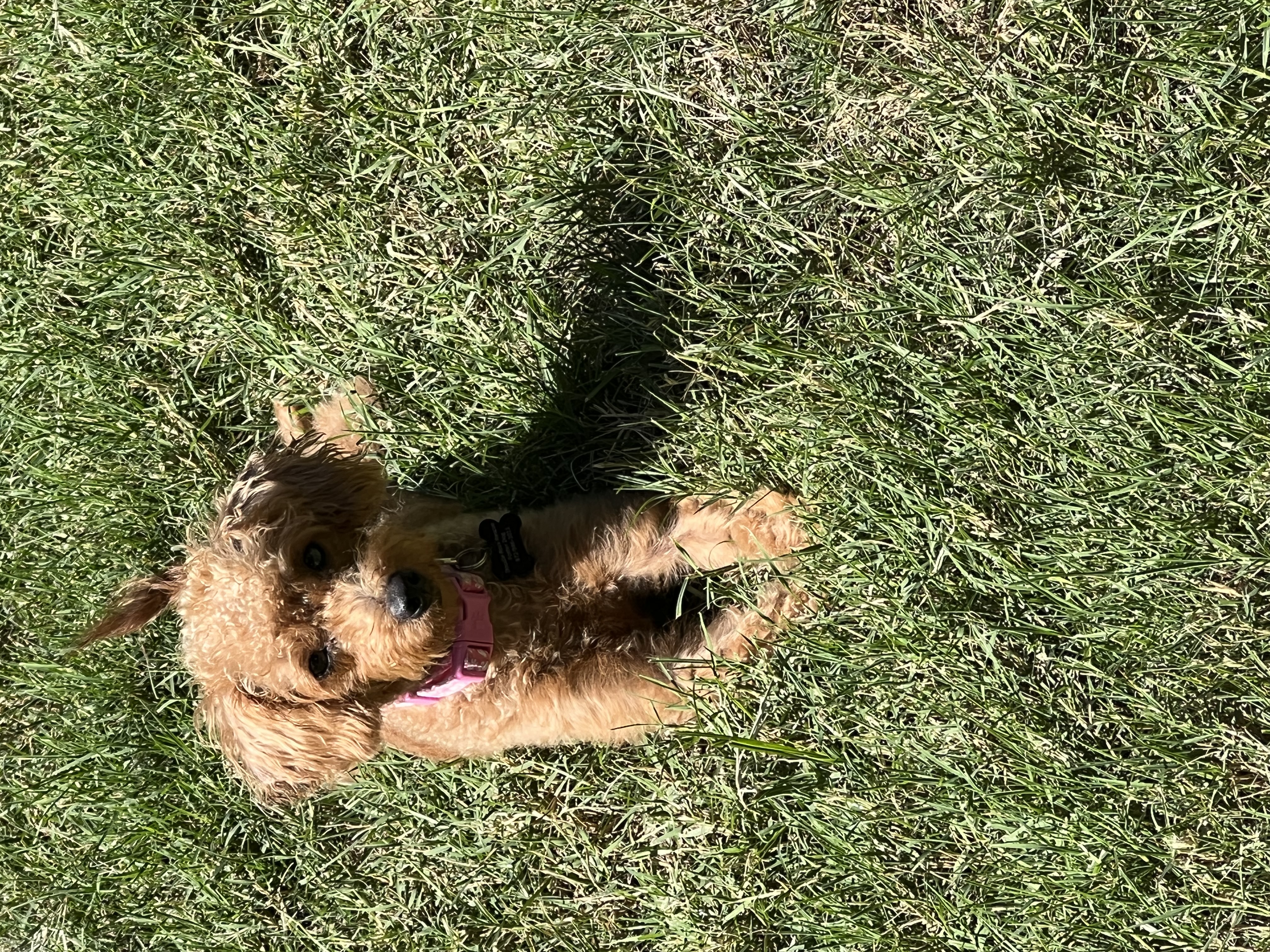 Hi, my name is Carole. I'm a one-year-old micro mini F1B goldendoodle and weigh 10 pounds. I'm small but mighty!