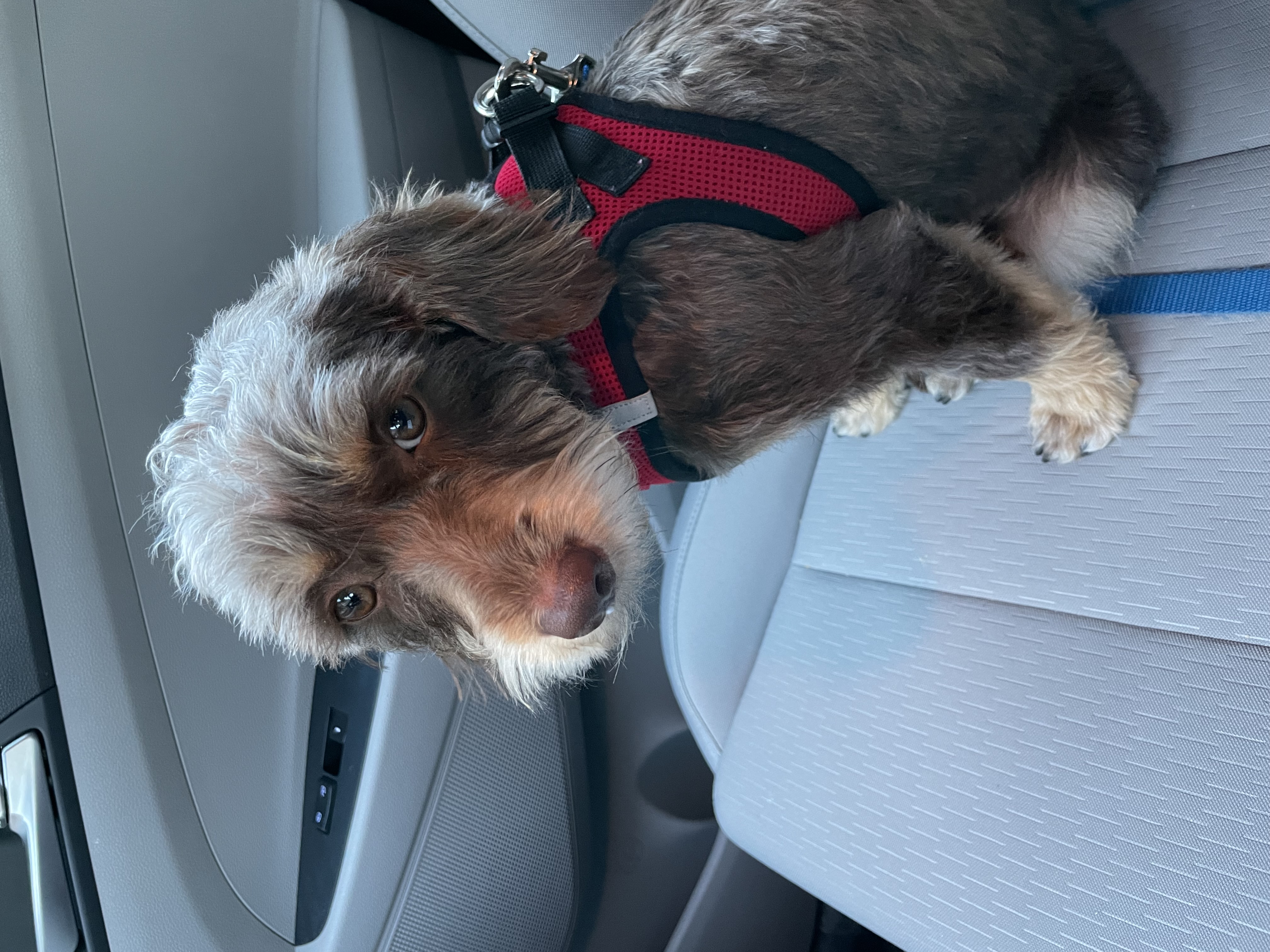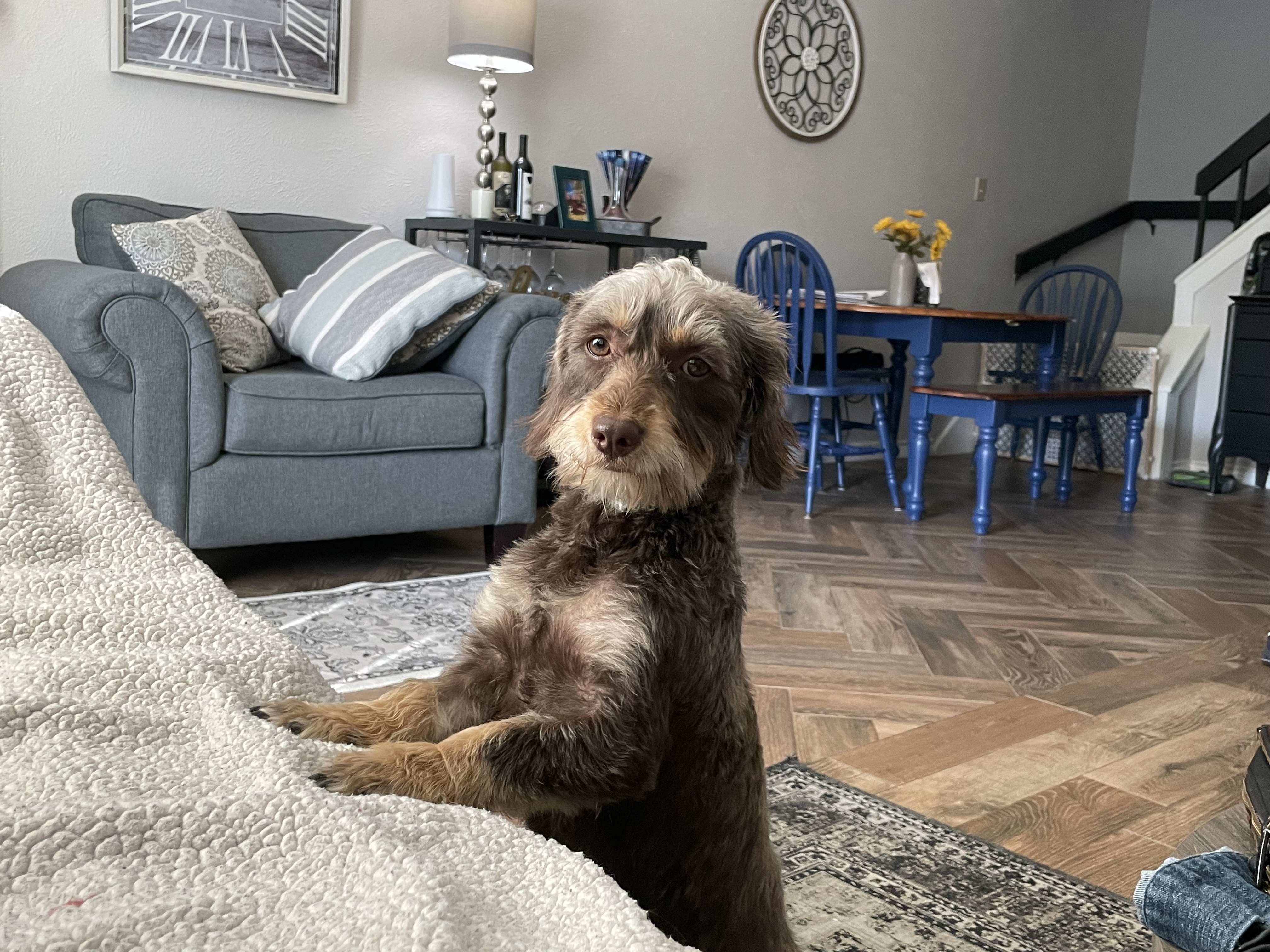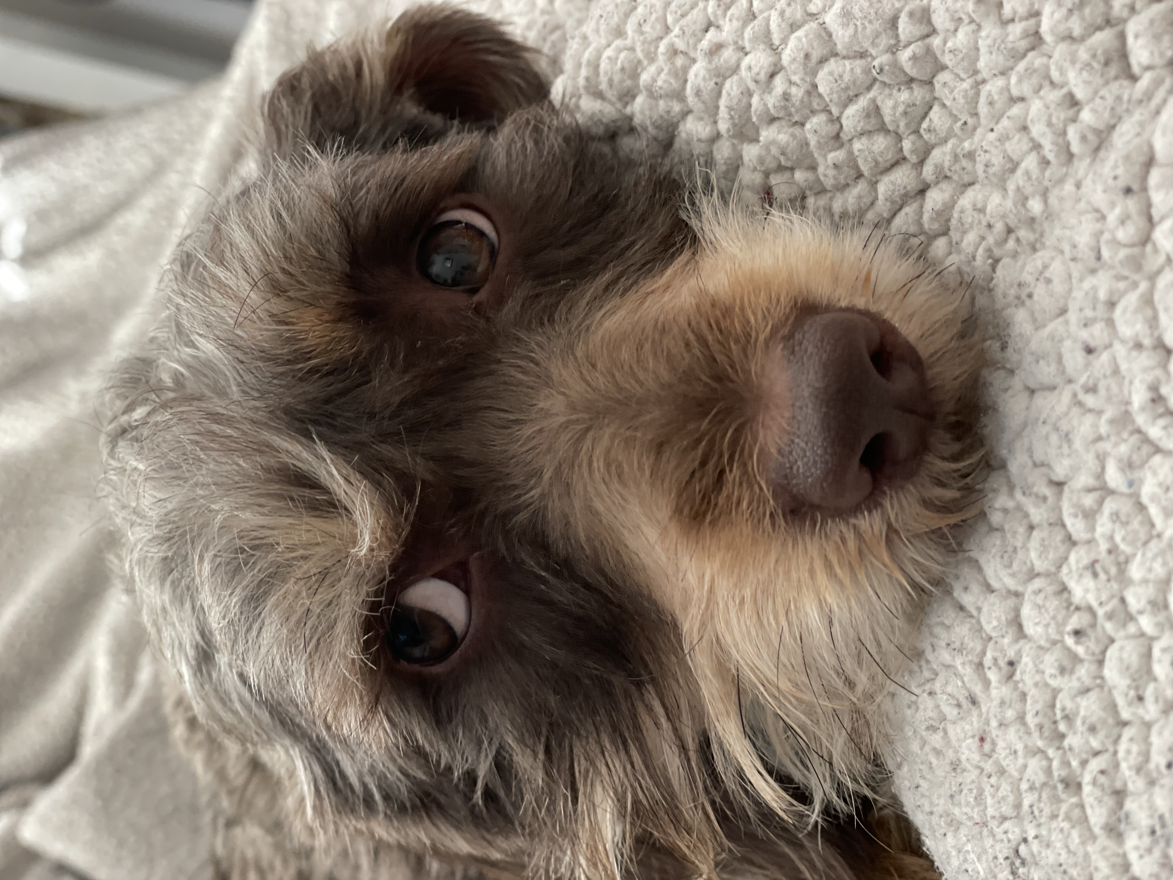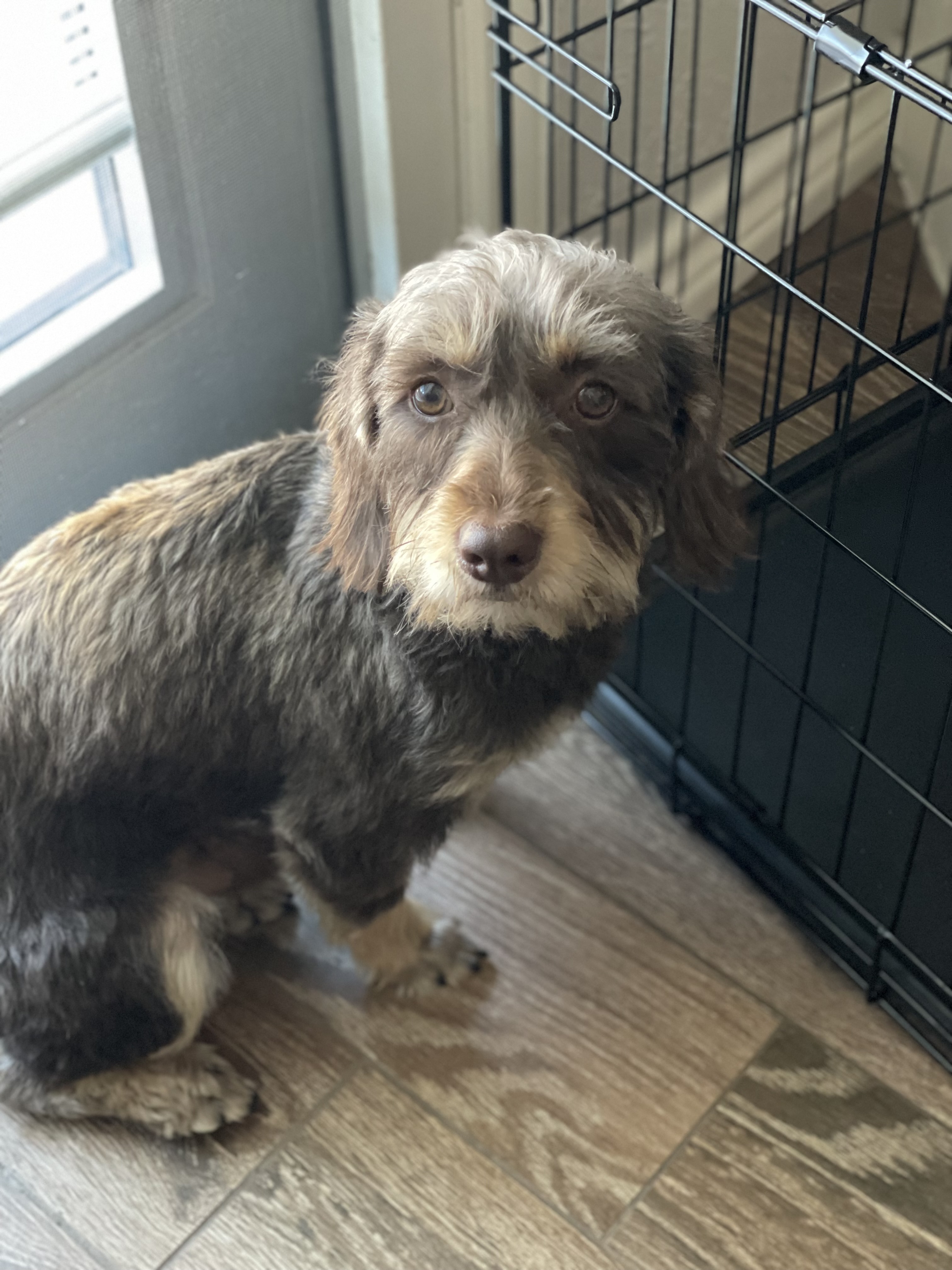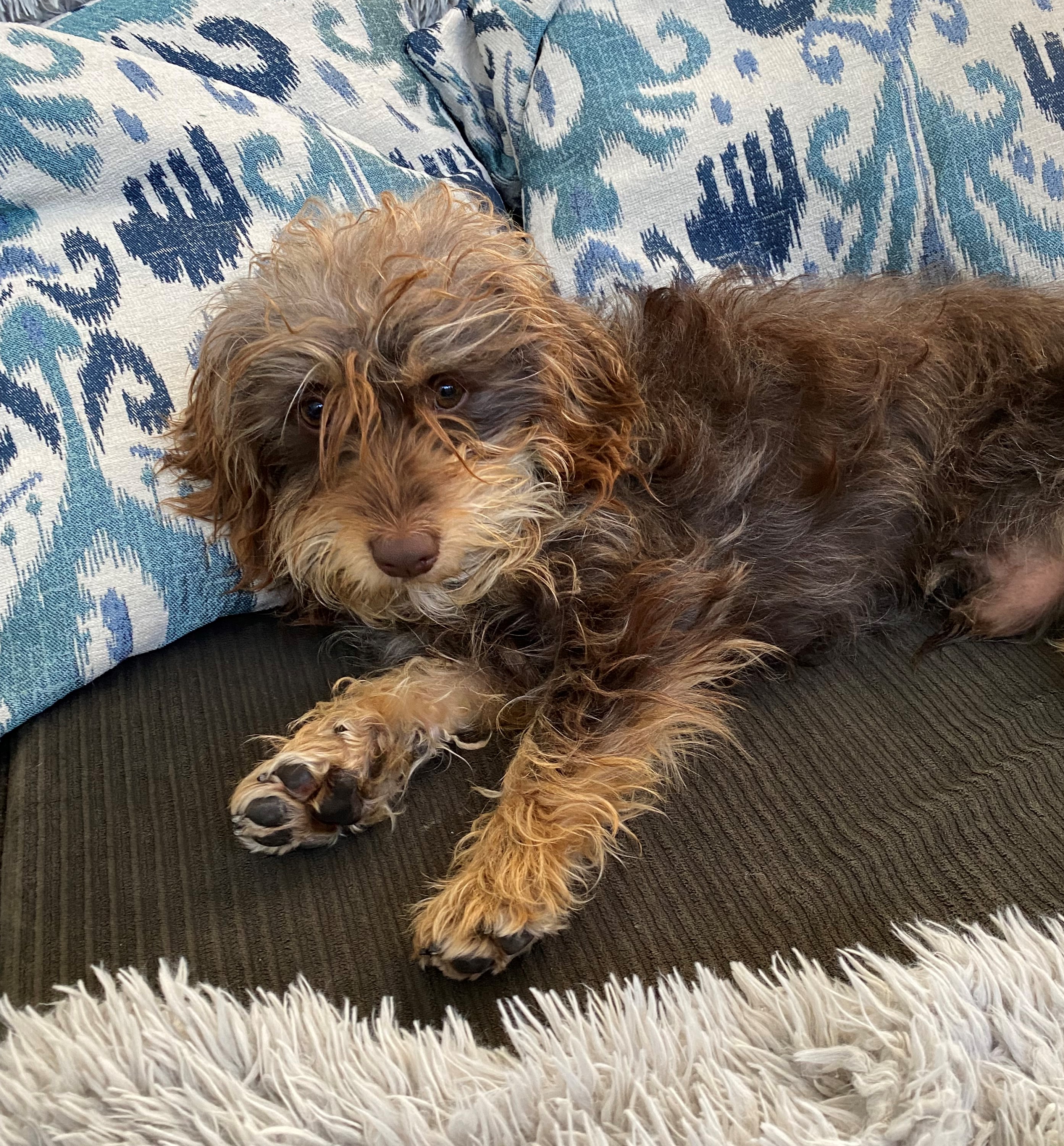 Hi, I'm Casanova! I'm a sweet, snuggly, two-year-old Adoradoodle weighing in at about 15 lbs.