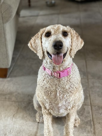 Hi! I’m Cassie an almost 2 yr old golden doodle weighing 55 lbs.