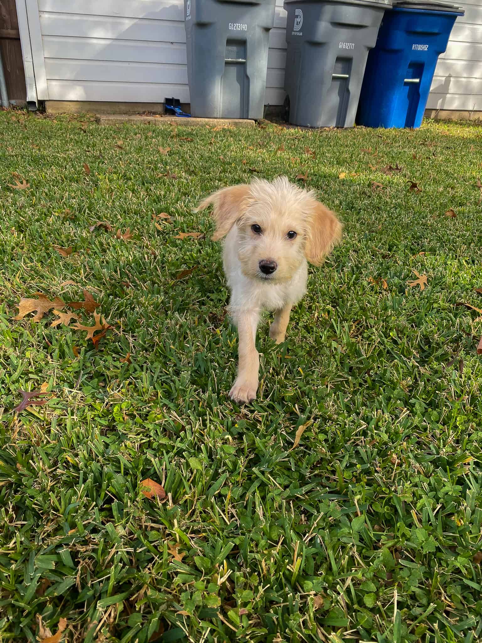 In the morning I have my breakfast and go potty right afterward. I love playing outside and chasing the kids or even playing in a big pile of leaves. After a morning of play, an afternoon nap is a must. Dinner time is always quick so I can get back to paying or chasing a few leaves or discovering new talents like fetch.