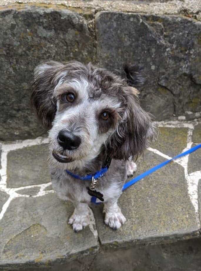 Schnoodle, Doxiepoo, adoradoodle (poodle mix), only Dr. Doolittle would know what I truly am. My foster mom says who needs a pedigree when I'm so full of sweetness and cuddles. I guess that's why she calls me her sweetheart and little shadow. Doesn't she know a one year old male dog like me needs a tougher name than being called sweetheart, though I am good looking and I do enjoy snuggling on the mini humans laps. Who doesn't enjoy snoozing to Netflix or a good book? Especially after a good game of tug-o-war with the big fur sister. I also like taking over that fur sister's big bed so I can really stretch out whether that dog is already sleeping there or not. Hey that furry mutt doesn't seem to mind if I gather all her toys because I'm good at sharing, gosh one time we even shared an old chewing bone. I do not know why people laugh when I carry around a toy bigger than the size of my head.