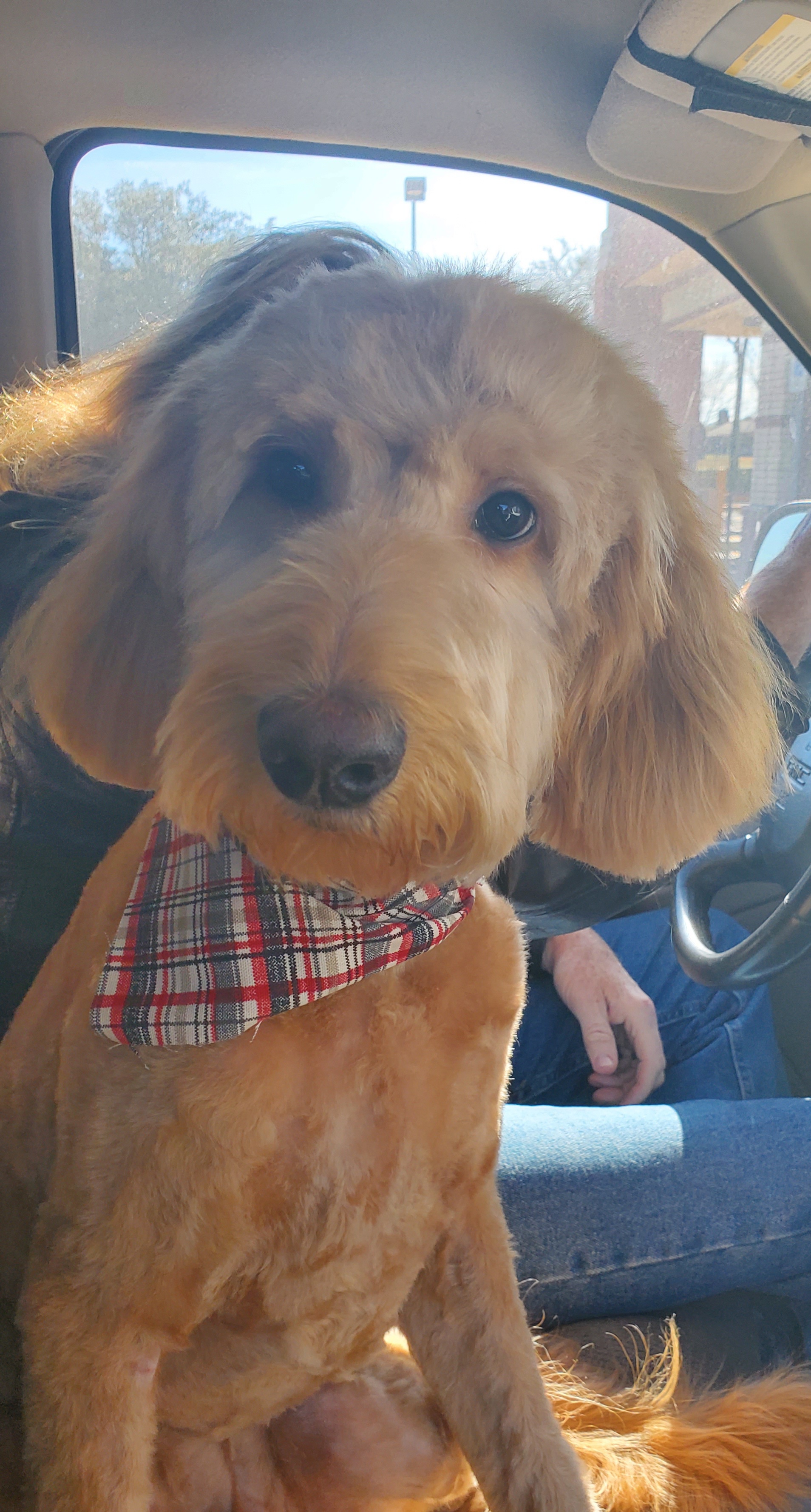 Hello, My name is Charles, but I go by Charlie, or Little Boy. I am a goldendoodle, about 10 months old and around 42lbs. I don't think I'm going to get very much bigger. I also don't shed.