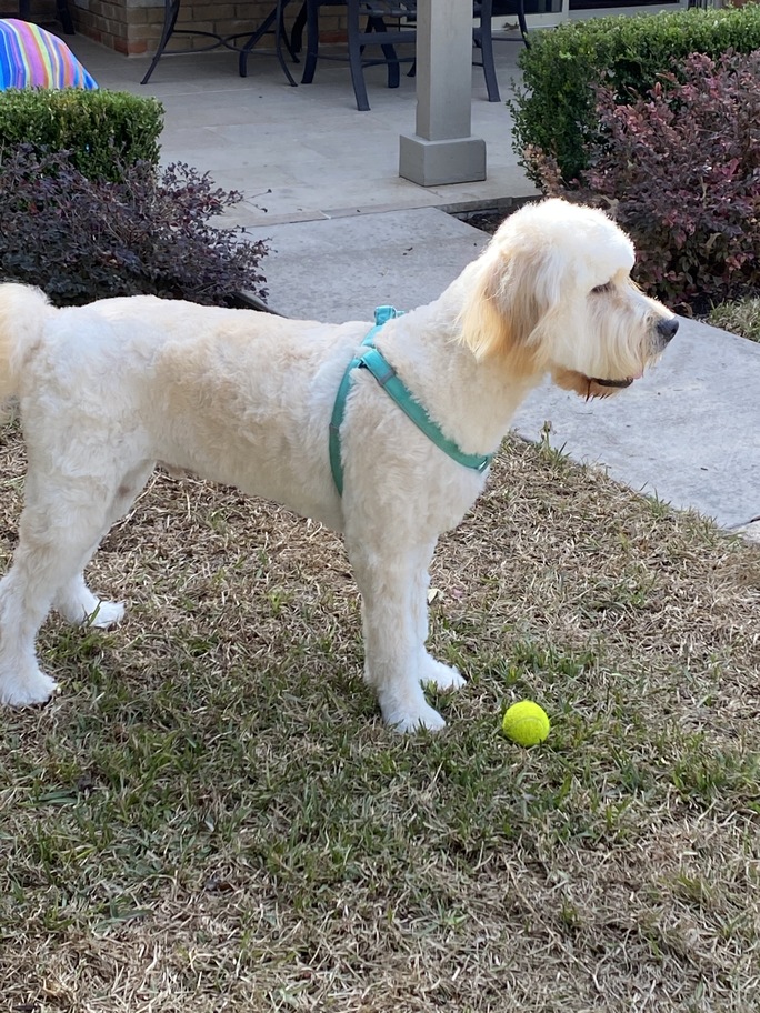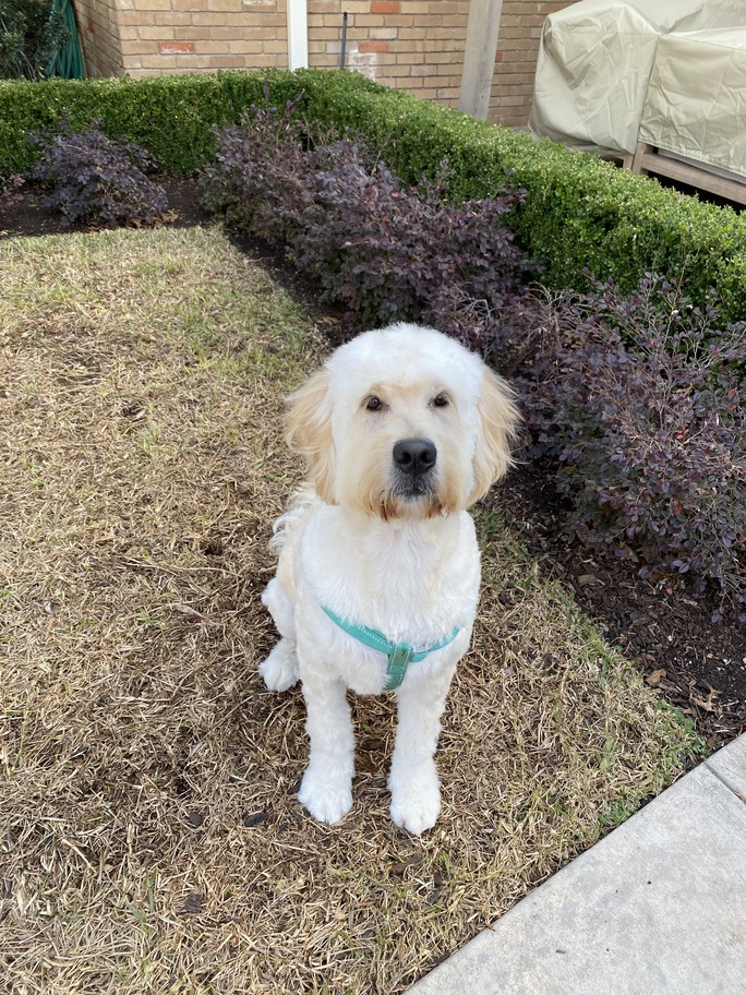 Hi, my name is Charlie! I'm a 1-year-old male Goldendoodle weighing in at 70lbs. I do have a straighter coat and shed a little, so I will require frequent brushing and grooming in order to prevent matting.