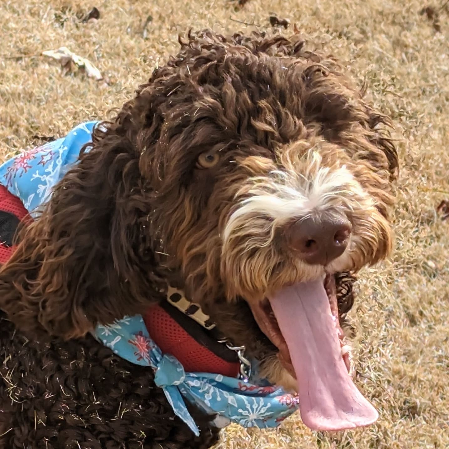 I'm trying really hard to be a normal dog, but I'm not quite there yet. I would love to have a home with at least one other playful dog. My foster mom is a dog-sitter so I have a wide variety of other dogs to interact with on a daily basis. While I have shown a preference for other doodles, I also enjoy the company of a retriever that comes a few times a week. These other dogs are teaching me that most humans are really great to be in the same room with, even if I'm not quite ready to snuggle. They are also teaching me that I'm supposed to bark when the mailman or Amazon guy comes to the door.