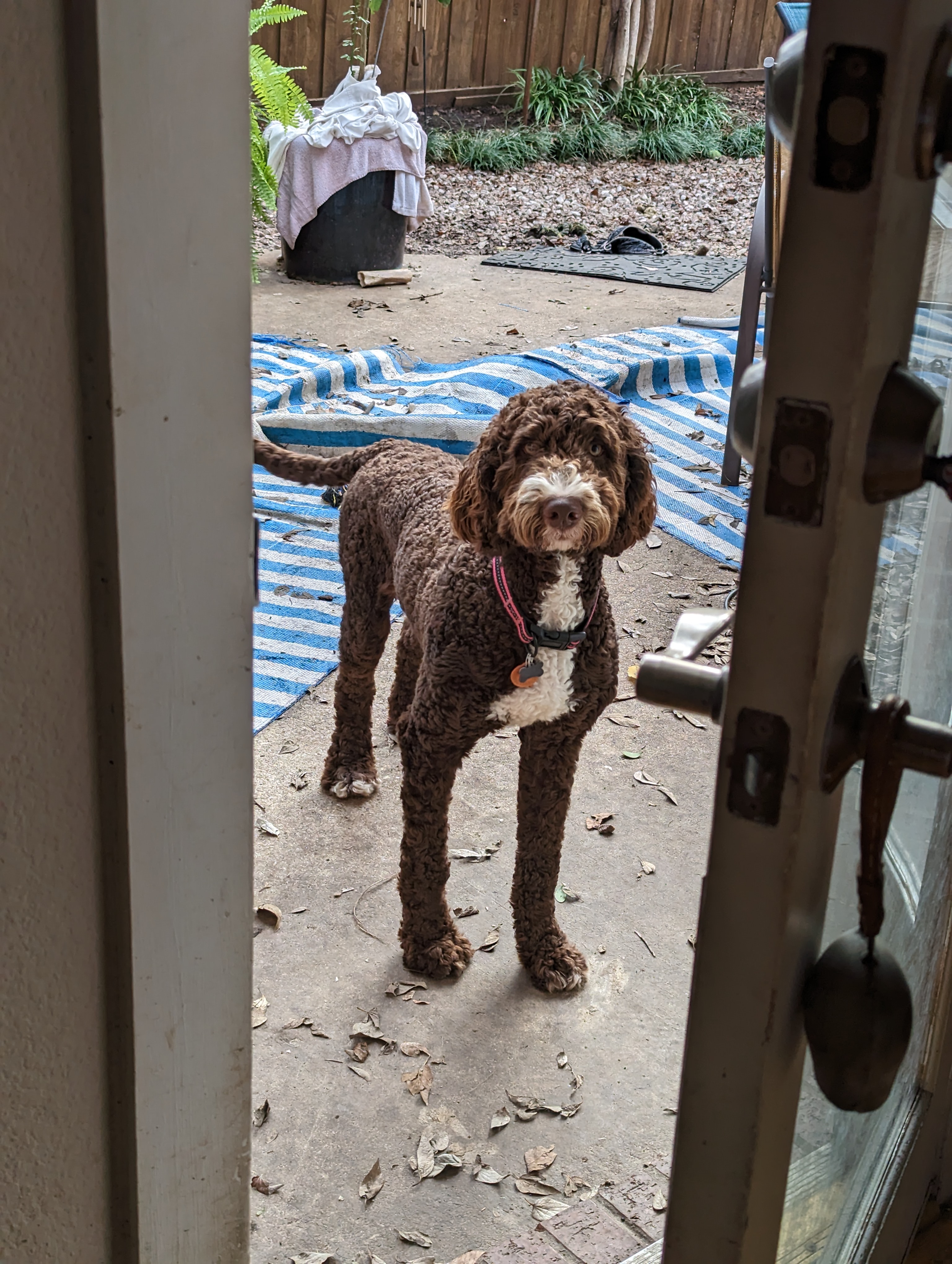 I'm still working on my leash skills and not wanting to dart away whenever a loud noise, car or another dog comes near. I can be quickly corrected as long as I'm in a secure harness. I ride nicely in the car once you convince me to get in. (I've learned that Puppuchinos are a thing at this place called Starbucks.) As much as I really want to come inside when you call me, I do best when you just let me enter through the doggy door when I'm good and ready. (I will peak in to make sure the coast is clear). Dog parks are not going to be a good idea right now unless you want to look really silly chasing me around.