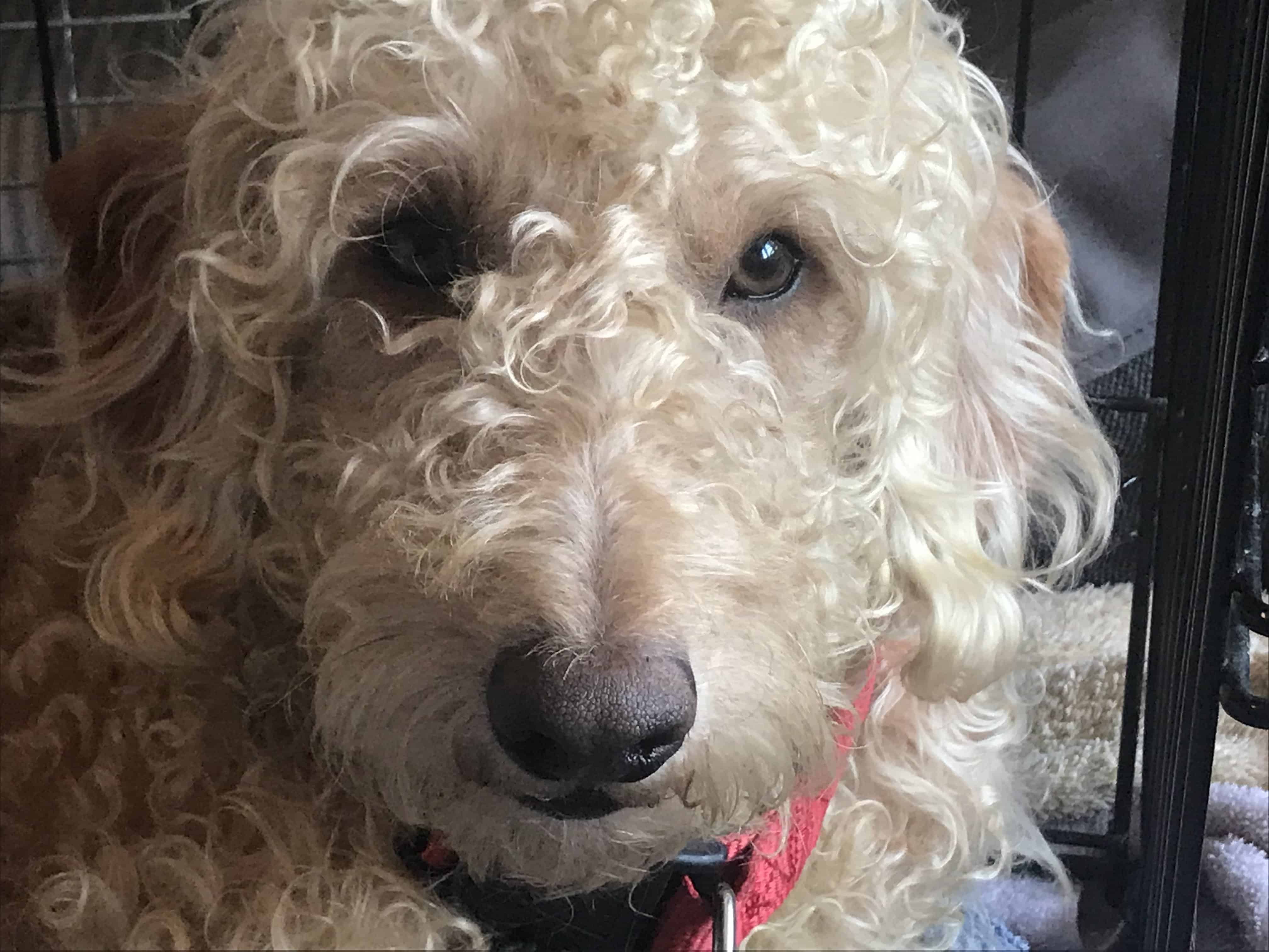 I am really smart because of the poodle side of me. I do not shed and do really well at the groomer. I taught myself how to go outside the doggie door after 1 try! Look at how smart I am! I am still working on getting the hang of going potty outside but with walks and taking me out on the regular I learn quick & do well.