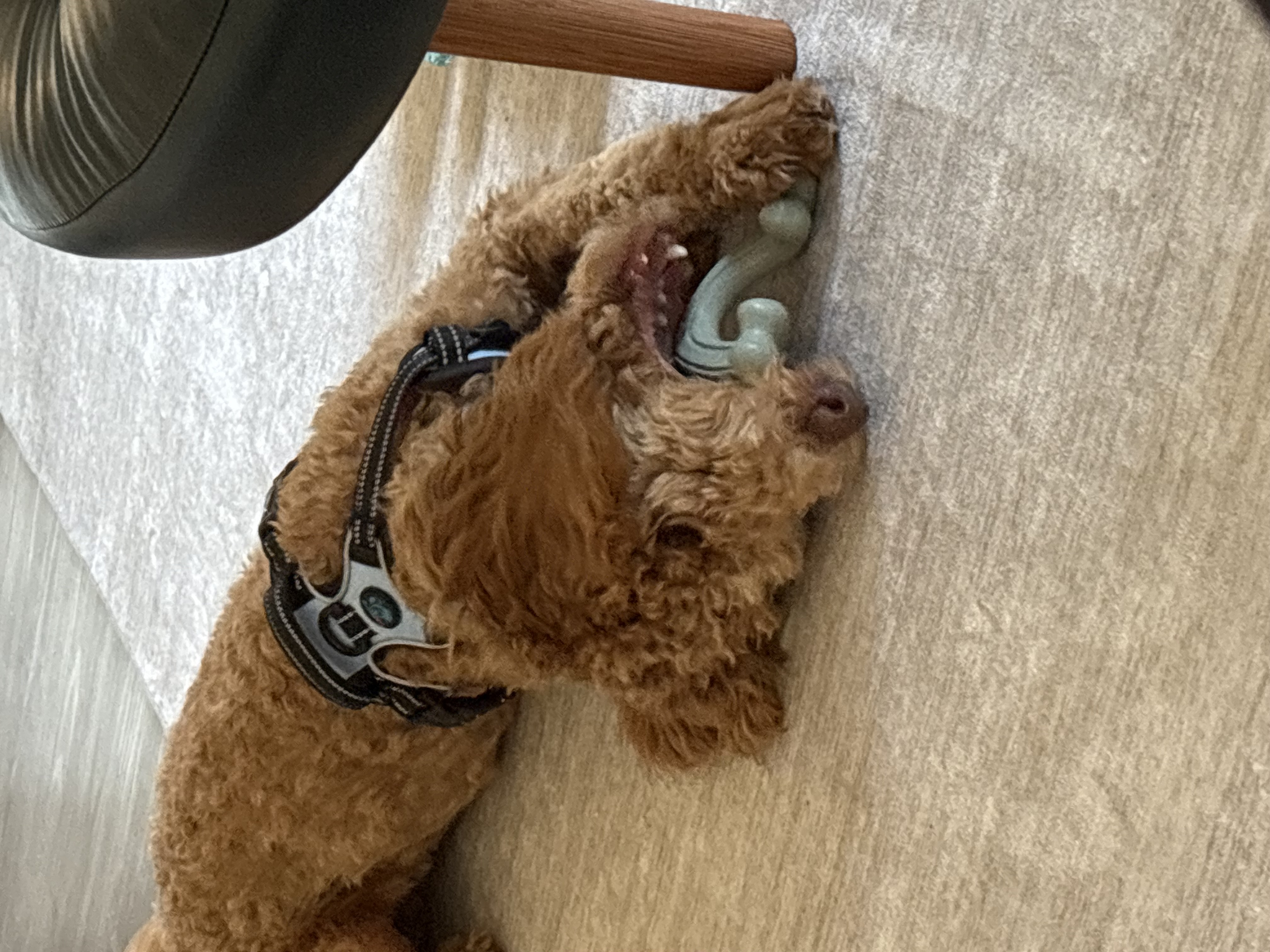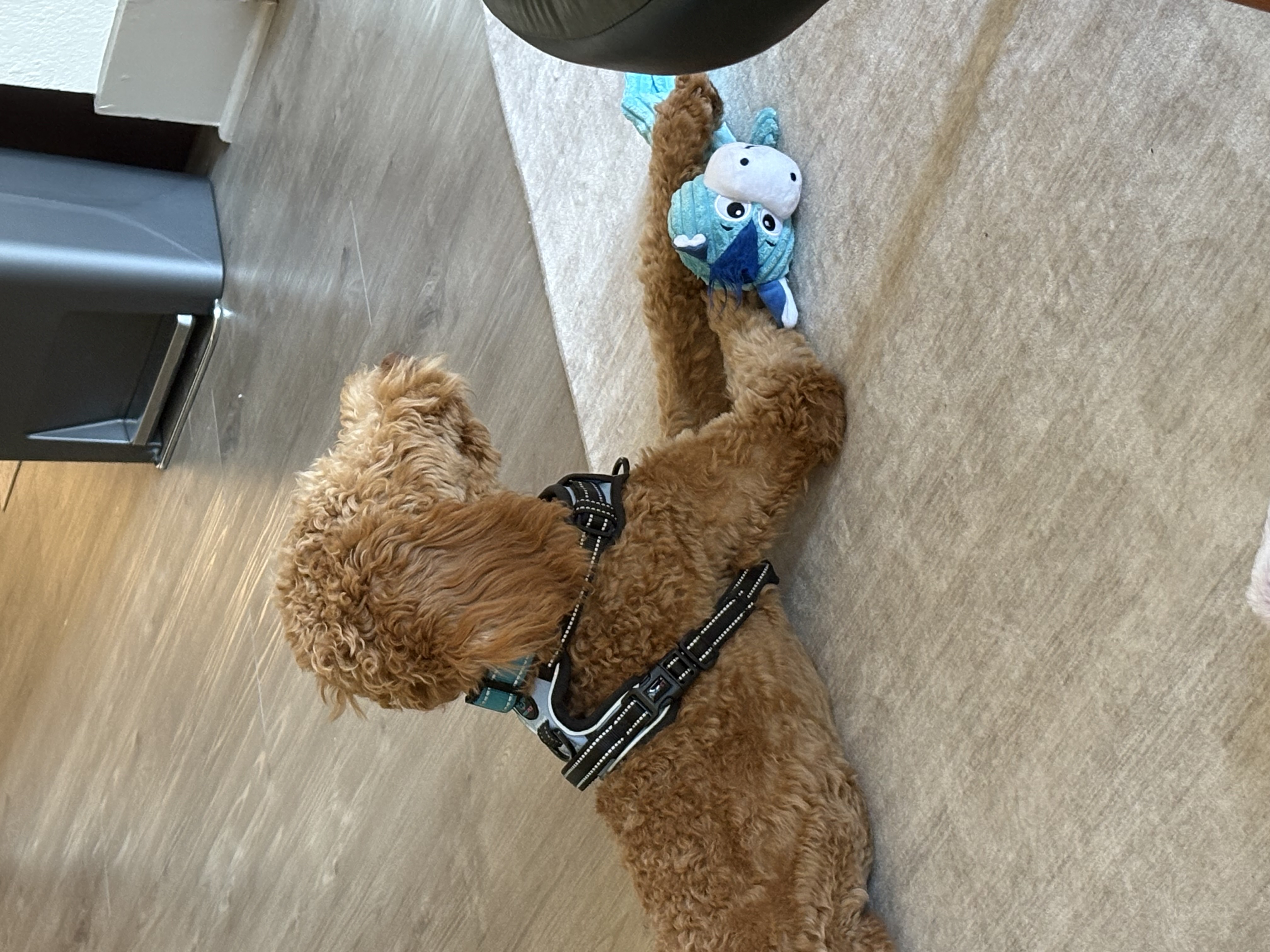 Hi. I’m Chicago. I am about 6 months old and 27 pounds of curly doodle energy and heart. I may be young, but I have already learned that the world can feel a little overwhelming sometimes. Because of that, I can be anxious when I first meet new people. I might get so excited and unsure that I nibble on your clothes or even have a tiny excited pee. I promise I am not trying to be naughty. I am just figuring out that humans are safe and love is real.