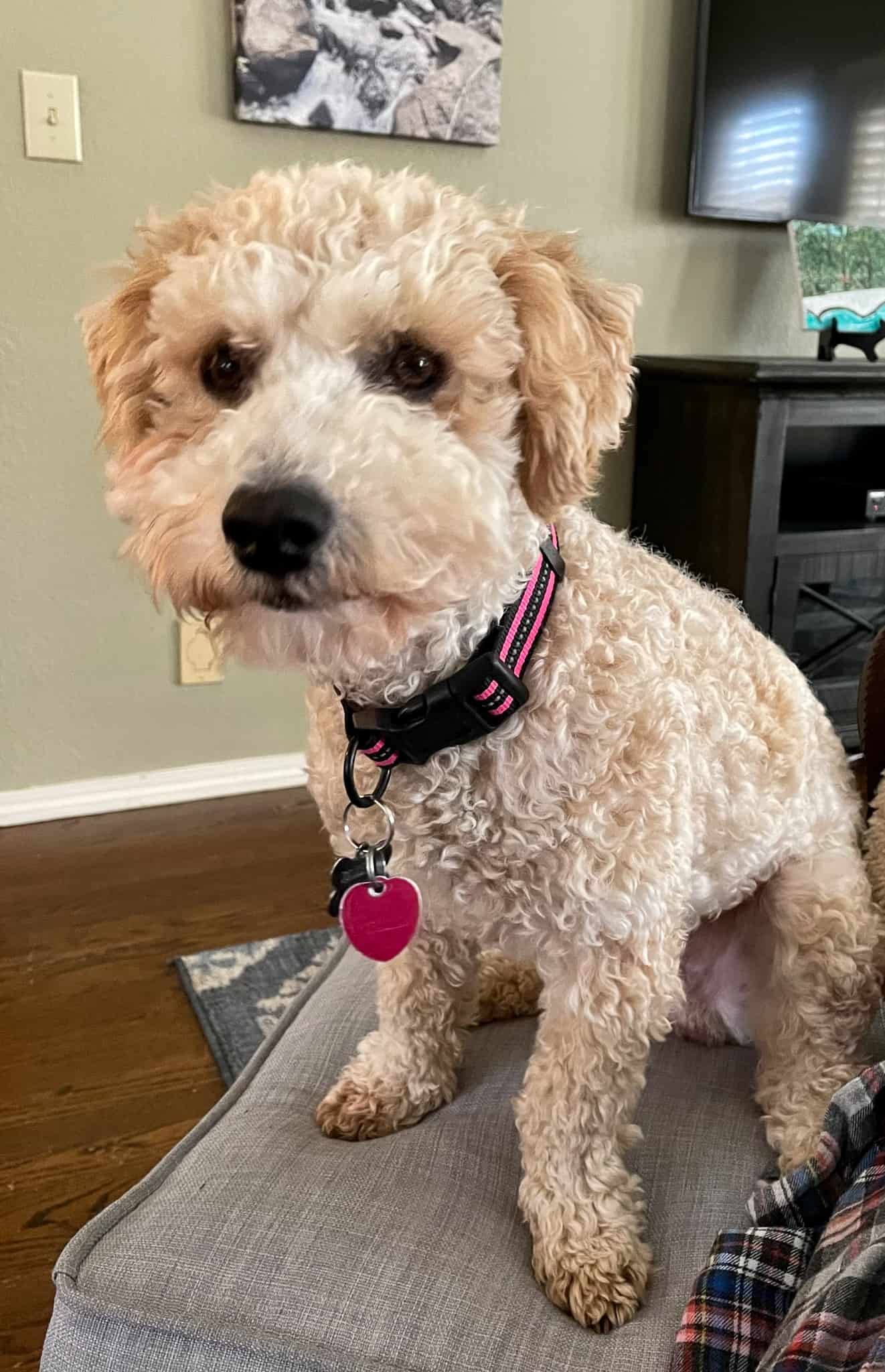 Hello! My name is Chico! I’m a 1-year-old male poodle mix and weigh 20 lbs of sweetness. I’m a spunky pup with lots of love to give - best of all no shedding!