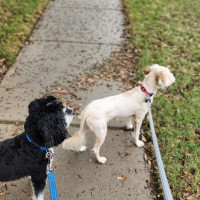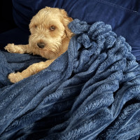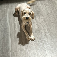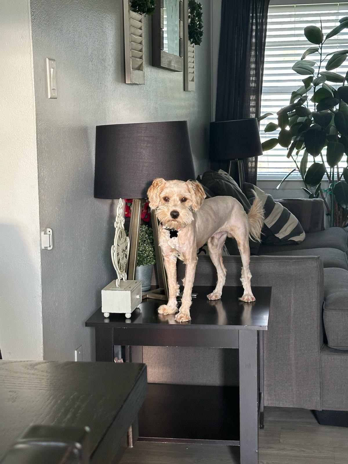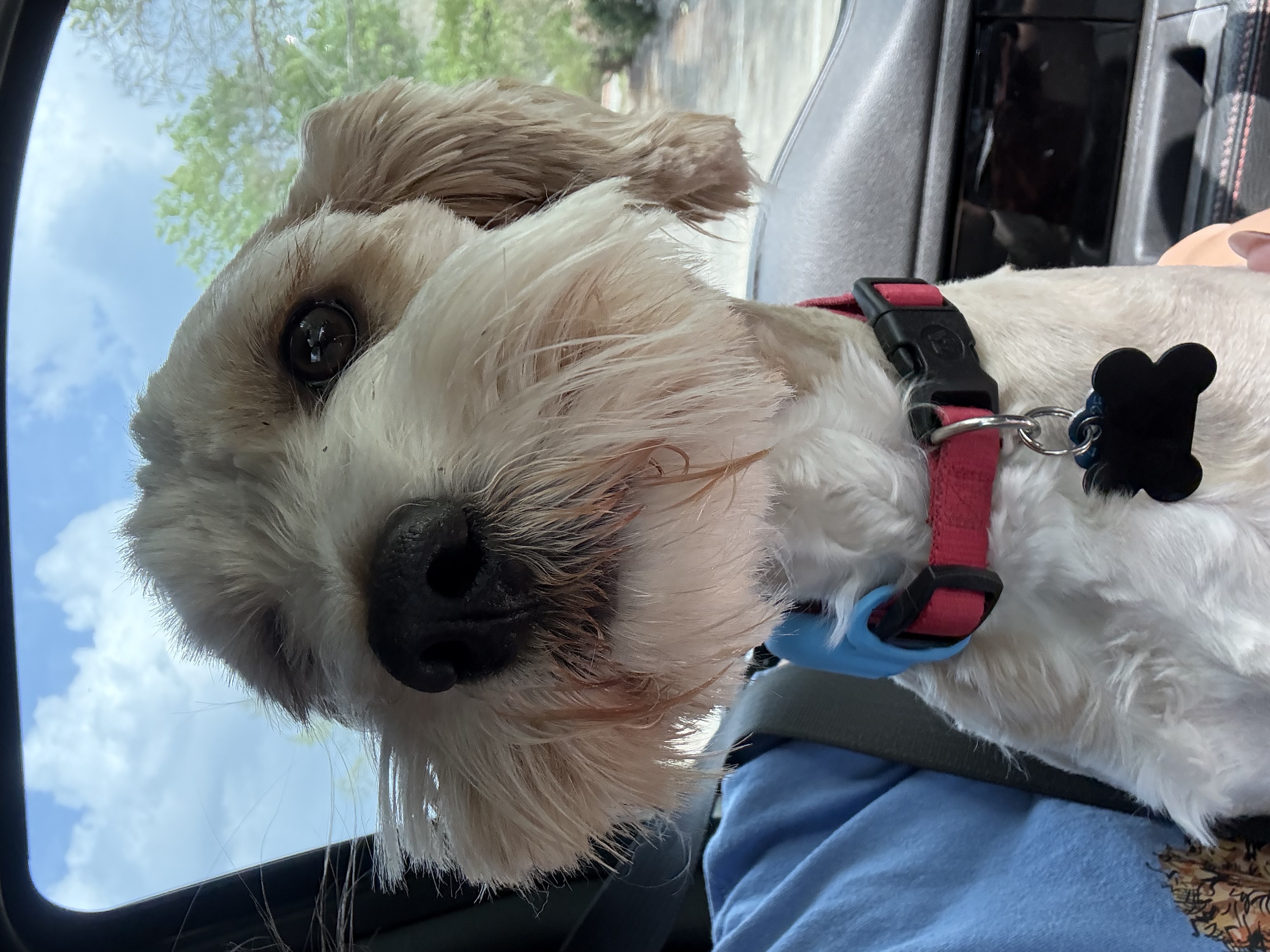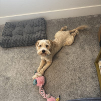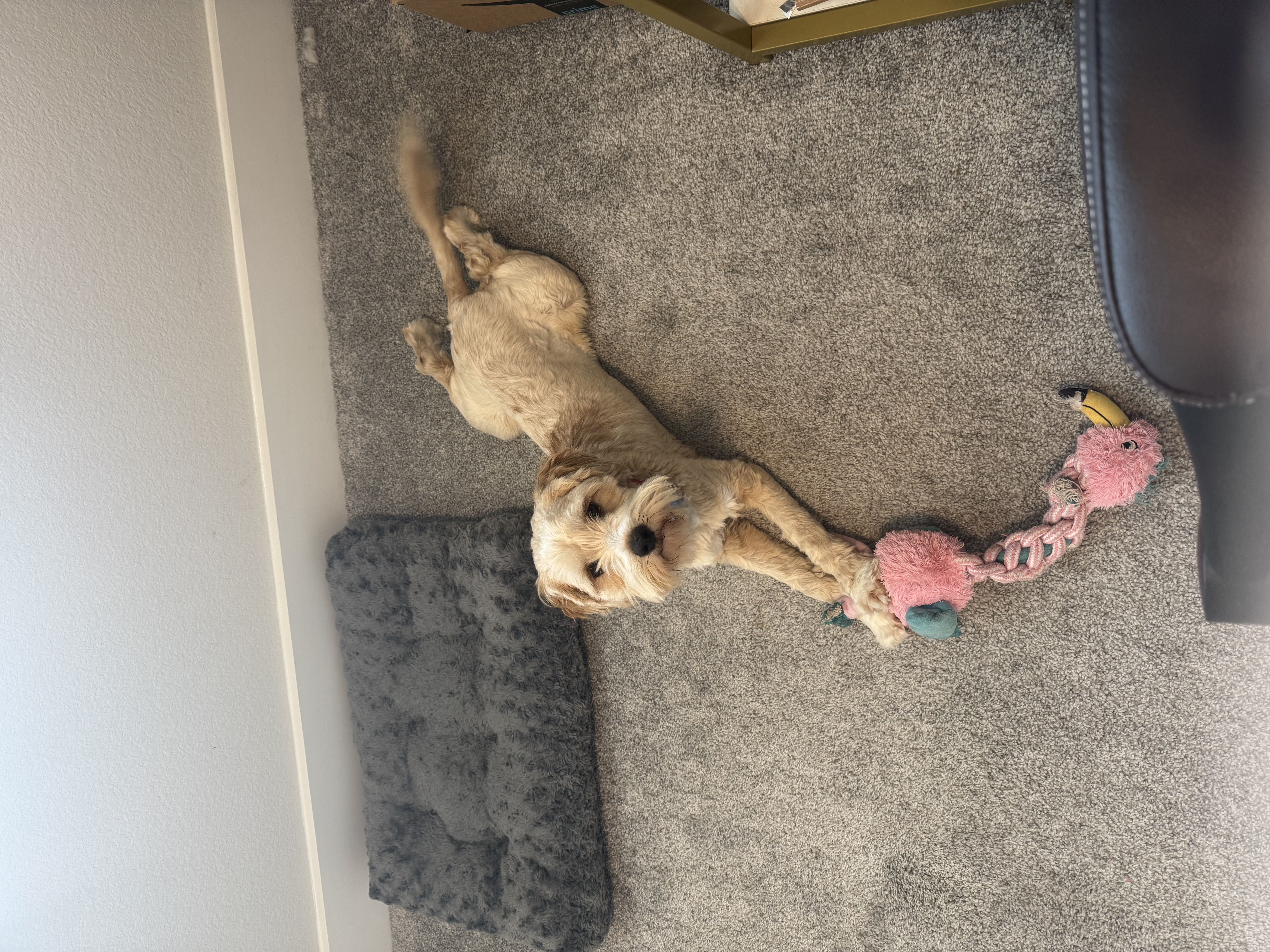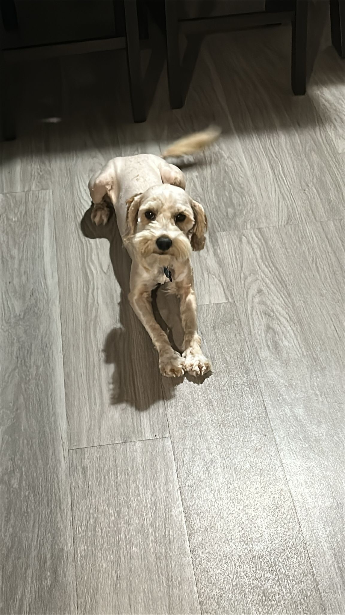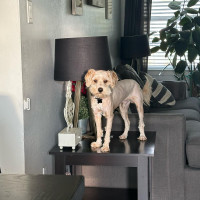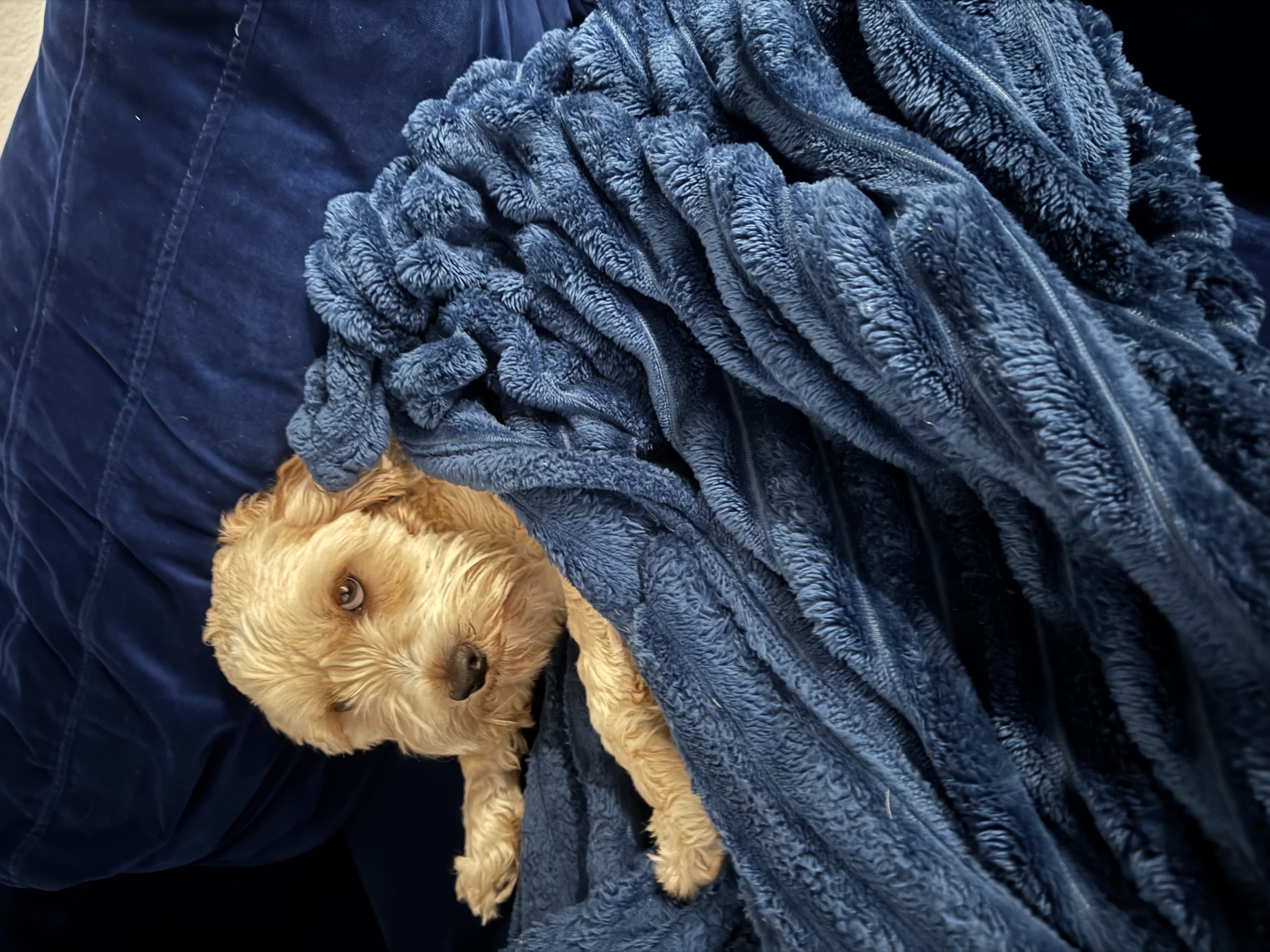 Hi there, I’m Chris — a 9-month-old, 20-pound poodle mix with a soft heart and a fluffier coat! I’m a gentle soul who’s still learning that the world isn’t so scary. I prefer ladies (sorry fellas!) and need a little time to warm up, but once I do, I’m loyal, loving, and will follow you around like your fuzzy shadow. I’m calm, quiet, and happiest when I’m snuggled up with my foster mom or playing in the yard with a small to medium pup buddy. Loud noises and new people can spook me, so I retreat to my crate — my cozy safe place. Treats, cuddles, and gentle voices are the way to my heart.
