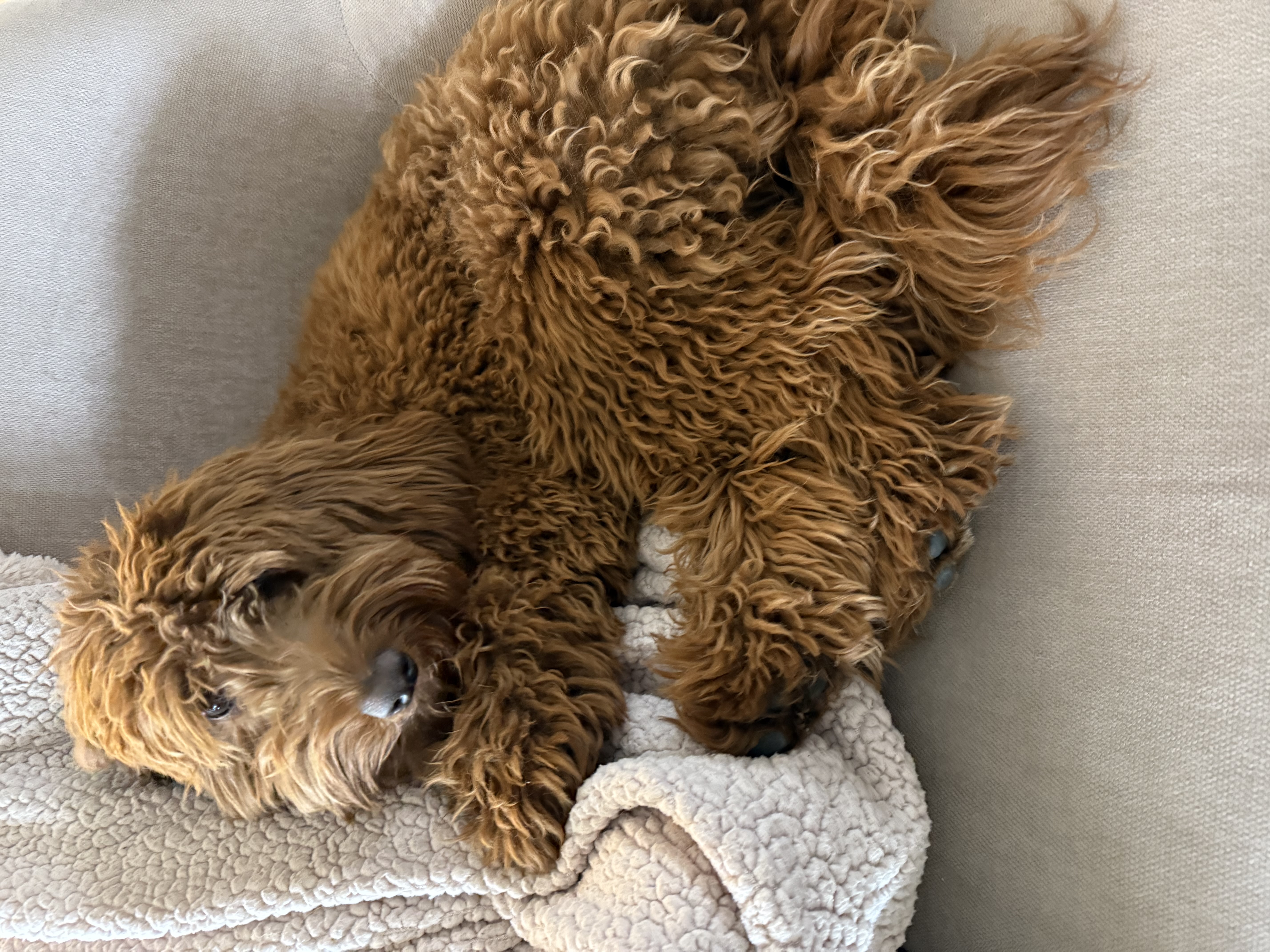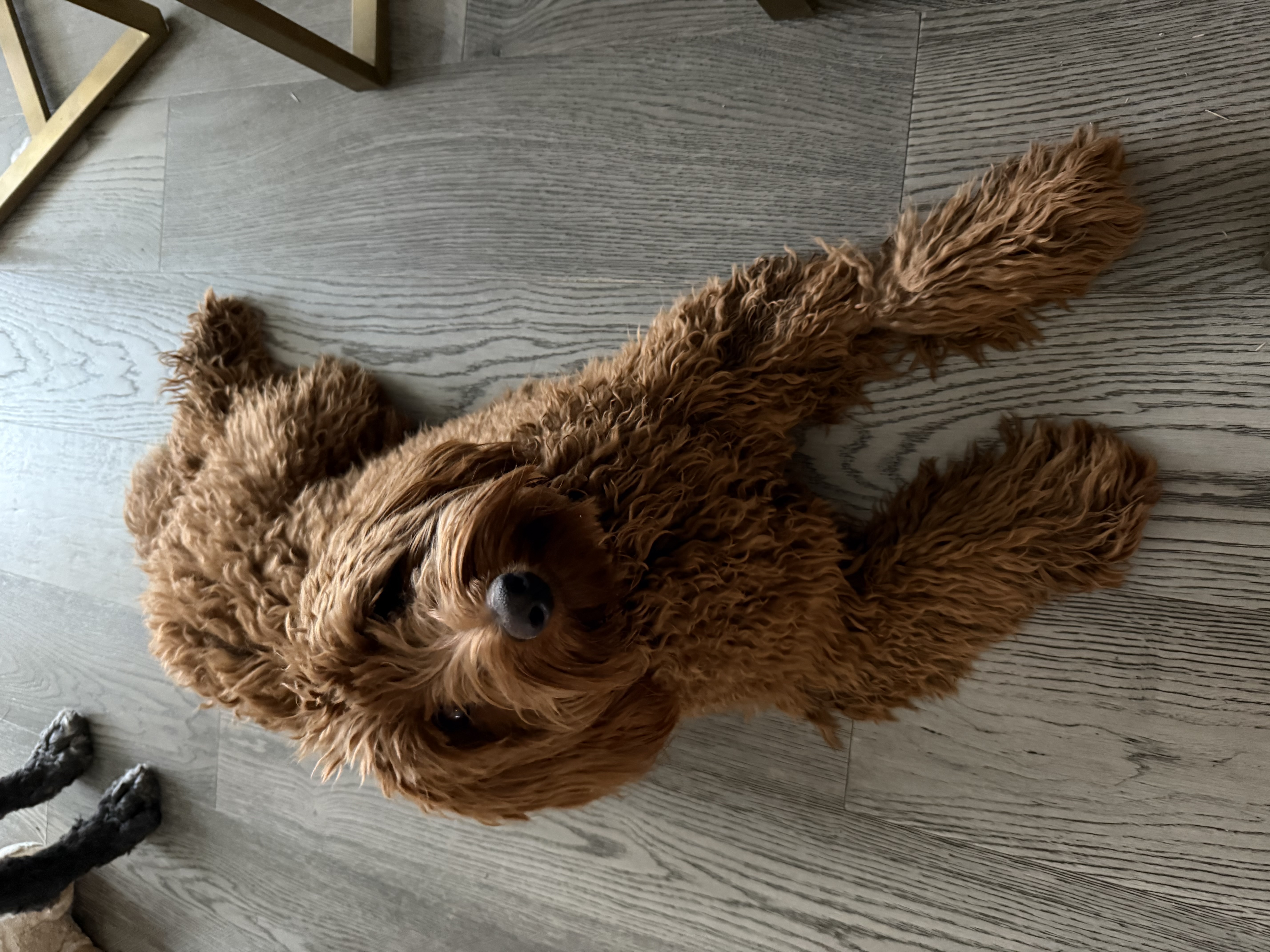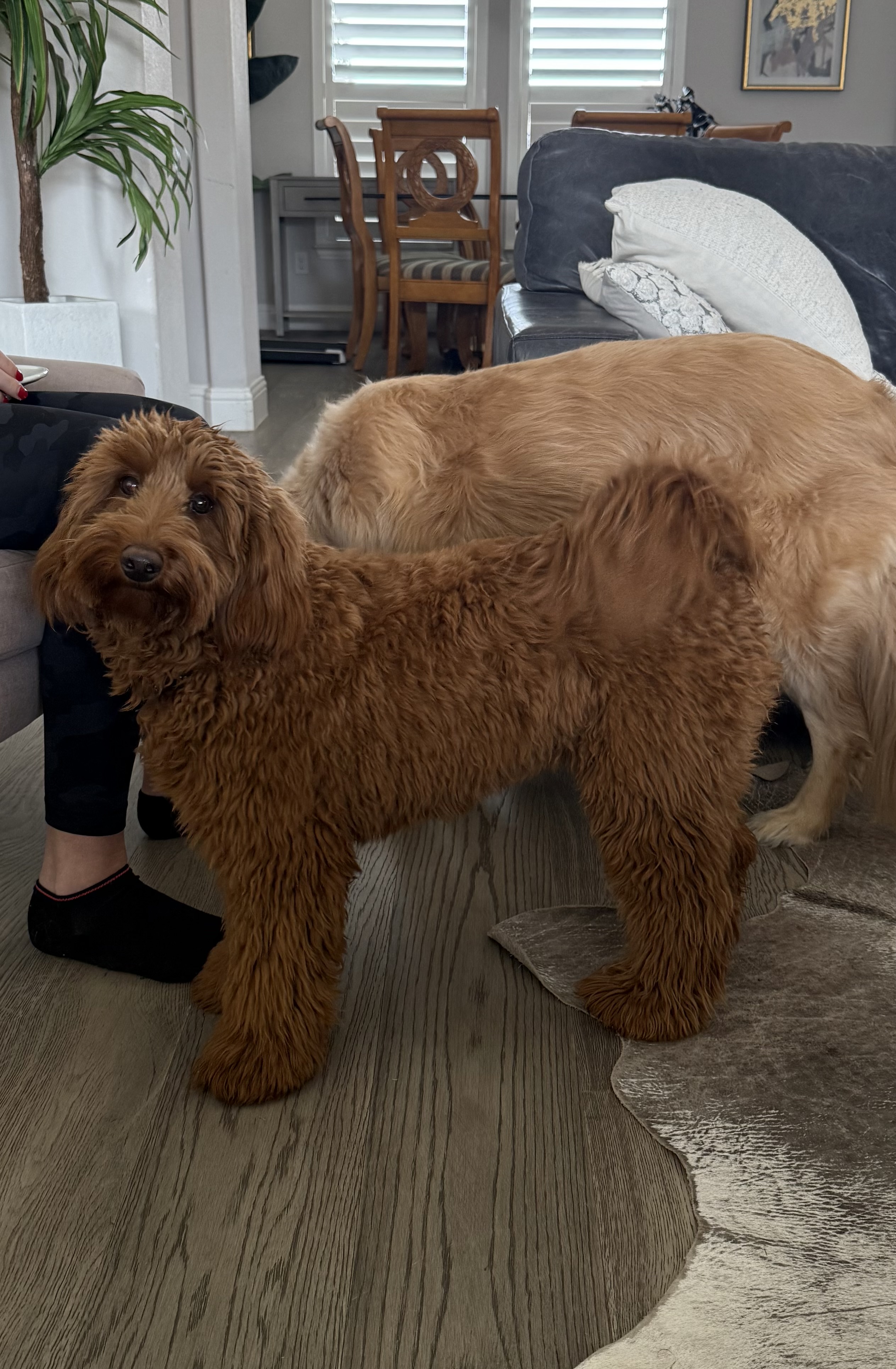 My name is Cinnamon or Cinna-mini, to some of my human foster kids. I am a precious, 9 month old, mini-goldendoodle, girlie girl. I weigh a light 25 pounds.