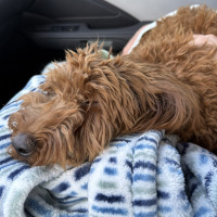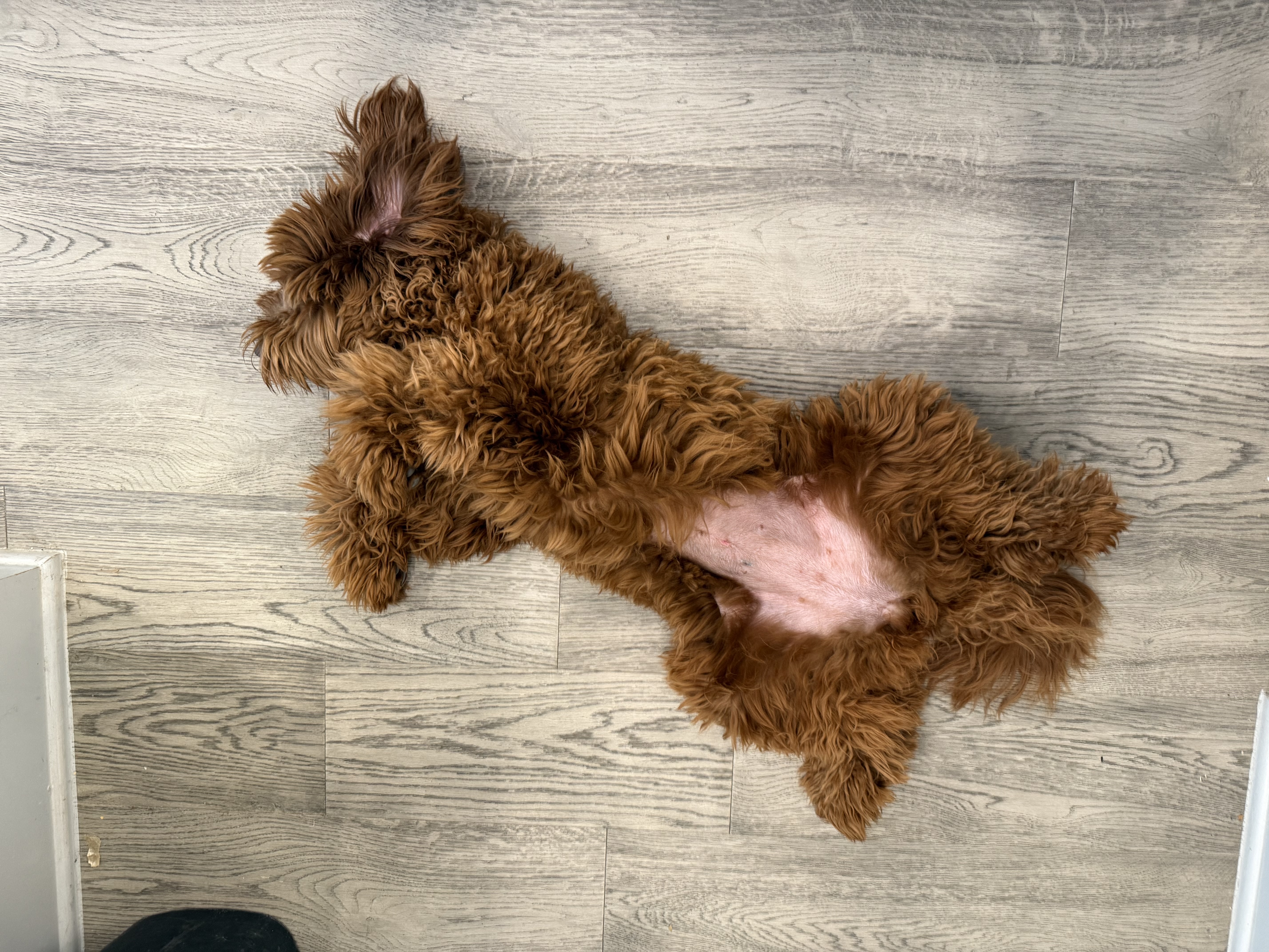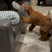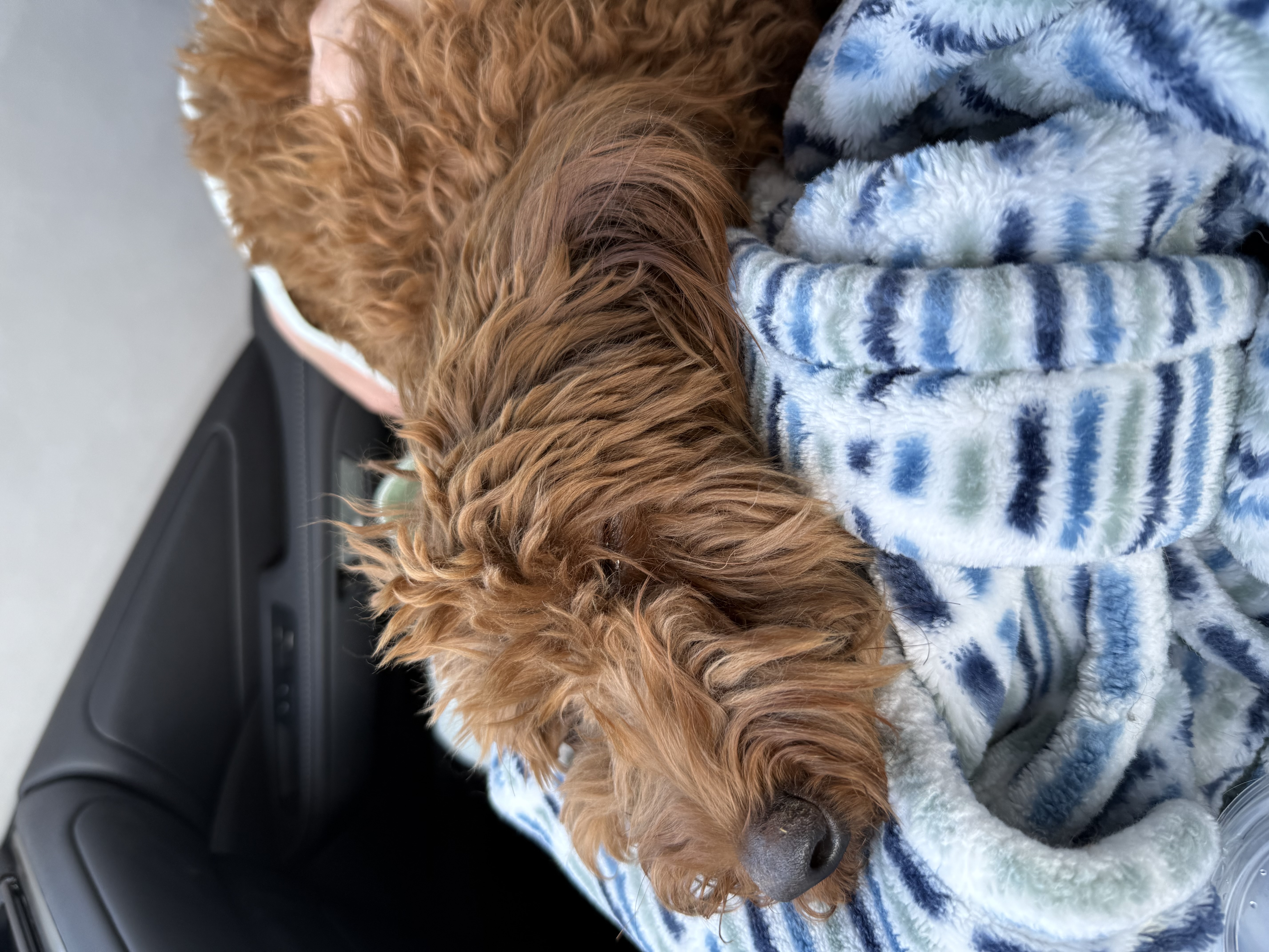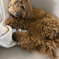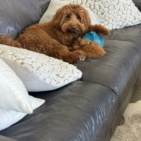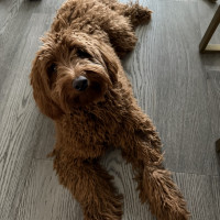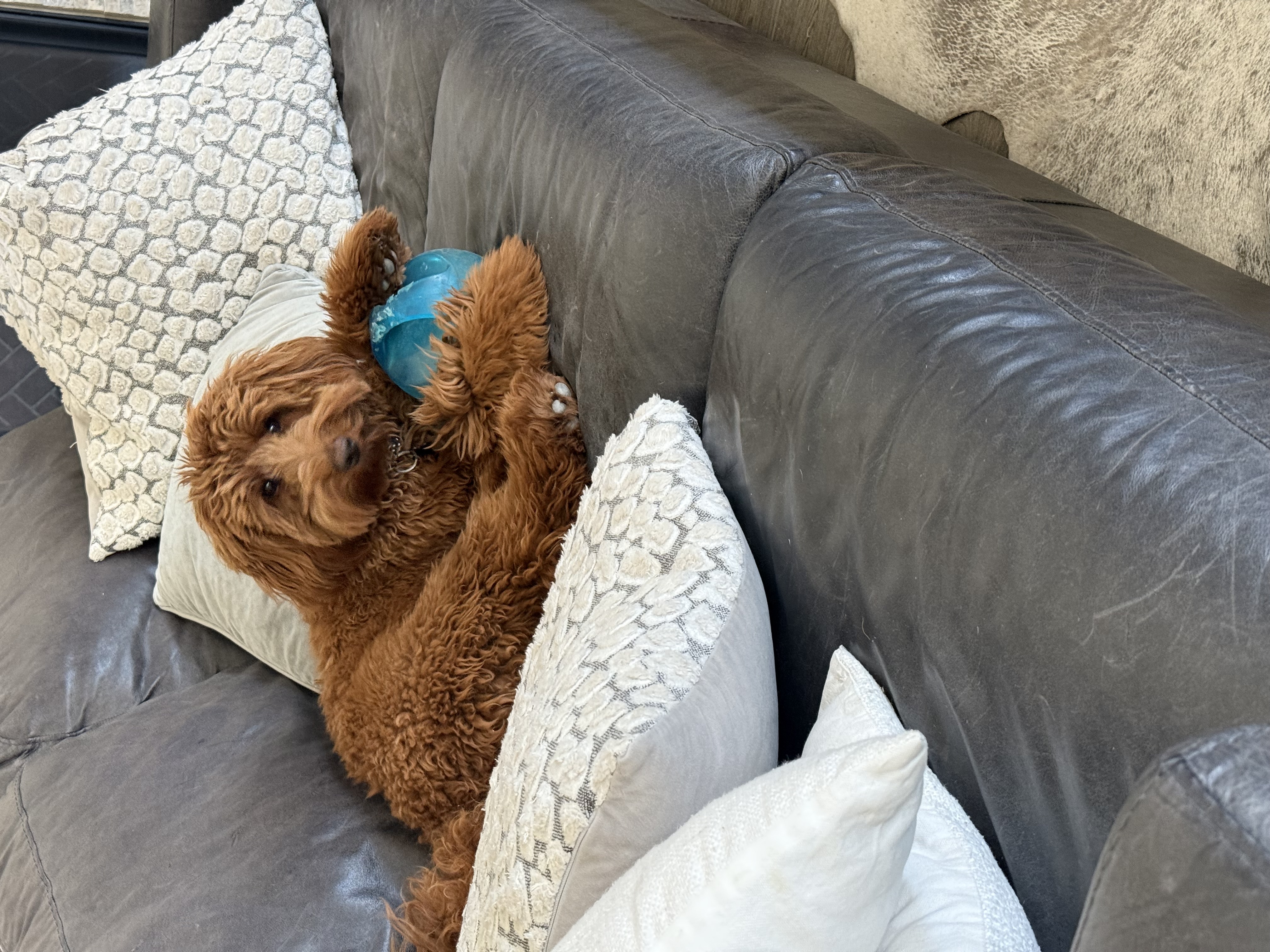 My name is Cinnamon or Cinna-mini, to some of my human foster kids. I am a precious, 9 month old, mini-goldendoodle, girlie girl. I weigh a light 25 pounds.