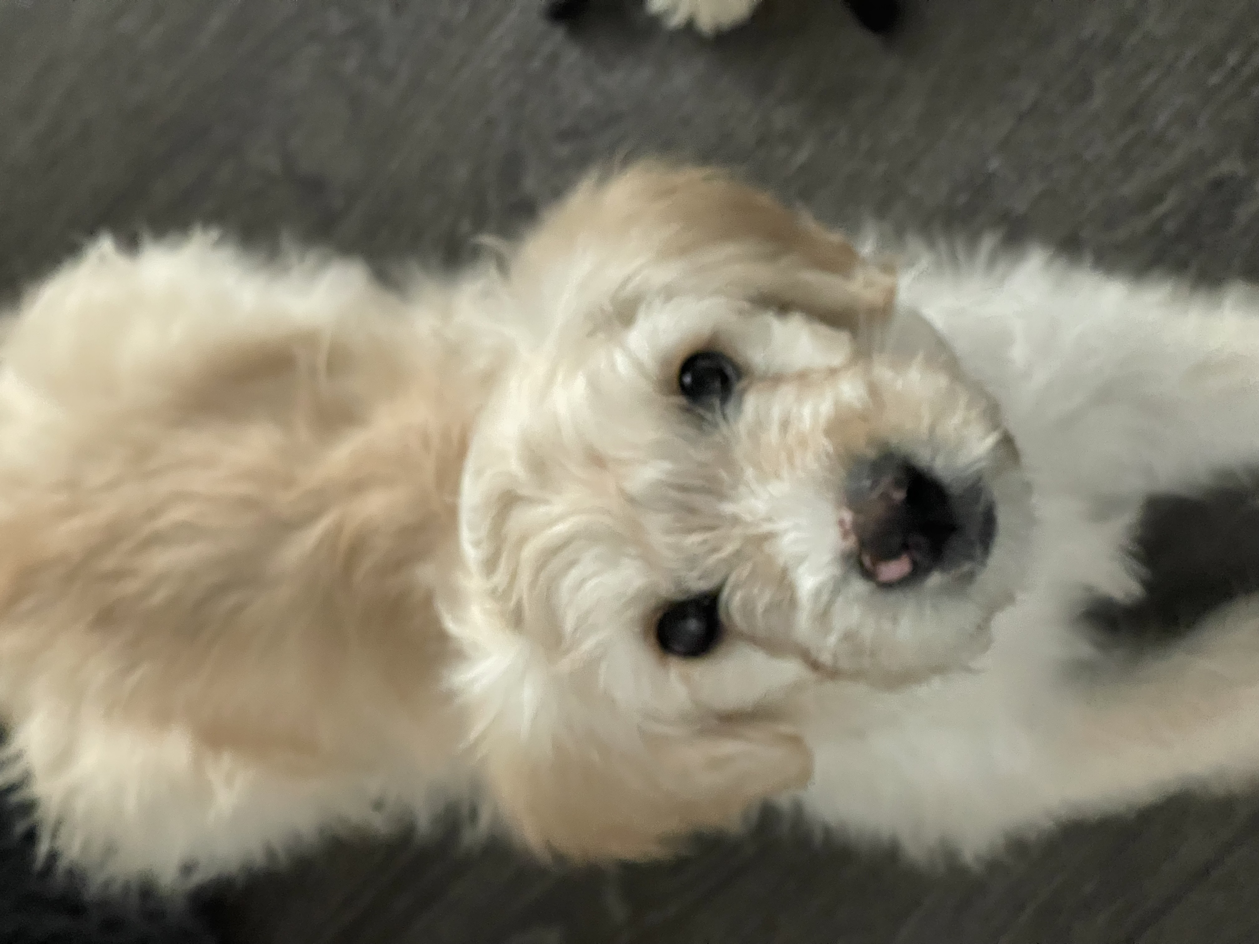 I’m curious and smart, already doing great with my potty training, and learning the rhythm of daily life. I love playing with my sister, exploring the house, or relaxing in my playpen while my foster mom works nearby. I’m used to kids, but because I’m playful and full of energy, I’d do best with dog experienced children who can join in my fun without getting bowled over by my enthusiasm.