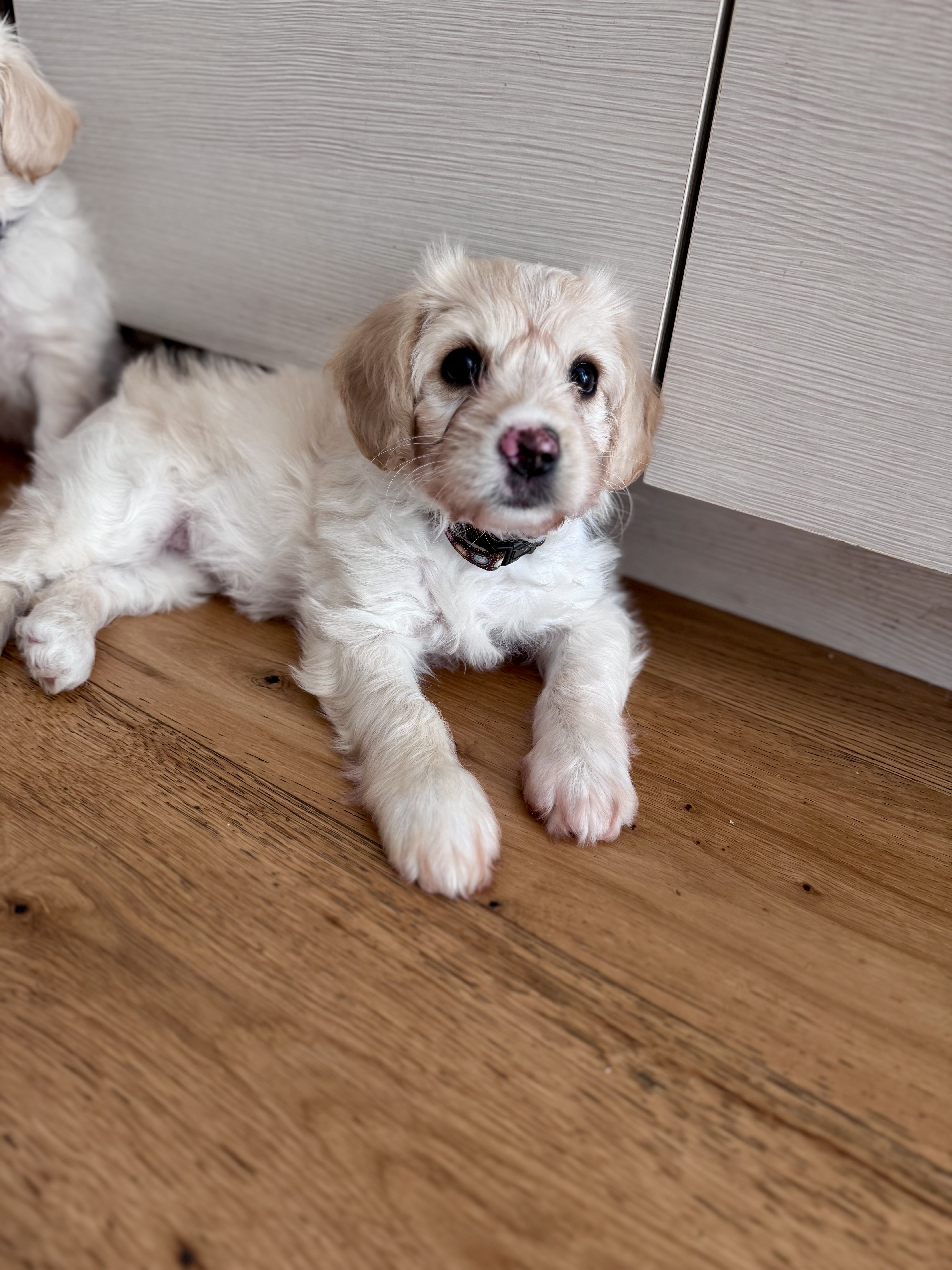 Hello, adoring humans. My name is Clancy, and I’m a 14-week-old, 10-pound poodle mix baby girl with soulful eyes and a cloud of fluffy curls that people can't seem to stop cuddling. I may be tiny, but don’t let that fool you—I’ve got a big personality packed into this little body. Outgoing, fearless, and full of playful energy, I adore other dogs (big or small) and strut through life like I’m ten times my size.