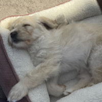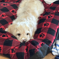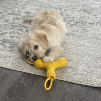 I’m curious and smart, already doing great with my potty training, and learning the rhythm of daily life. I love playing with my sister, exploring the house, or relaxing in my playpen while my foster mom works nearby. I’m used to kids, but because I’m playful and full of energy, I’d do best with dog experienced children who can join in my fun without getting bowled over by my enthusiasm.