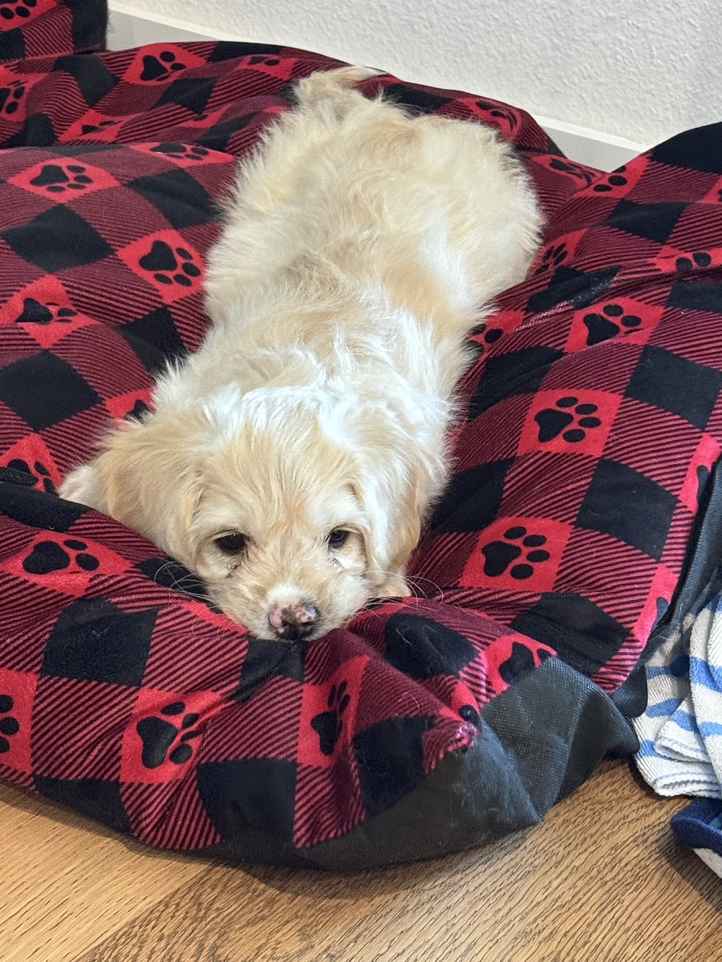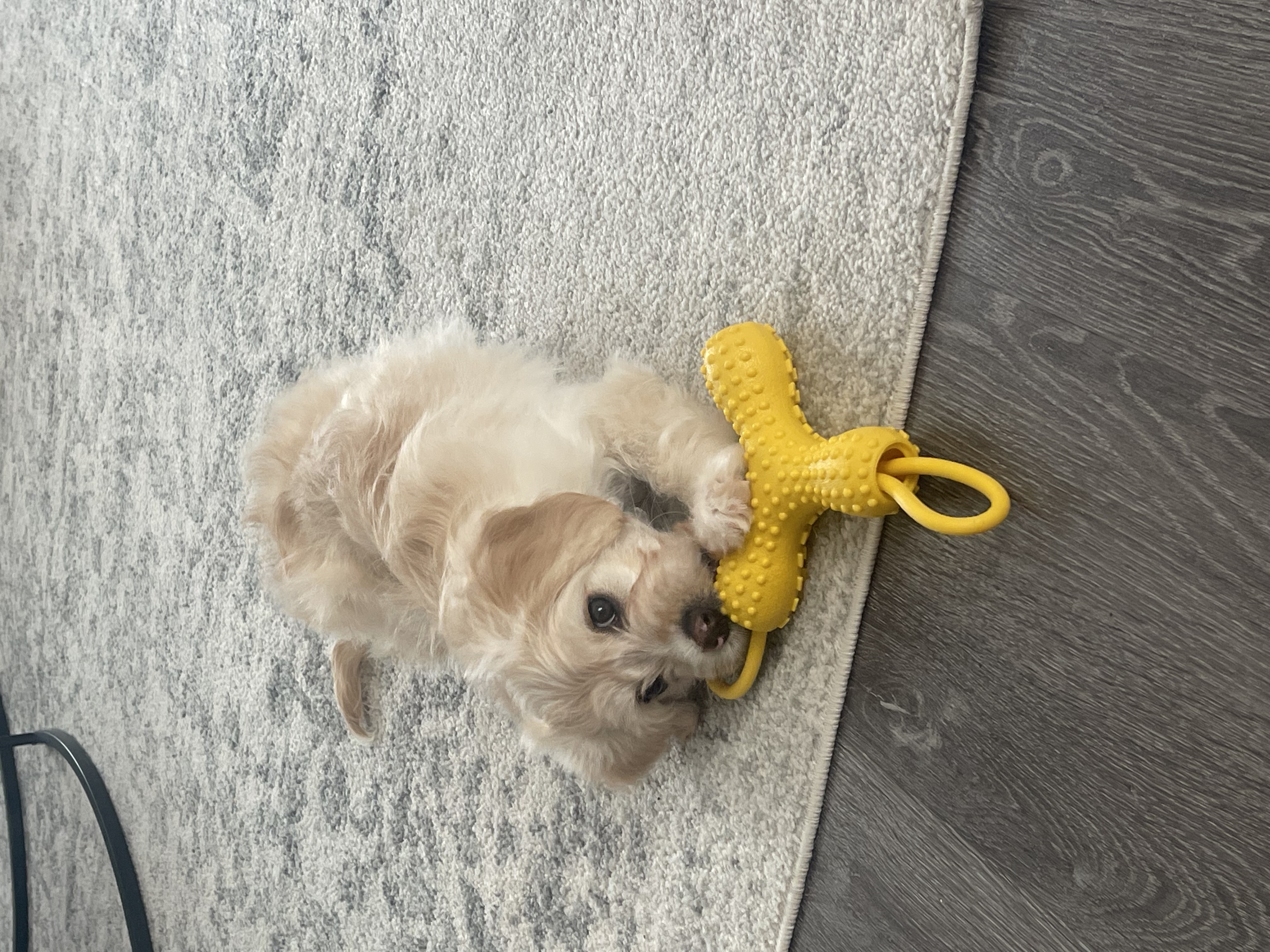 I’m doing really well with wearing a collar, and I’m starting to learn about leashes, too—slowly and gently, since I’m so small. I always try to go potty outside, but I still use pee pads in my playpen when I can’t hold it. I’m learning so much every day and doing my best to be the best puppy I can be. I love being close to my people and listen carefully when they talk to me—especially if it involves treats or snuggles.