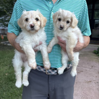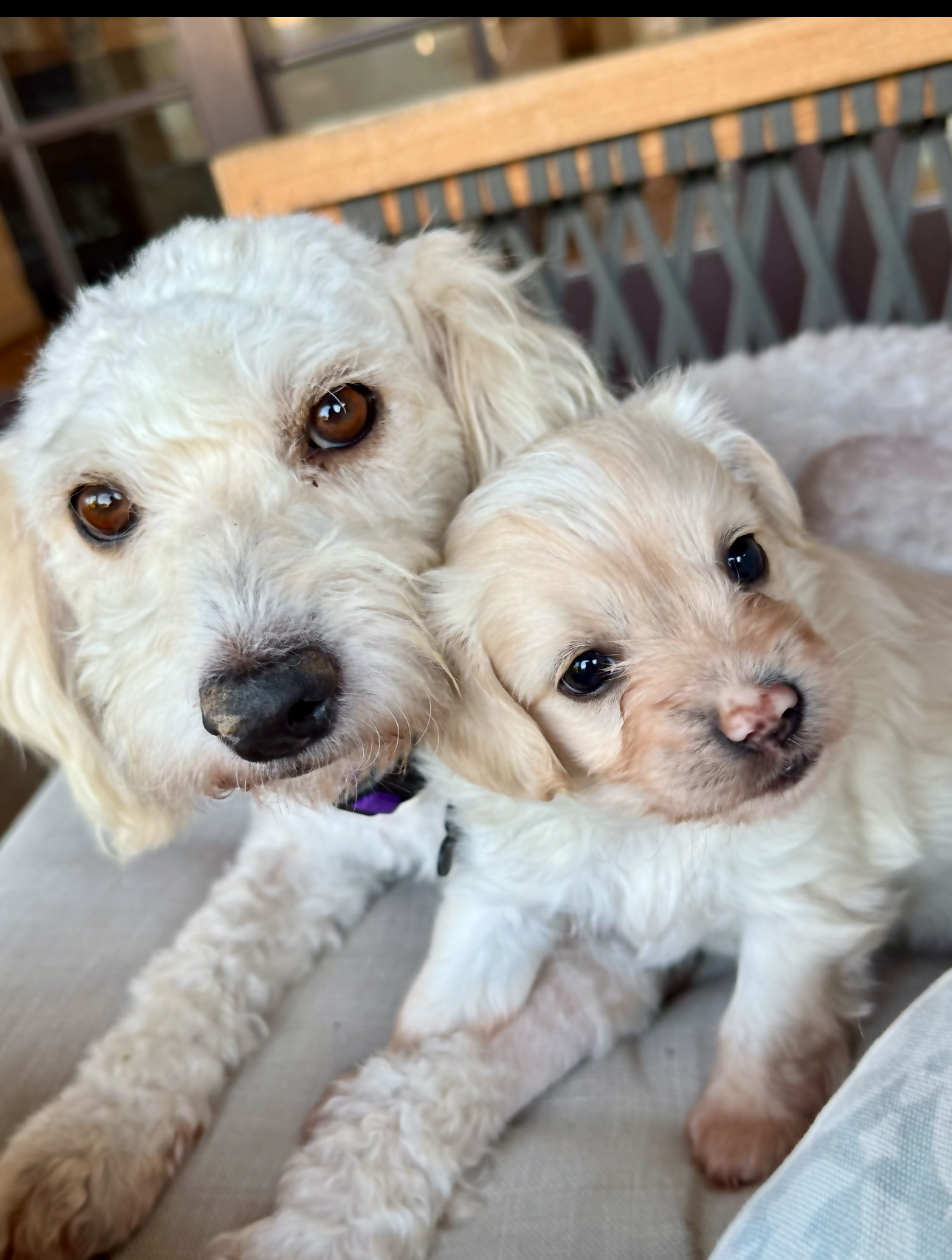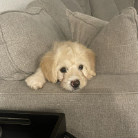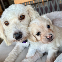 Hello, adoring humans. My name is Clancy, and I’m a 14-week-old, 10-pound poodle mix baby girl with soulful eyes and a cloud of fluffy curls that people can't seem to stop cuddling. I may be tiny, but don’t let that fool you—I’ve got a big personality packed into this little body. Outgoing, fearless, and full of playful energy, I adore other dogs (big or small) and strut through life like I’m ten times my size.