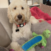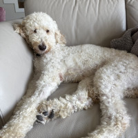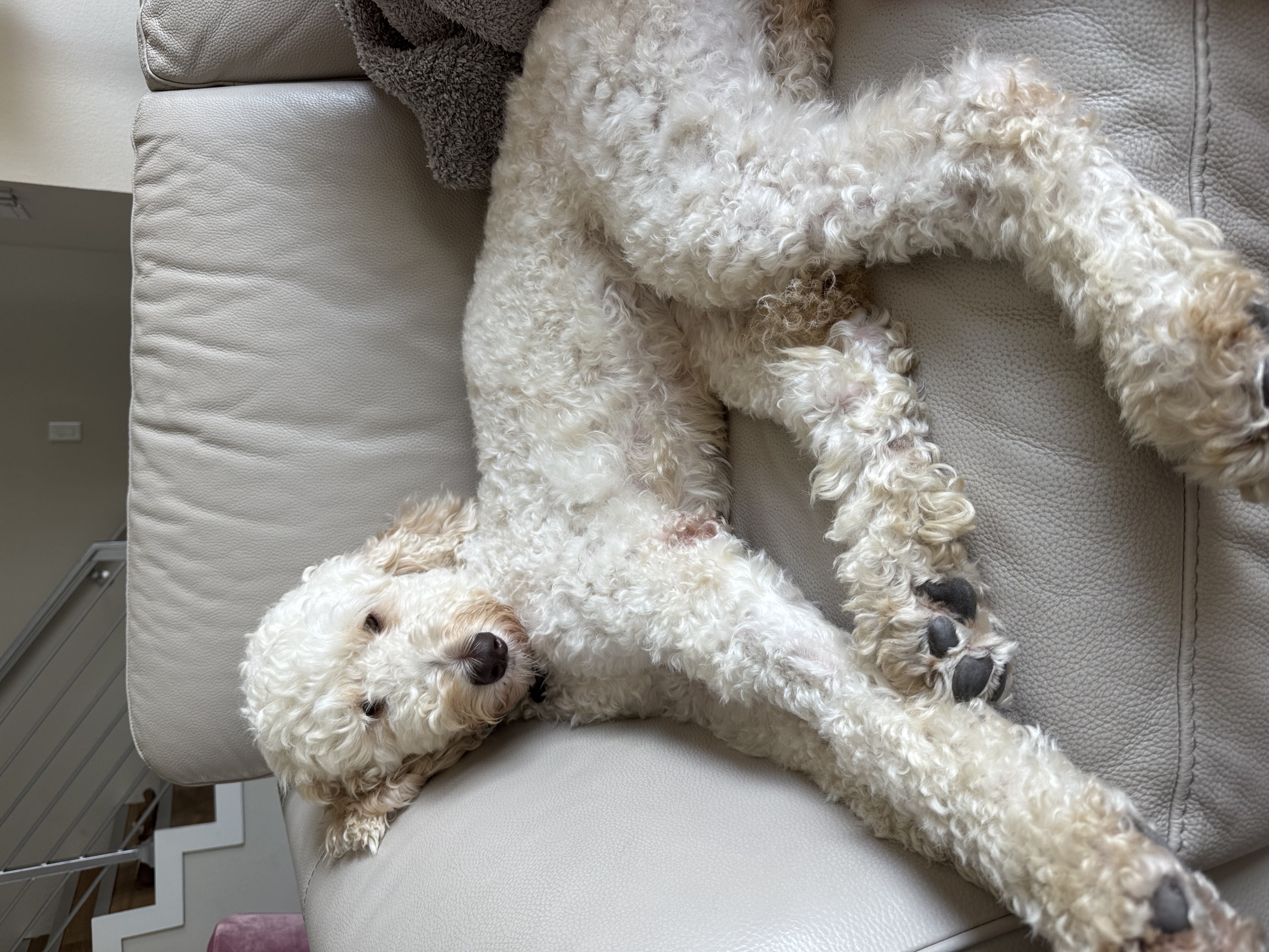 Hi, I’m Coco. I’m a 2-year-old Doodle, weighing in at 55 pounds, with a soft, no-shed coat and long, graceful limbs that turn heads everywhere I go. I’ve been told I have a presence—confident, curious, and full of personality.