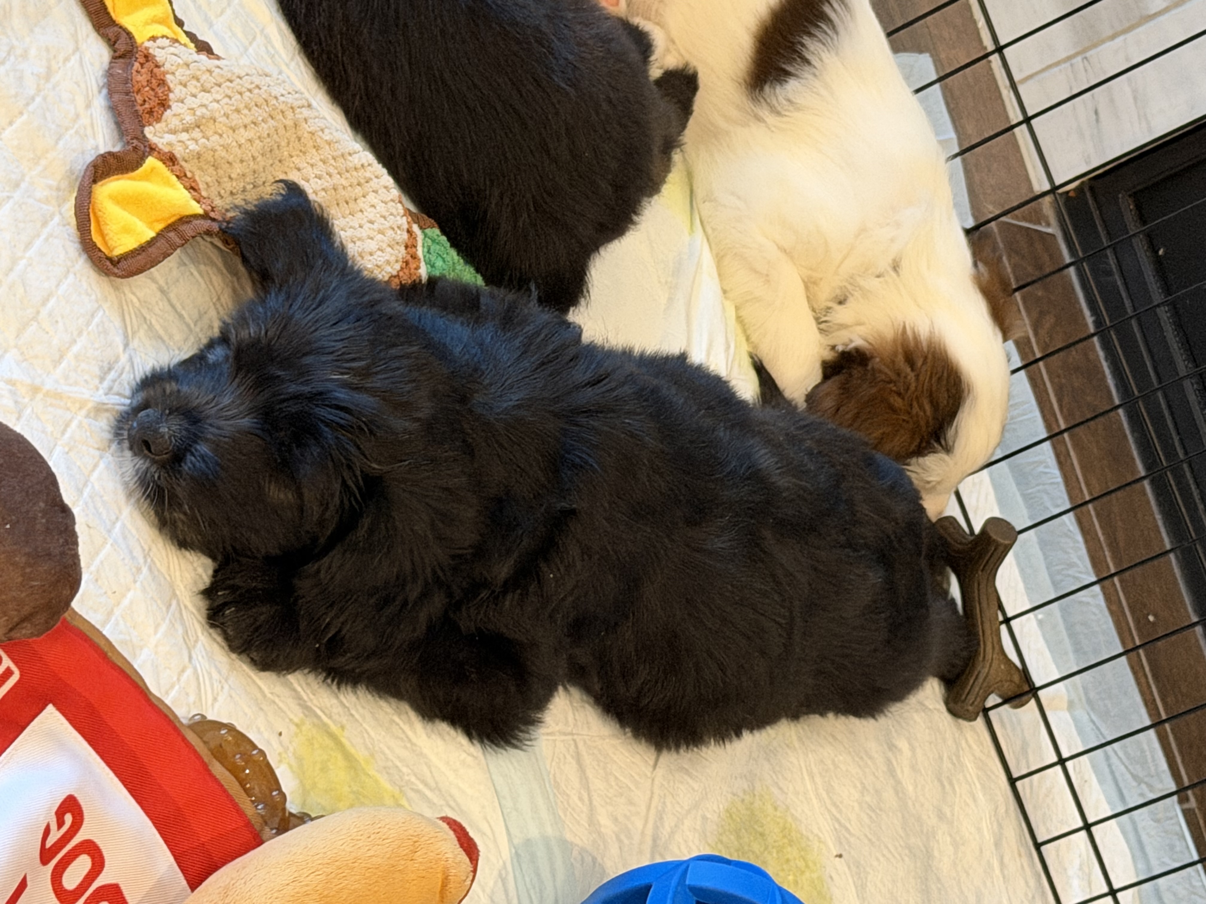 Hi, I’m Columbia — the firstborn of Matcha’s Magnificent Eleven and proudly one of the bigger girls in the bunch. I have a thick, plush black coat that gives me a soft, cuddly look and doesn’t seem to shed, though I’ll likely need some routine grooming as I grow. I carry myself with a calm, steady confidence and tend to give off big sister energy wherever I go.
