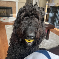 I’m a laid-back “dood” who just loves to be near my people. I especially click with the guys in my life — in fact you could say I really am "Man's best friend". I am absolutely happiest when I have my favorite thing in the world with me: a ball. I carry one around constantly and I will fetch it now and then, but mostly I just enjoy holding it in my mouth. I'm not just about a ball though, squeaky toys, count me in! Chasing and squeaking them is my kind of fun. I get along great with other dogs and cats too. I’m the kind of dog who’s easygoing, polite, and loves making people smile.