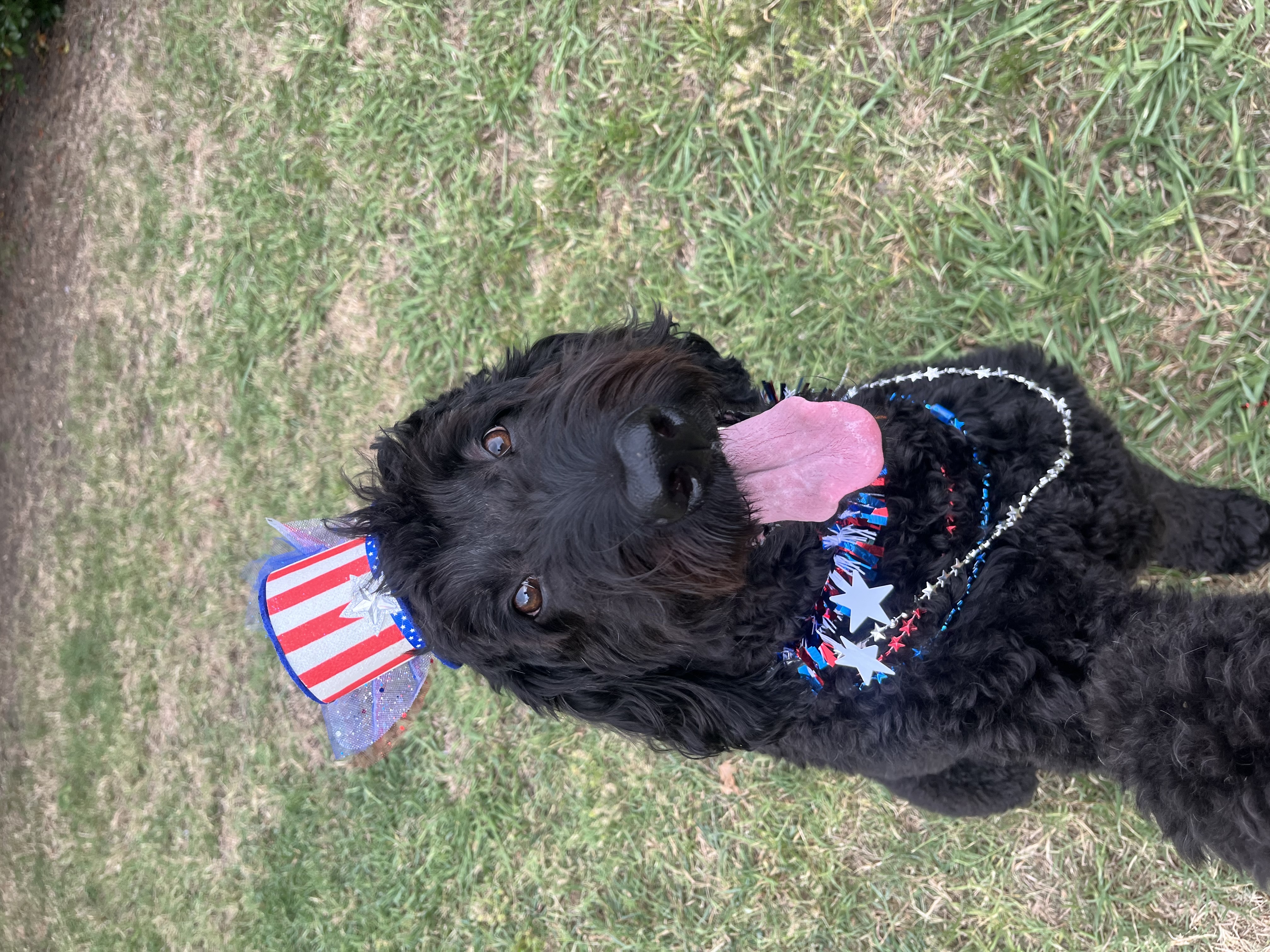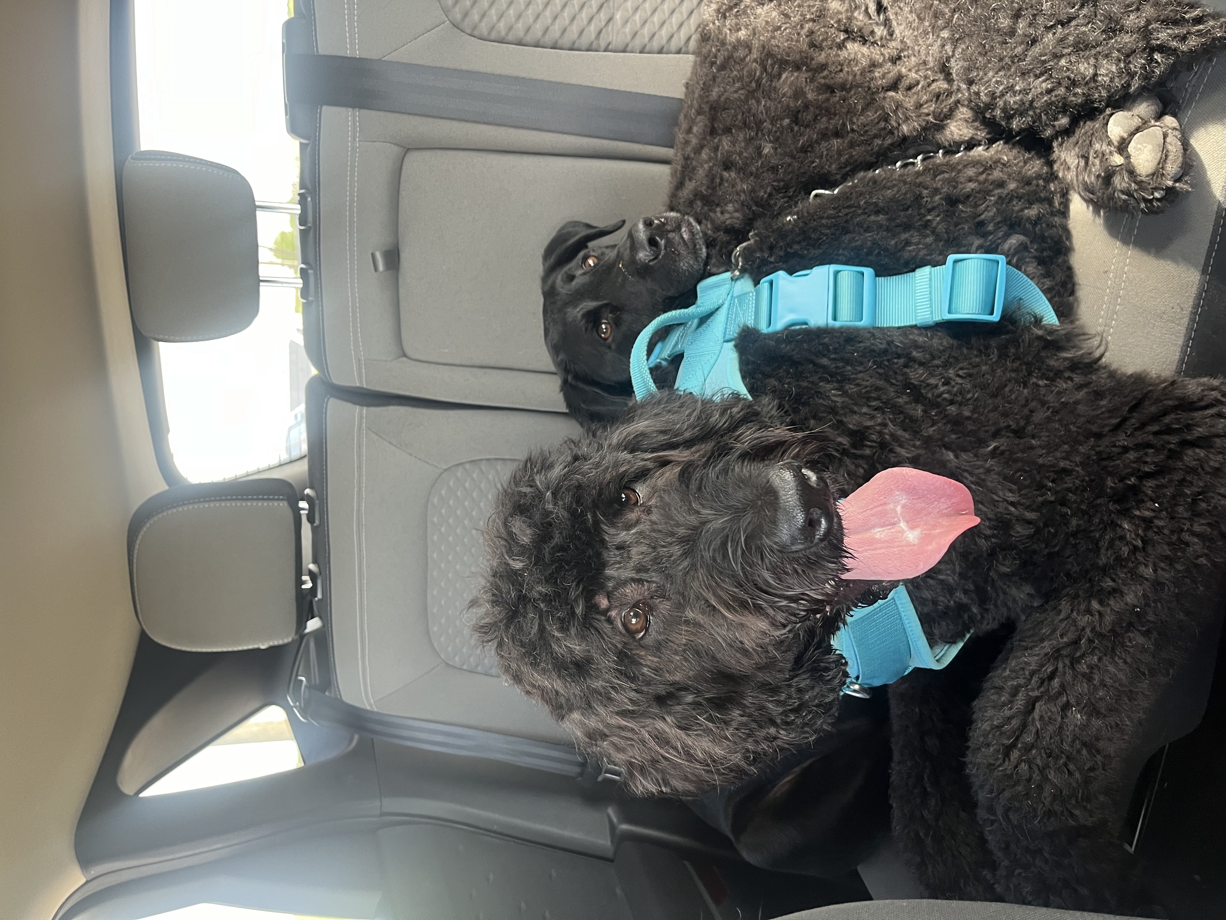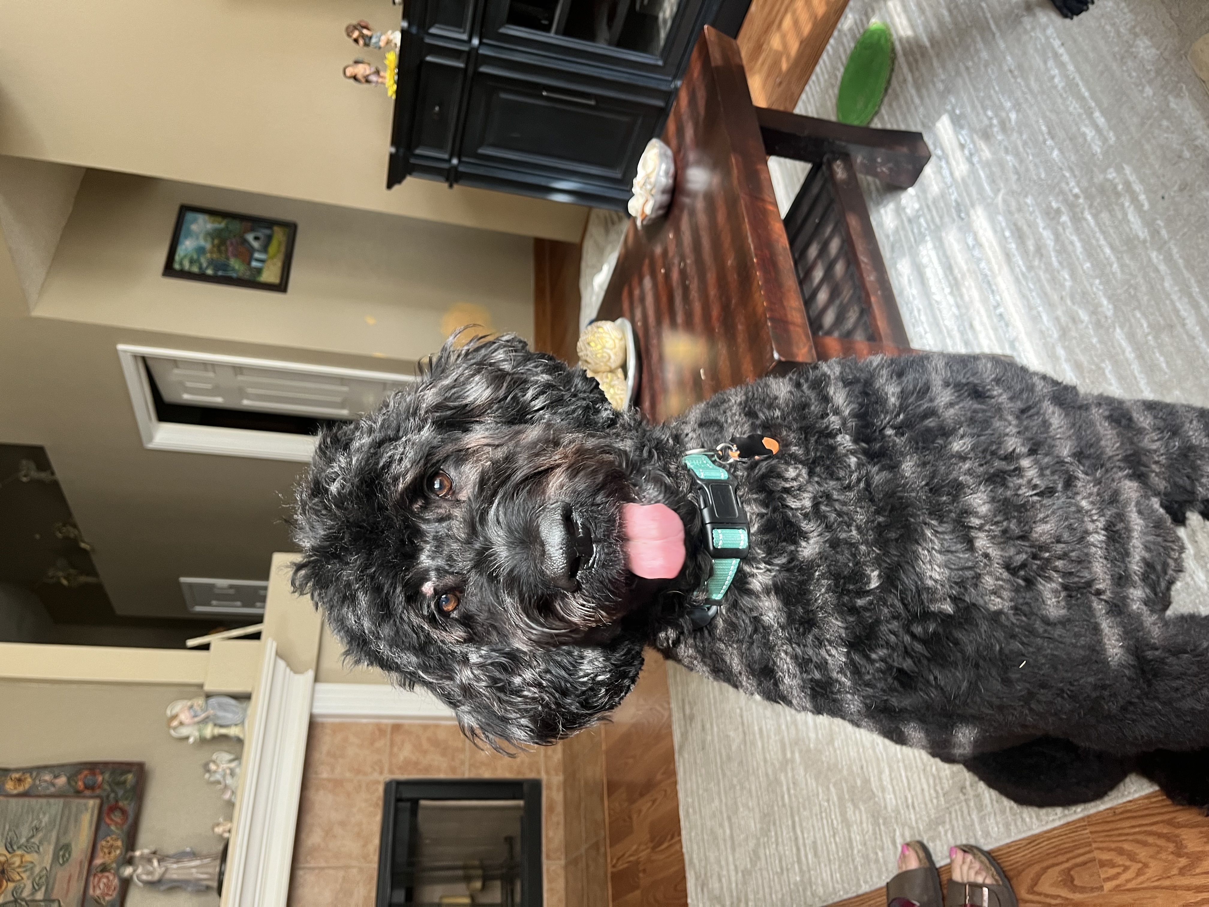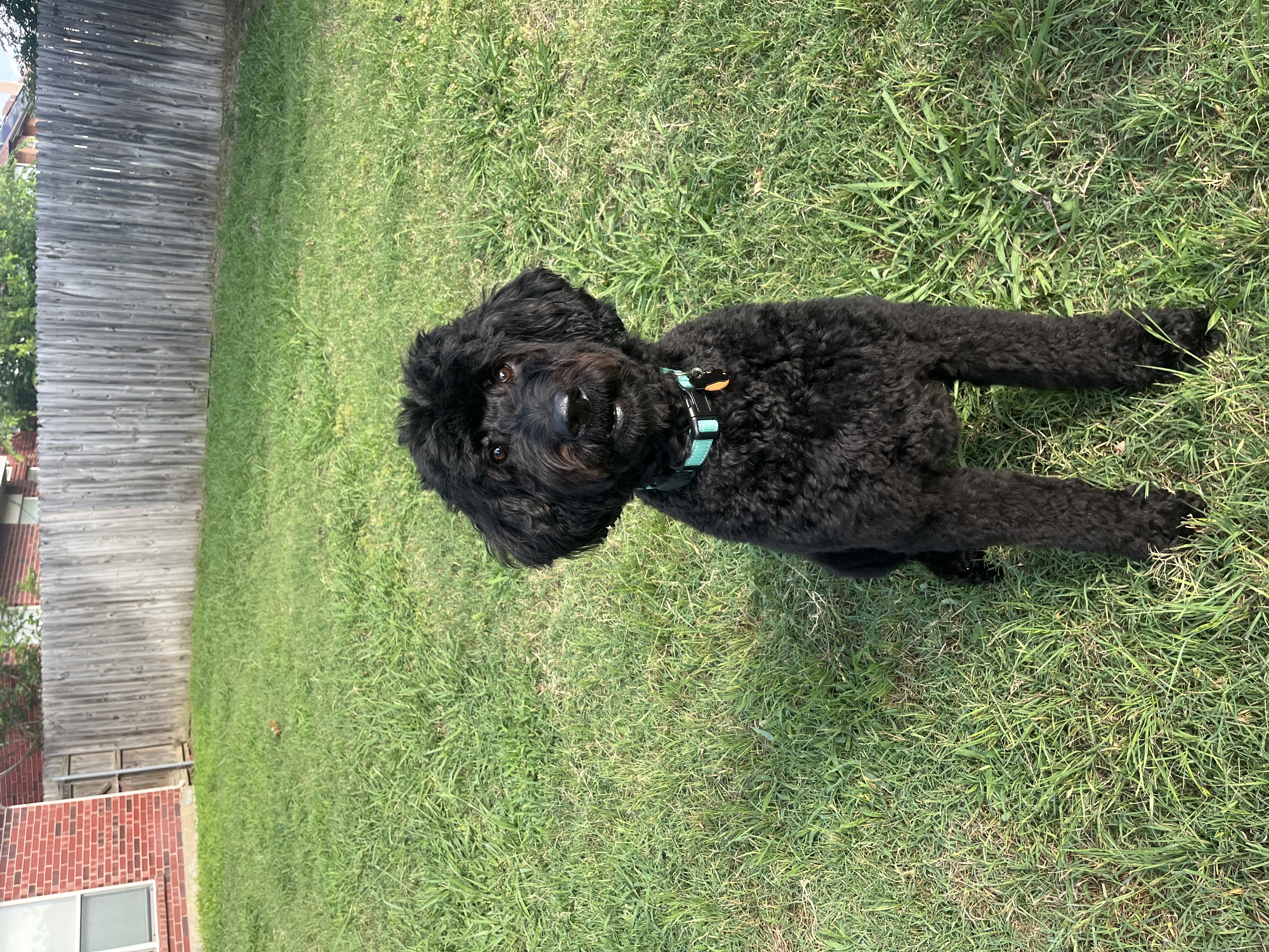 I’m a 4-year-old male Goldendoodle, and I weigh about 85 pounds. I have long legs, a soft curly coat, and a calm, gentle energy. That combination makes me an easygoing companion. My foster family likes to call me their “miniature horse” — because, I’m a stately guy — but don’t let that nickname fool you, I am maybe the sweetest boy on planet Earth.